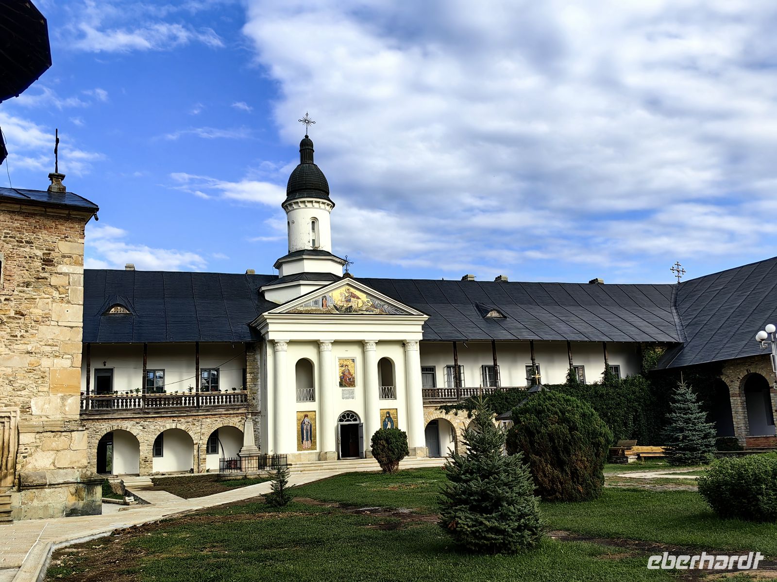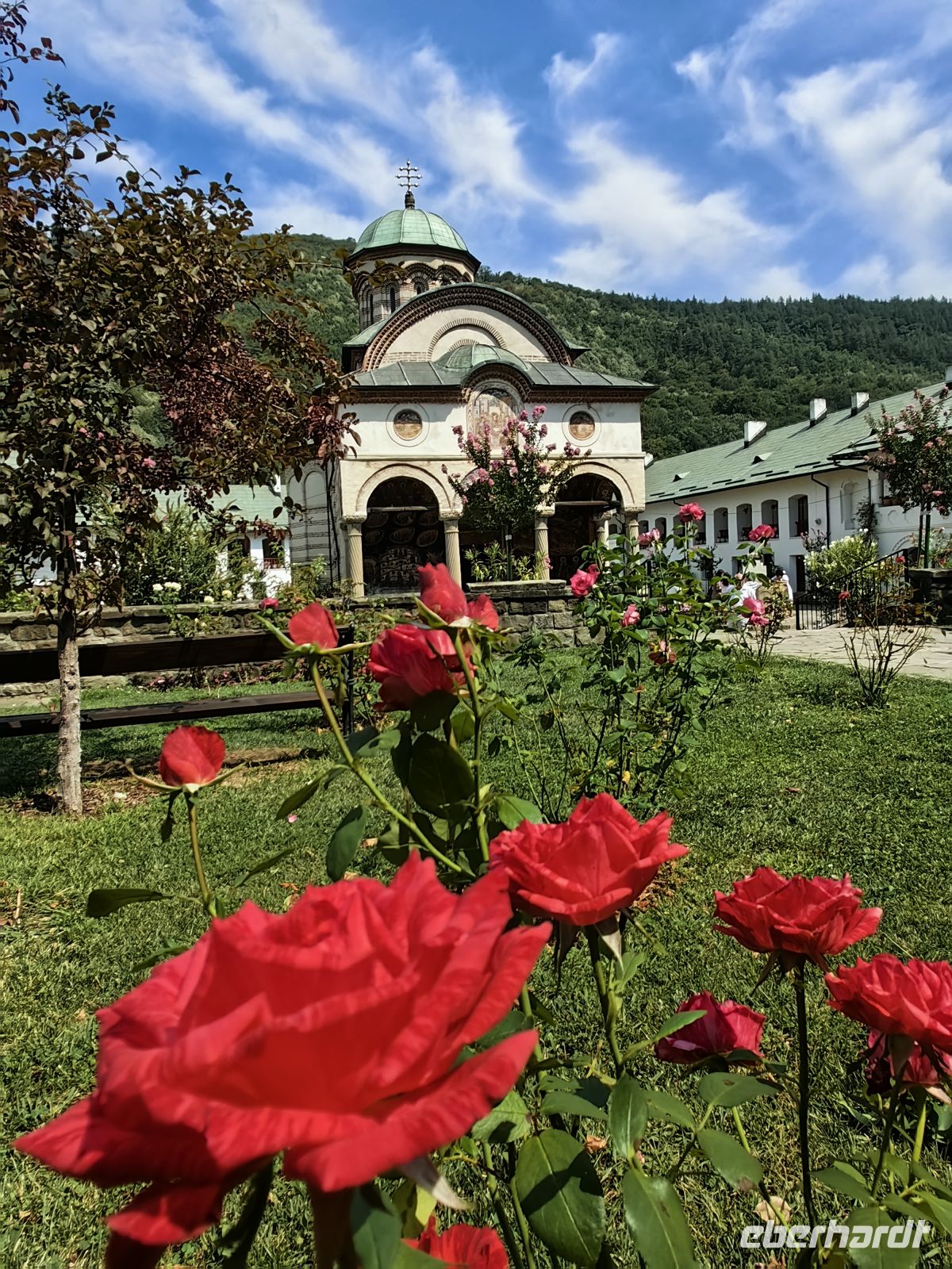 Erst am frühen Abend erreichen wir das Kloster Neamt. Diese gepflegte Anlage wird auch heute noch von Mönchen bewohnt Sie wurde zu Zeiten des Fürsten Petru Musat zwischen 1371 - 1375 gegründet und ist damit das älteste Kloster der Region. Die innerhalb der Mauern befindliche Kirche ließ Stefan der Große erbauen, fertiggestellt wurde sie erst 1497, als die moldawische Armee eine Schlacht gegen den polnischen König Johann I. gewonnen hatte. Dieses Kloster war in seiner Blütezeit ein bedeutendes Kulturzentrum und beherbergte eine Schule für Miniaturmalerei und Kalligrafie, einige gut erhaltene Schöpfungen sind noch im kleinen Museum der Anlage zu bestaunen. Die Klosterbibliothek nennt viele seltene Bücher ihr eigen.