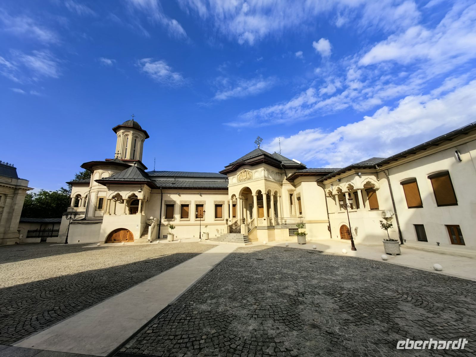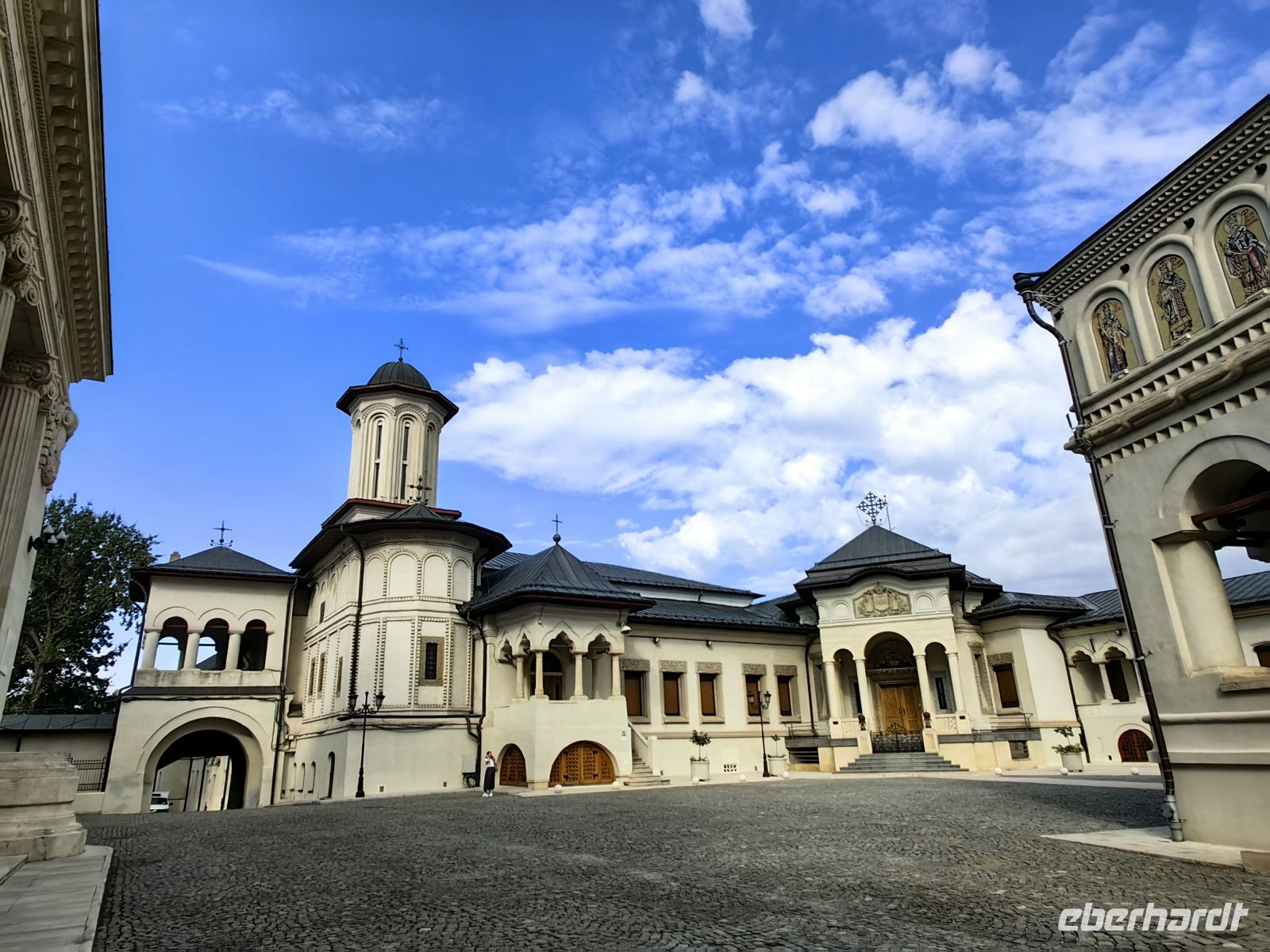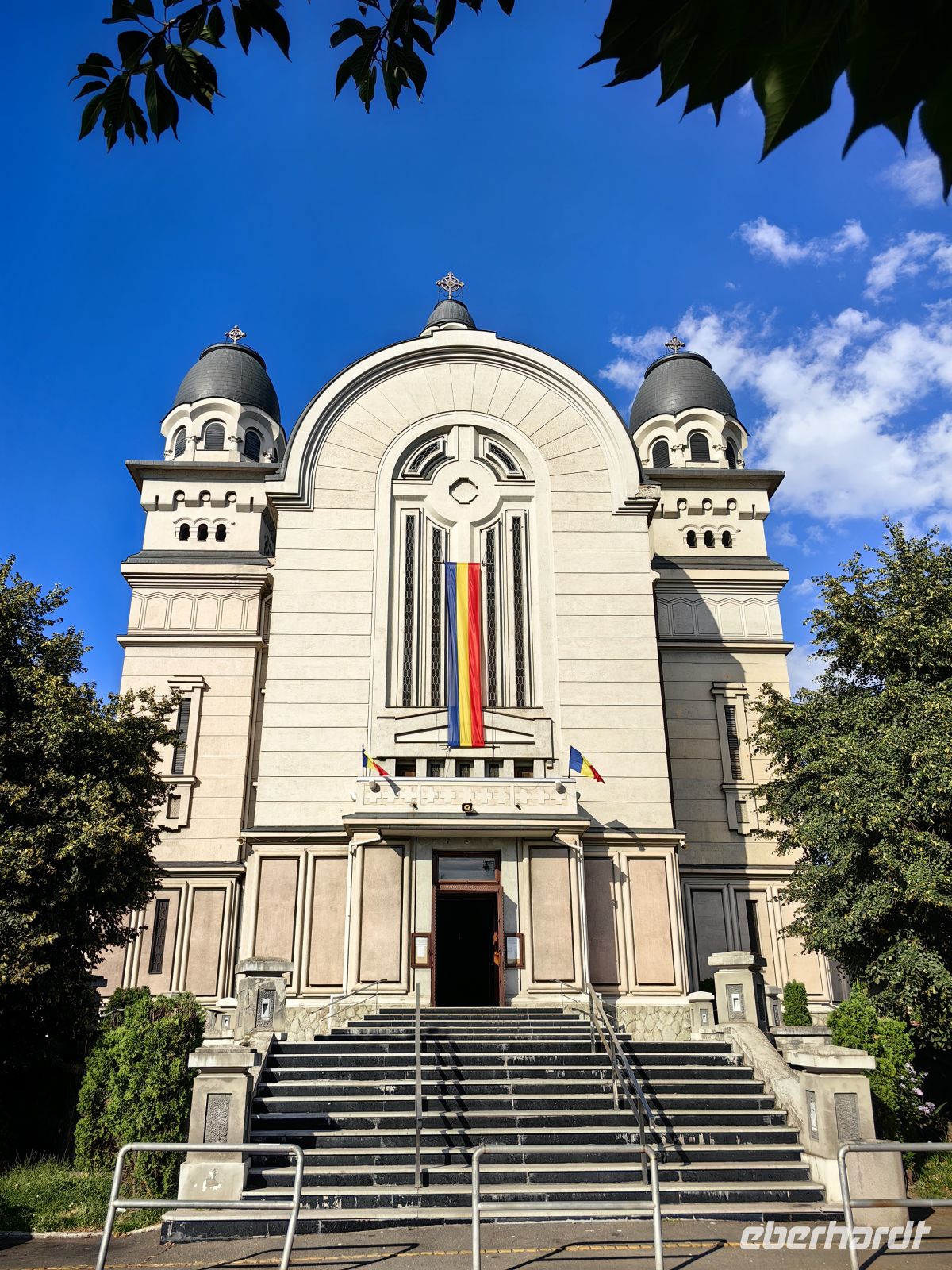 Heute ist unsere eindrucksvolle Rumänienreise leider schon vorbei. Am Vormittag erklimmen wir noch den Patriarchenhügel von Bukarest und schauen uns die gleichnamige Kirche darauf an, bevor wir uns auf den Weg zum Flughafen machen. Die heutige Kathedrale entstand als Teil eines Kloster, das Constantin Serban Basarab, ein Fürst der Walachei, im Jahr 1658 gründete. 1925 erhielt die rumänisch-orthodoxe Kirche den Rang eines Patriarchats und die Metropolitankirche wurde zur Patriarchalkathedrale erhoben. Als wir ankommen findet gerade ein Gottesdienst statt und die Gesänge klingen bis nach draußen. Nun heißt es Abschied von Petru und Georghiu nehmen.