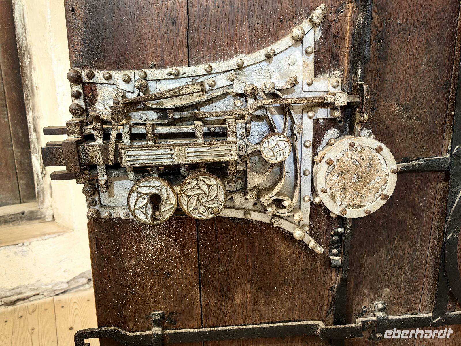 Am Nachmittag steht der Besuch der Kirchenburg Biertan auf dem Programm. Sie zählt seit 1993 zum UNESCO-Weltkulturerbe und befindet sich zwischen Sighishoara und Medias. In den Jahren 1492 bis 1515 erbaute man sie im gotischen Stil und wir erblicken sie auf dem Hügel schon von weitem über der kleinen Siedlung. Nachdem 1572 der Birthälmer (deutscher Name von Biertan) Pfarrer Lukas Unglerus zum Bischof der evangelischen Kirche gewählt worden war, wurde diese Kirche zum Bischofssitz und blieb bis zur Verlegung 1867 geistlicher Mittelpunkt der Siebenbürger Sachsen. Wir treffen in der Kirche eine Siebenbürgin, die uns ein riesiges Türschloß aus dem 16. Jahrhundert zeigt und uns einige Sätze in ihrer eigentlichen Muttersprache sagt, was wie Luxemburgisch klingt.
