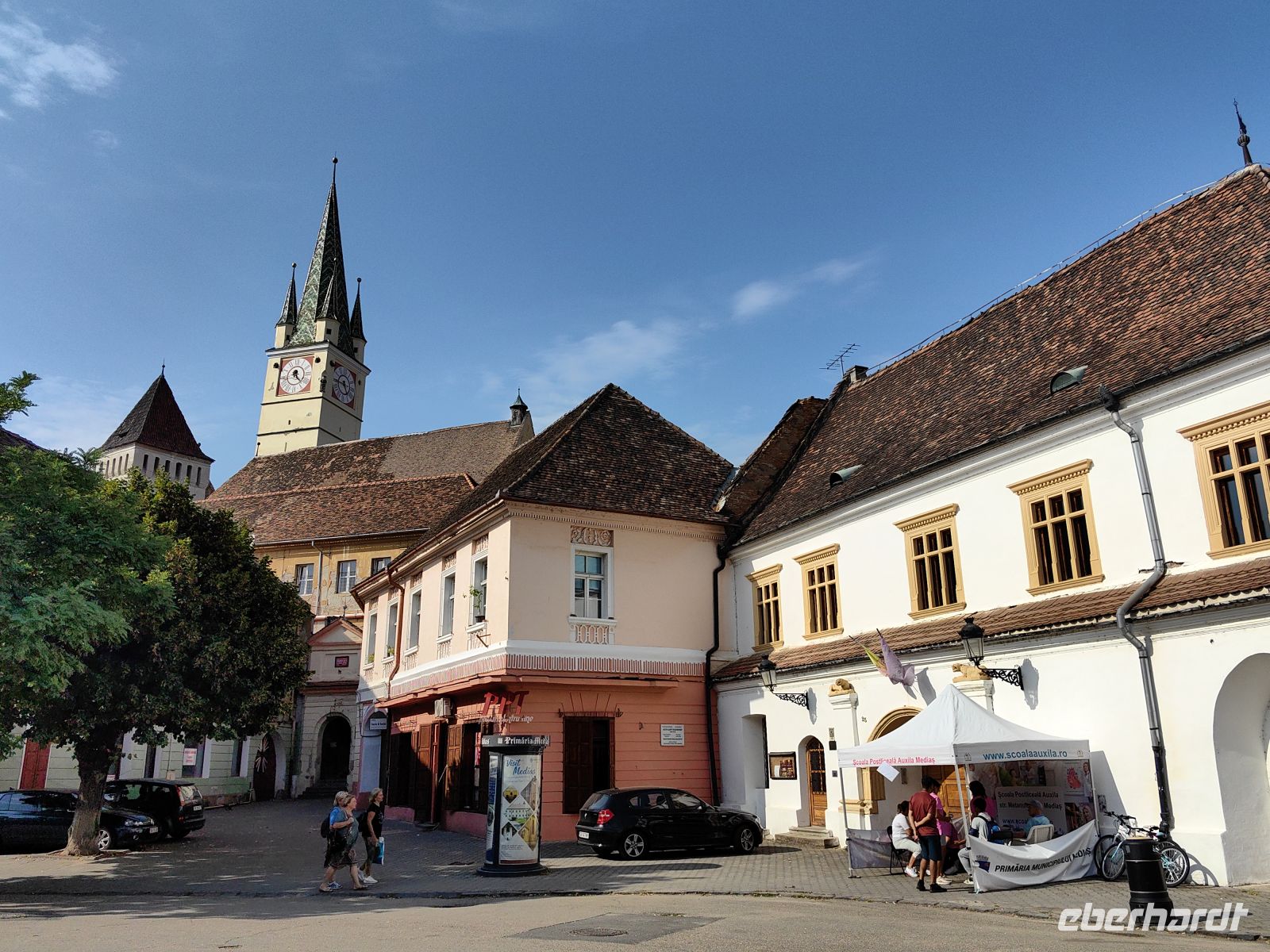 In unserem heutigen Übernachtungsort Medias unternehmen wir einen Spaziergang in der Altstadt, sehen das beindruckende Gymnasium und die Margarethenkirche. Sie hat einen sehr charakteristischen schiefen Trompetenturm und in ihrem Innenraum befindet sich eine Sammlung wertvoller historischer siebenbürgischer Teppiche.