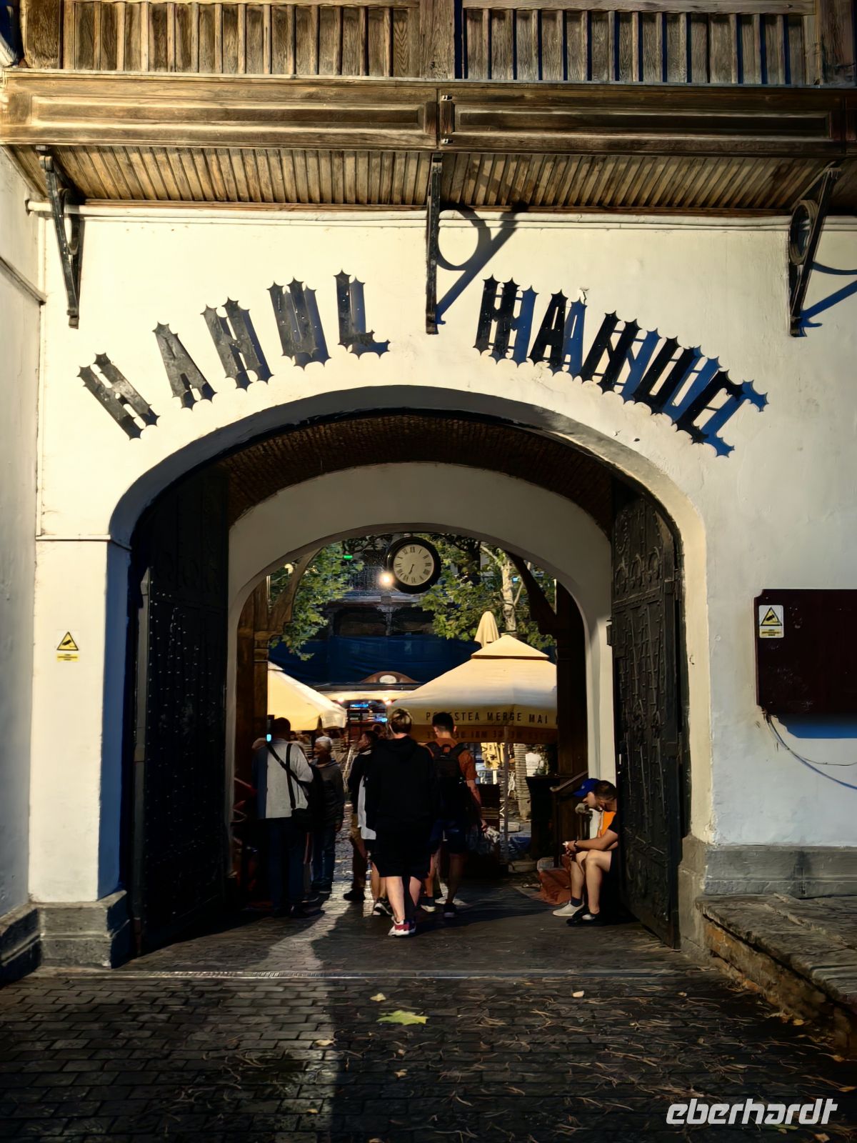 Wir fahren so nah an die Altstadt heran, wie es geht und laufen zur alten Karawanserei, dem Hanul Manuc. 1769 durch Manuc Bey gegründet, diente der Hof einst als Herberge für Reisende, die von der Seidenstraße kamen. Hier lagerte man Wein in 15 unterirdischen Weinkellern und beherbergte über 20 Läden im Erdgeschoß. Im ganzen Areal konnte man bis zu 500 Fremde unterbringen. Heute ist der Hof ein Restaurant, als wir ankommen ist es rappelvoll und aufgrund des schlechten Wetters dürfen wir in den ersten Stock in einen geschlossenen Raum und müssen nicht im offenen Innenhof frieren. Zuerst gibt es lateinamerikanische Tänze und danach geht es mit zünftiger rumänischer Folklore und Tänzen weiter.