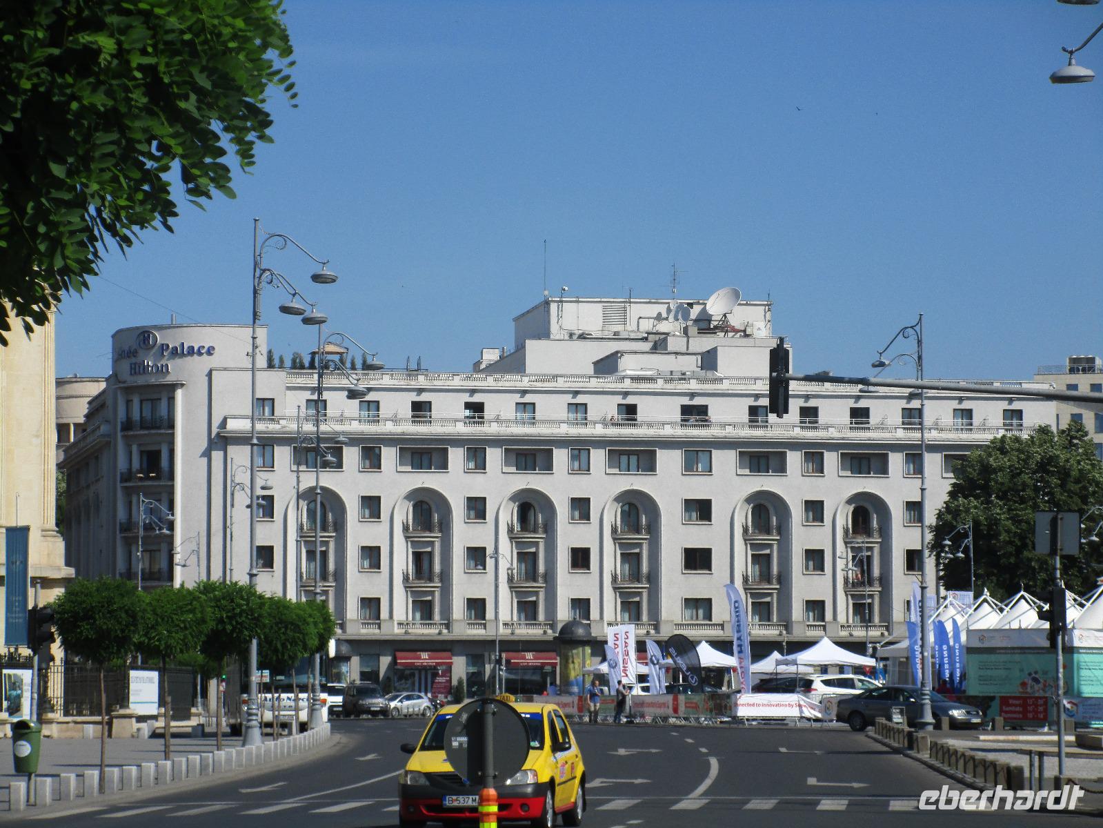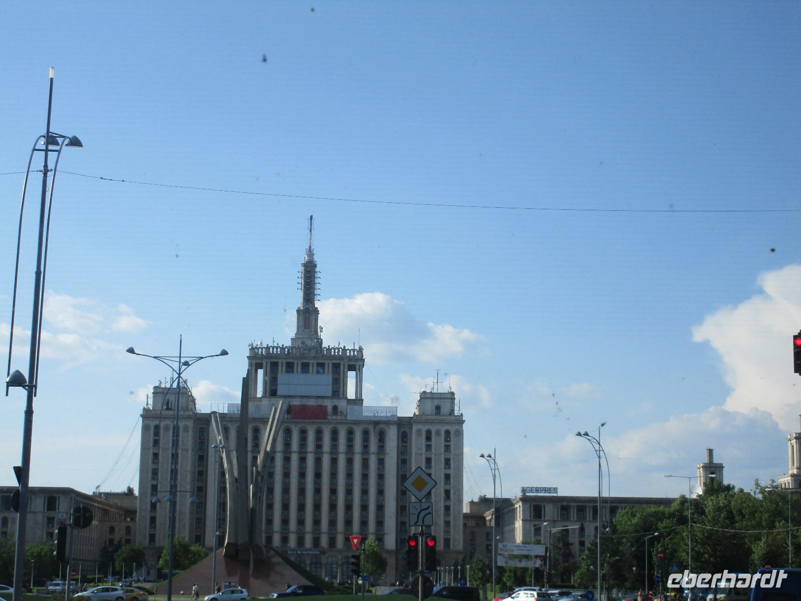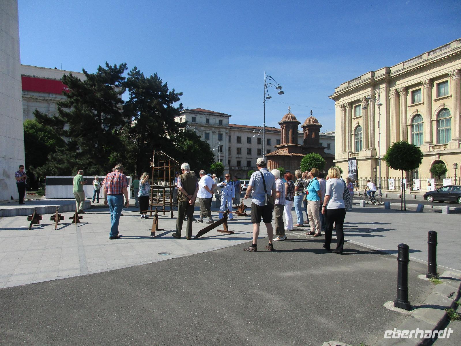 Am Morgen kurz vor halb zehn treffe ich mich mit meinen 16 Reisegästen aus Dresden zum vereinbarten Treffpunkt am Flughafen. Schnell checke ich die letzten Gäste ein und nachdem wir unsere Koffer aufgegeben haben, gehen wir gemeinsam durch die Sicherheitskontrolle. Mit einer zweiten Gruppe von Eberhardt TRAVEL füllen wir die Maschine nach Frankfurt schon sehr gut aus. Hier in der hessischen Metropole vergrößert sich die Gruppe und nach rund zwei Flugstunden erreichen wir am Abend die Hauptstadt Rumäniens, Bukarest. Wir werden bereits von unserer örtlichen Reiseleiterin Corina erwartet und die 6 Kilometer zu unserem Hotel im Norden der Stadt sind schnell hinter uns gebracht. Wir checken ein und nun kann ich auch die letzen Gäste begrüßen, die zu unserer Gruppe stoßen. Gemeinsam mit meinen 33 Reisegästen essen wir im hoteleigenen Restaurant zu Abend. Wer nach der Anreise noch nicht ins Bett möchte, genießt einen kurzen Spaziergang vor dem Hotel. Wir beobachten dabei Dreharbeiten, vermutlich zu einem Werbedreh von Renault, was sehr interessant ist. Was hier einfach im Weg steht, in diesem Fall eine rot leuchtende Ampel, wird einfach weggeflext und rund ein Meter weiter rechts neu abgestellt. Wir stellen zum ersten Mal auf dieser Reise fest, die Rumänen sind ein wenig verrückt.
