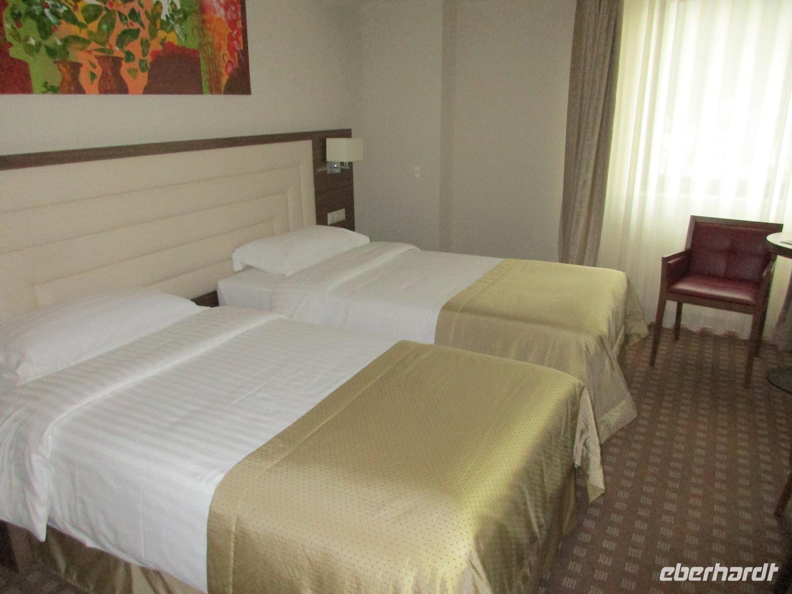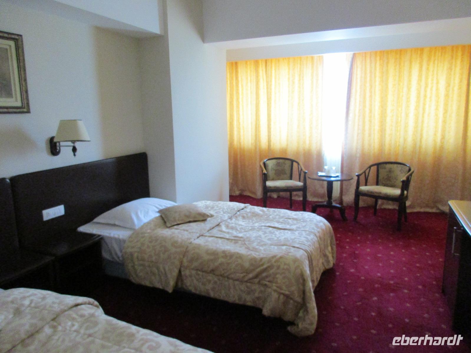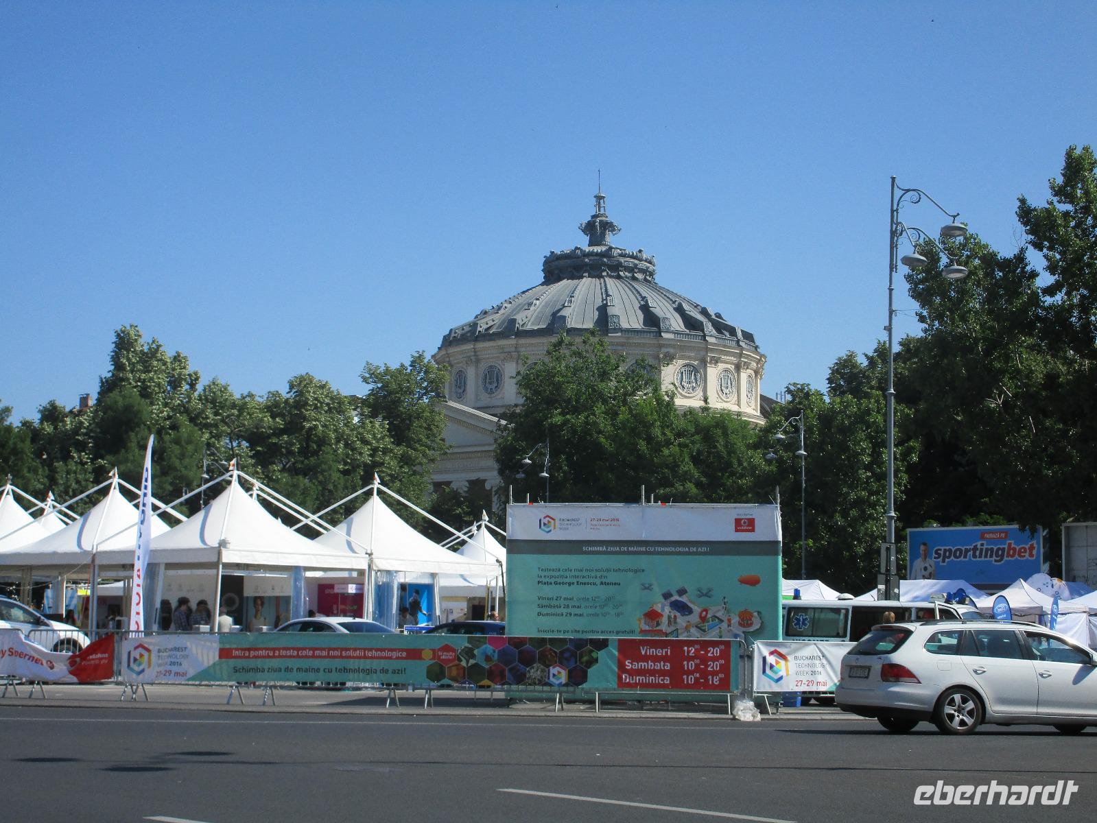 Am Morgen kurz vor halb zehn treffe ich mich mit meinen 16 Reisegästen aus Dresden zum vereinbarten Treffpunkt am Flughafen. Schnell checke ich die letzten Gäste ein und nachdem wir unsere Koffer aufgegeben haben, gehen wir gemeinsam durch die Sicherheitskontrolle. Mit einer zweiten Gruppe von Eberhardt TRAVEL füllen wir die Maschine nach Frankfurt schon sehr gut aus. Hier in der hessischen Metropole vergrößert sich die Gruppe und nach rund zwei Flugstunden erreichen wir am Abend die Hauptstadt Rumäniens, Bukarest. Wir werden bereits von unserer örtlichen Reiseleiterin Corina erwartet und die 6 Kilometer zu unserem Hotel im Norden der Stadt sind schnell hinter uns gebracht. Wir checken ein und nun kann ich auch die letzen Gäste begrüßen, die zu unserer Gruppe stoßen. Gemeinsam mit meinen 33 Reisegästen essen wir im hoteleigenen Restaurant zu Abend. Wer nach der Anreise noch nicht ins Bett möchte, genießt einen kurzen Spaziergang vor dem Hotel. Wir beobachten dabei Dreharbeiten, vermutlich zu einem Werbedreh von Renault, was sehr interessant ist. Was hier einfach im Weg steht, in diesem Fall eine rot leuchtende Ampel, wird einfach weggeflext und rund ein Meter weiter rechts neu abgestellt. Wir stellen zum ersten Mal auf dieser Reise fest, die Rumänen sind ein wenig verrückt.