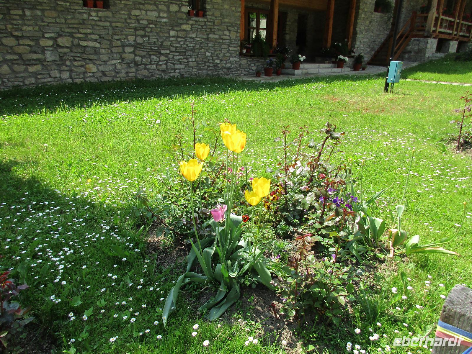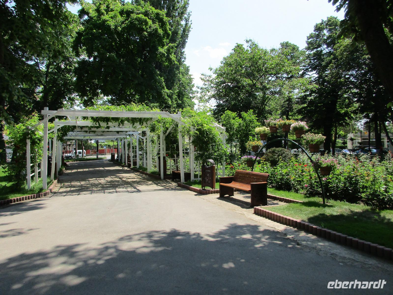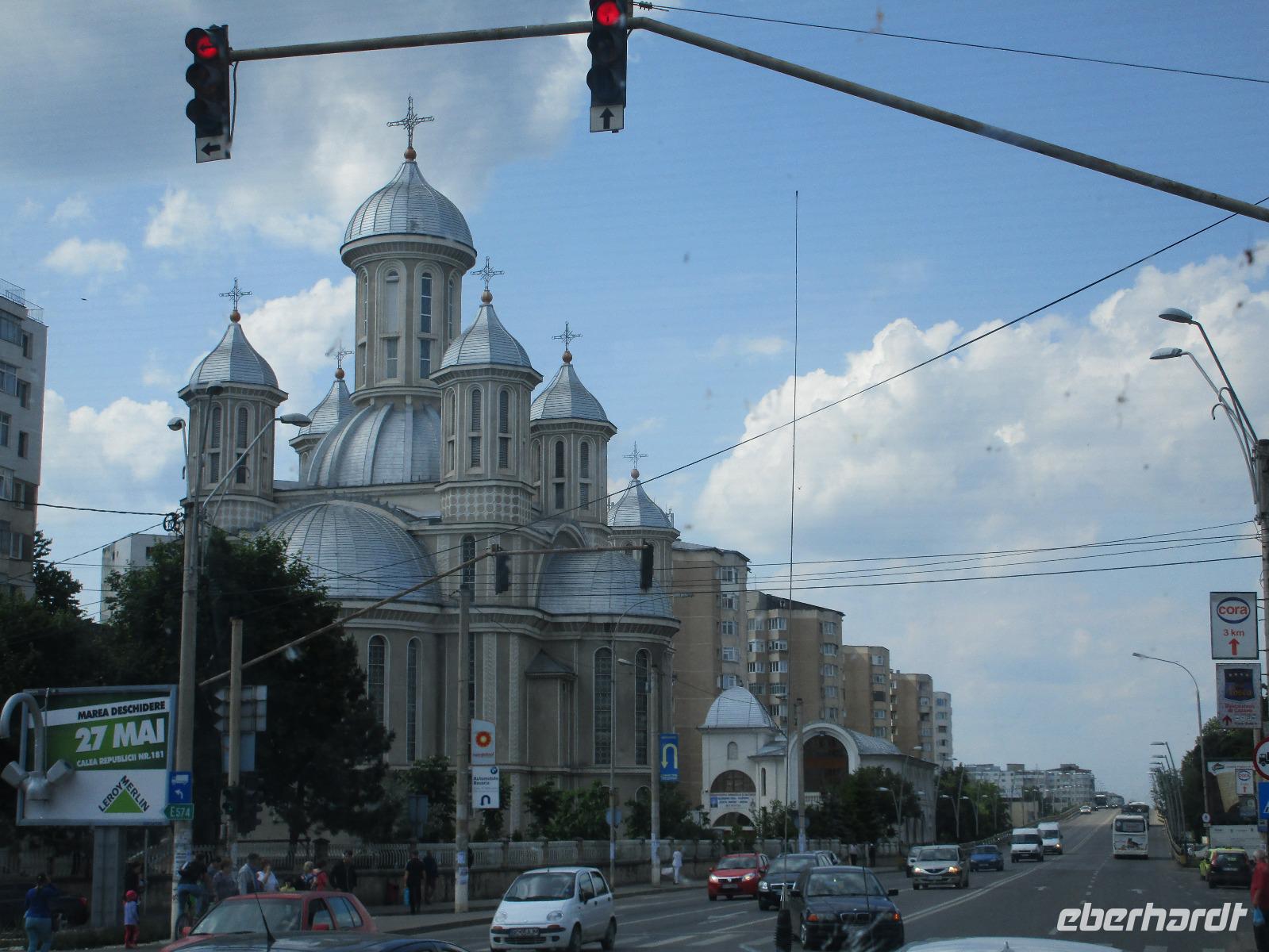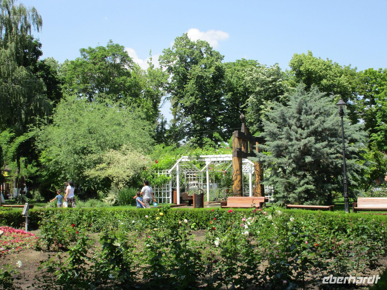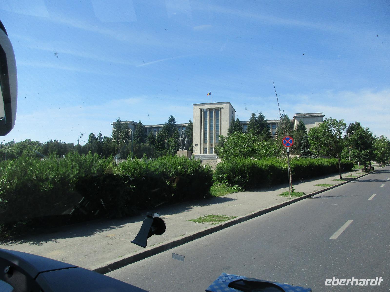 Ein langer Fahrtag liegt heute vor uns. Das Ziel: Piatra Neamt. Entlang grüner Wiesen und Wäldern und vorbei durch kleine Ortschaften wie Isaccea, Rachelu und Luncavita erreichen wir die Donau, die wir nun mit einer Fähre überqueren. Wir steigen alle aus, damit Niko den Bus auf die Fähre und entsprechend rangieren kann. Dann laufen wir zu Fuß auf die Fähre und warten zwischen den Autos auf die Überfahrt. Aber das ist nicht wirklich dramatisch, den die Überfahrt dauert ca. zehn Minuten. Auf der anderen Seite legen wir in Galaci an, einer doch größeren rumänischen Stadt. Niko steuert seinen großen Bus durch Cuza, Voda und Motca bis wir am zeitigen Nachmittag schließlich Tucea erreichen, wo wir unsere Mittagspause verbringen. Hier am wunderschön angelegten Rosenpark gibt es einige Möglichkeiten, die Pause gut zu nutzen bspw. bei einem Mittagessen in einem Restaurant oder an einem Stehimbiss oder einfach bei einem Spaziergang durch den Park mit seinem klangvollen Brunnenwasserspiel. Danach fahren wir durch Tisita, Bacau bis wir schließlich am frühen Abend Pietra Neamt, eine Stadt umgeben von Hügeln, erreichen, unser Zuhause für die kommenden zwei Nächte. Zwischen Checkin und Abendessen nutzen einige von uns die Zeit, die Sehenswürdigkeiten der Stadt wie die Oper, die Synagoge, die Reste der Zitadelle und die Johanniskirche anzuschauen.