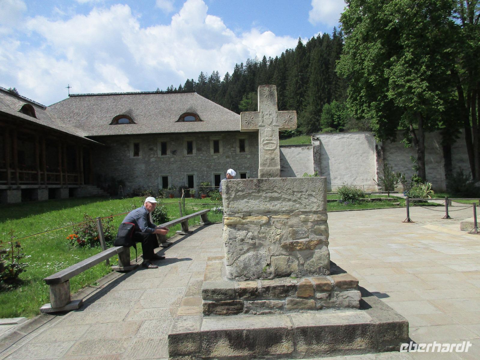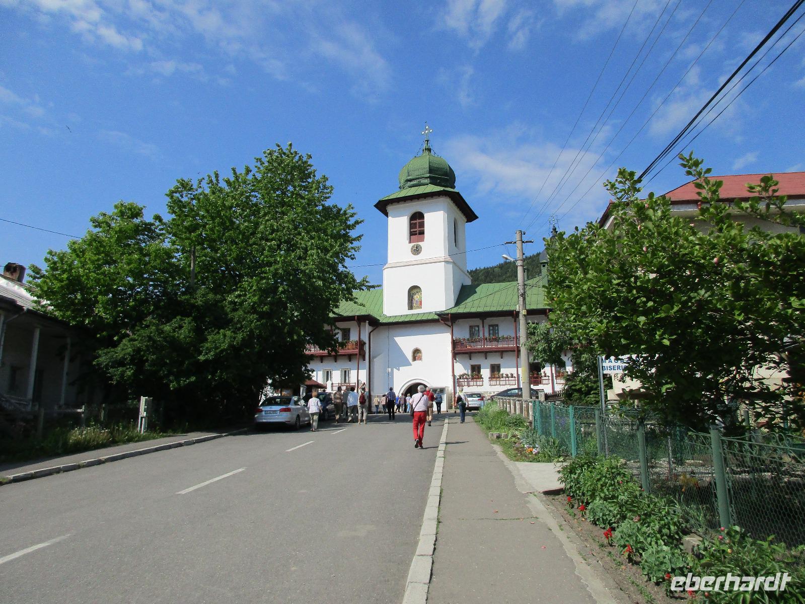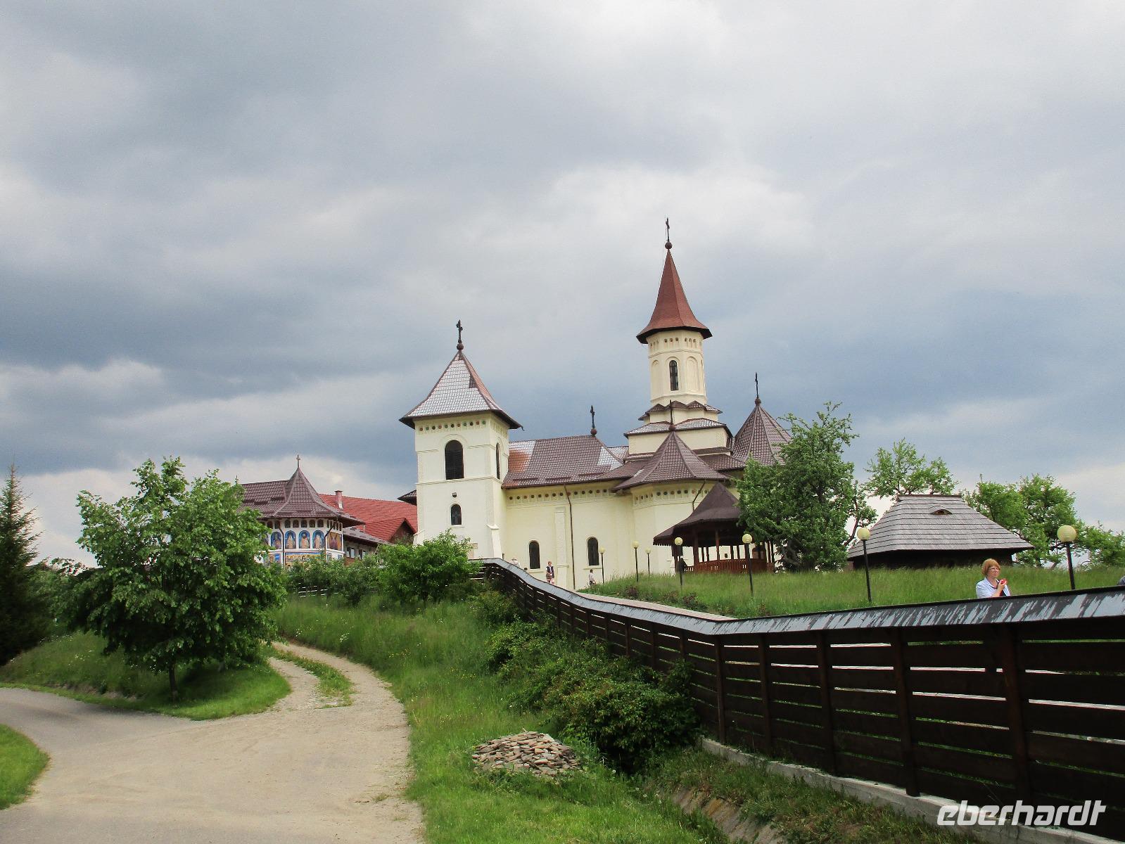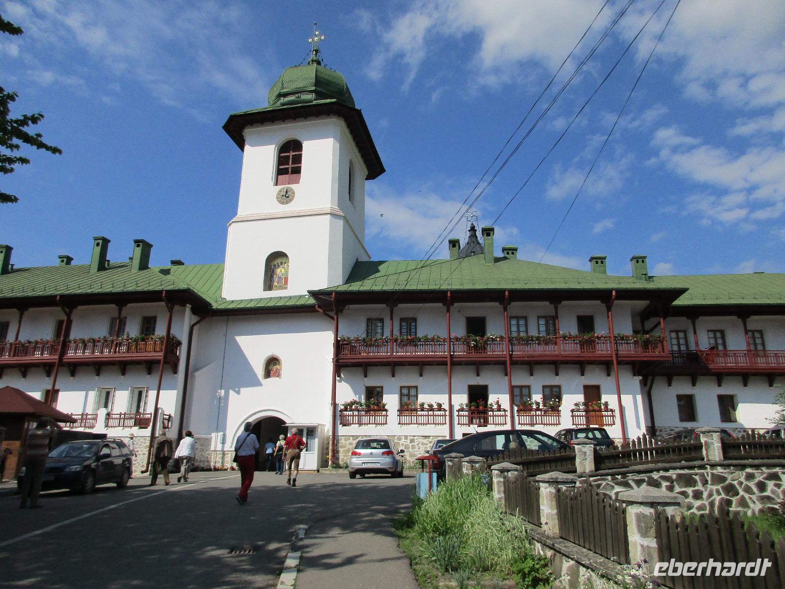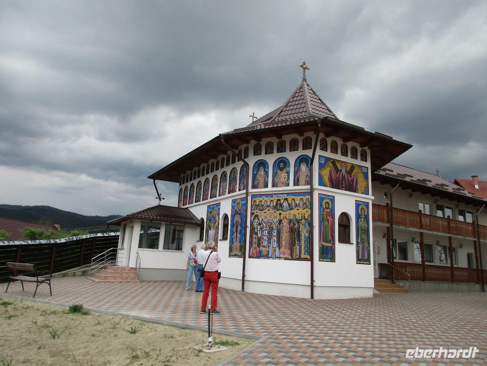 Heute treffen wir uns ohne Koffer am Bus denn wir werden eine weitere Nacht in Piatra Neamt verbringen, damit wir heute die wunderschönen Klöster der Moldauregion anschauen können. Es geht auch gleich nach dem Frühstück los und nach rund einer dreiviertel Stunde Fahrt erreichen wir das orthodoxe Nonnenkloster Agapaia. Mit unseren Audioguides im Ohr spazieren wir vorbei an den kleinen Häusern der Nonnen bis zum Eingang der Klosternanlage. Im Inneren der Anlage befindet sich eine schöne Gartenanlage, die von den Nonnen selbst gepflegt werden. So kommen wir in den Genuss, einer Nonne beim Rasenmähen zuzuschauen. Kernstück der Klosteranlage ist die hiesige Kirche, die im Inneren prunkvoll ausgestattet ist. Die Innenmalereien stammen vom bekannten rumänischen Maler Nicolae Grigorescu. Bei der anschließenden Freizeit am Kloster besichtigen wir einige Räume des Klosters und können auch selbstgemachte Schmuckstücke und Konfitüren käuflich erwerben. Unser nächstes Ziel ist das legendäre Kloster Voronet, welches wir nach rund 1,5 Stunden Fahrt erreichen. Entlang eines Basares erreichen wir diese Klosteranlage, die auf einer kleinen Anhöhe errichtet wurde. Prunkstück hier sind natürlich die Wandermalereien an der äußeren Seite der Kirche. Das bekannteste Kloster Rumäniens ist auch unter dem Beinamen Sixtinische Kapelle des Ostens bekannt. Das Innere der Kirche besticht durch seine Schlichtheit und doch wunderschönen, zahlreichen Malereien in kräftigen Farben. Besonders das Äußere der Westseite besticht, denn da ist auch einer sehr großen Fläche das Jüngste Gericht bildlich dargestellt. Corina erklärt uns einzelne Segmente davon, die von oben nach unten in fünf Abschnitte dargestellt sind. Ein wirklich beeindruckendes Kloster, dessen Besuch man absolute empfehlen muss. Nach einem kurzen Besuch auf dem vorherliegenden Friedhof bummeln wir langsam über den Basar zurück in Richtung Bus. Nico erwartet uns bereits, um uns zurück in die Stadt zu bringen, wo wir unsere Mittagspause verbringen. Einige meiner Gäste speisen im Hotelrestaurant, einige an einer Art Imbiss. Wieder andere spazieren durch den Ort und besuchen die Markthalle des Ortes, die man viel frischem Obst, Käse und Fleisch aufwartet. Auf jeden Fall auch einmal ein interessanter Einblick in das rumänische Leben. Bevor es zurück nach Pietra Neamt geht, besuchen wir das letzte Kloster für den heutigen Tag, Kloster Humor. Nicht ganz so imposant wie Kloster Voronet besticht aber auch dieses Kloster mit wunderbaren Außenmalereien, die auch das Innere verzieren. Kloster Humor ist allerdings auch etwas kleiner und irgendwie, meiner Meinung nach, auch etwas schlichter. Zum Abschluss gehen noch einige aus der Gruppe in die nebenanliegende Kirche. Schließlich setzen wir unseren Rückweg in Richtung Pietra Neamt fort. Leider verlässt uns nun der Segen des schönen Wetters und dunkle Wolken begleiten unseren Weg. Zurück in der Stadt hat sich der Himmel soweit zugezogen, dass dicke Regentropfen herunterfallen und somit das Vorhaben, mit der örtlichen Seilbahn zu fahren, nicht durchgeführt werden kann.