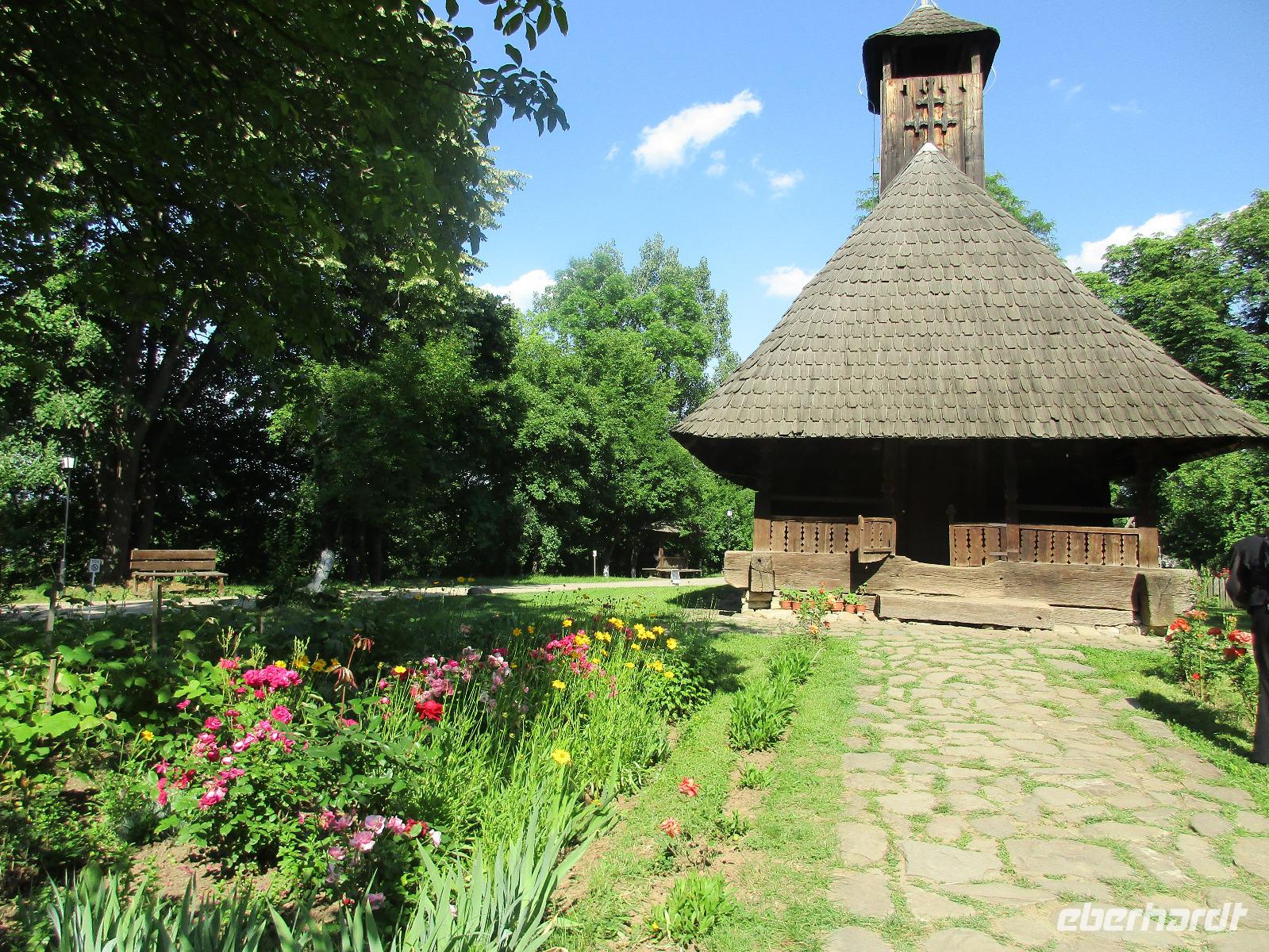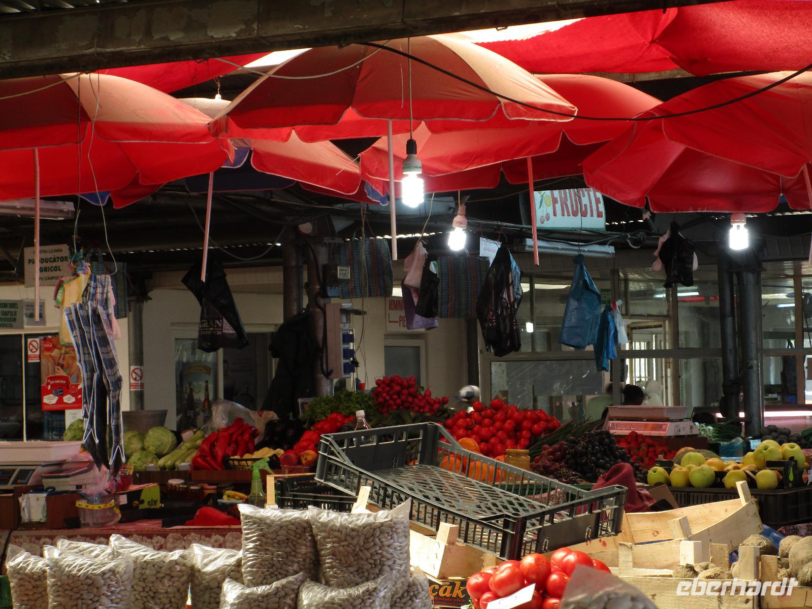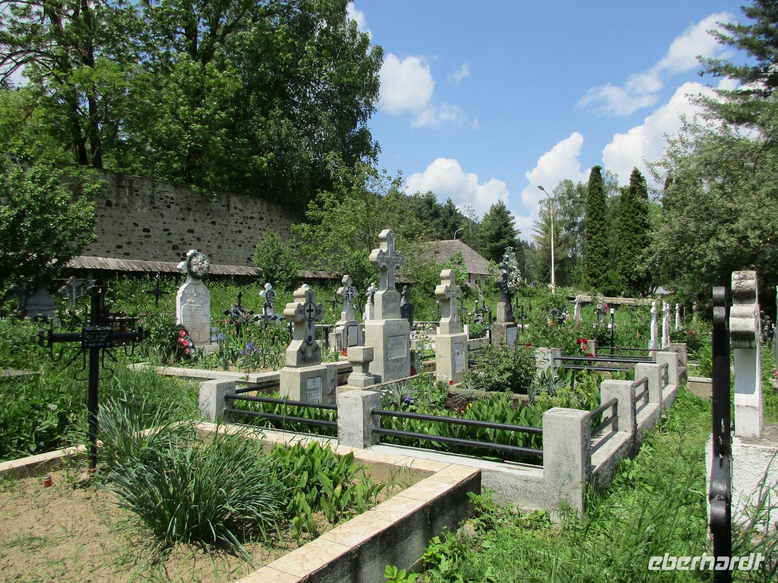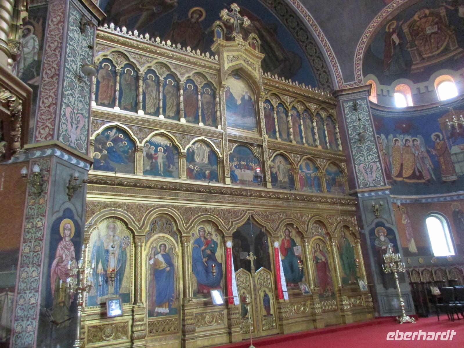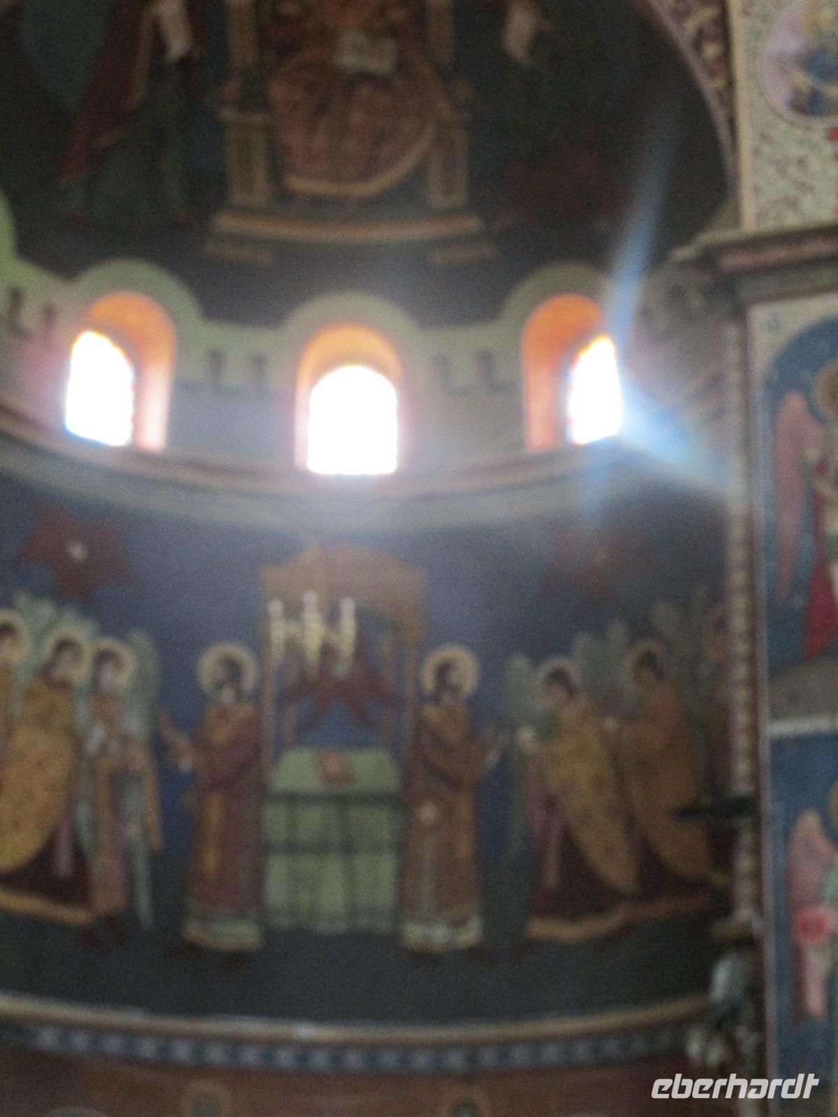 Heute treffen wir uns ohne Koffer am Bus denn wir werden eine weitere Nacht in Piatra Neamt verbringen, damit wir heute die wunderschönen Klöster der Moldauregion anschauen können. Es geht auch gleich nach dem Frühstück los und nach rund einer dreiviertel Stunde Fahrt erreichen wir das orthodoxe Nonnenkloster Agapaia. Mit unseren Audioguides im Ohr spazieren wir vorbei an den kleinen Häusern der Nonnen bis zum Eingang der Klosternanlage. Im Inneren der Anlage befindet sich eine schöne Gartenanlage, die von den Nonnen selbst gepflegt werden. So kommen wir in den Genuss, einer Nonne beim Rasenmähen zuzuschauen. Kernstück der Klosteranlage ist die hiesige Kirche, die im Inneren prunkvoll ausgestattet ist. Die Innenmalereien stammen vom bekannten rumänischen Maler Nicolae Grigorescu. Bei der anschließenden Freizeit am Kloster besichtigen wir einige Räume des Klosters und können auch selbstgemachte Schmuckstücke und Konfitüren käuflich erwerben. Unser nächstes Ziel ist das legendäre Kloster Voronet, welches wir nach rund 1,5 Stunden Fahrt erreichen. Entlang eines Basares erreichen wir diese Klosteranlage, die auf einer kleinen Anhöhe errichtet wurde. Prunkstück hier sind natürlich die Wandermalereien an der äußeren Seite der Kirche. Das bekannteste Kloster Rumäniens ist auch unter dem Beinamen Sixtinische Kapelle des Ostens bekannt. Das Innere der Kirche besticht durch seine Schlichtheit und doch wunderschönen, zahlreichen Malereien in kräftigen Farben. Besonders das Äußere der Westseite besticht, denn da ist auch einer sehr großen Fläche das Jüngste Gericht bildlich dargestellt. Corina erklärt uns einzelne Segmente davon, die von oben nach unten in fünf Abschnitte dargestellt sind. Ein wirklich beeindruckendes Kloster, dessen Besuch man absolute empfehlen muss. Nach einem kurzen Besuch auf dem vorherliegenden Friedhof bummeln wir langsam über den Basar zurück in Richtung Bus. Nico erwartet uns bereits, um uns zurück in die Stadt zu bringen, wo wir unsere Mittagspause verbringen. Einige meiner Gäste speisen im Hotelrestaurant, einige an einer Art Imbiss. Wieder andere spazieren durch den Ort und besuchen die Markthalle des Ortes, die man viel frischem Obst, Käse und Fleisch aufwartet. Auf jeden Fall auch einmal ein interessanter Einblick in das rumänische Leben. Bevor es zurück nach Pietra Neamt geht, besuchen wir das letzte Kloster für den heutigen Tag, Kloster Humor. Nicht ganz so imposant wie Kloster Voronet besticht aber auch dieses Kloster mit wunderbaren Außenmalereien, die auch das Innere verzieren. Kloster Humor ist allerdings auch etwas kleiner und irgendwie, meiner Meinung nach, auch etwas schlichter. Zum Abschluss gehen noch einige aus der Gruppe in die nebenanliegende Kirche. Schließlich setzen wir unseren Rückweg in Richtung Pietra Neamt fort. Leider verlässt uns nun der Segen des schönen Wetters und dunkle Wolken begleiten unseren Weg. Zurück in der Stadt hat sich der Himmel soweit zugezogen, dass dicke Regentropfen herunterfallen und somit das Vorhaben, mit der örtlichen Seilbahn zu fahren, nicht durchgeführt werden kann.