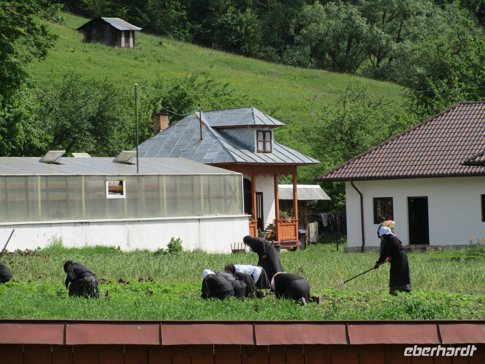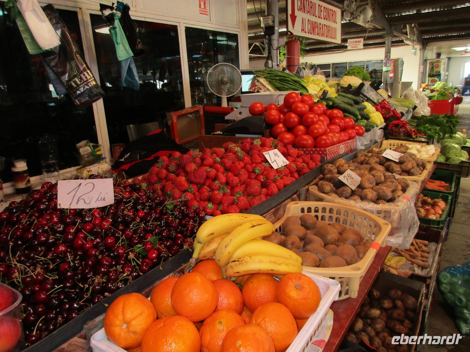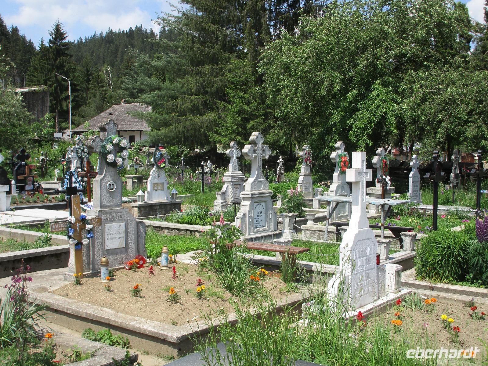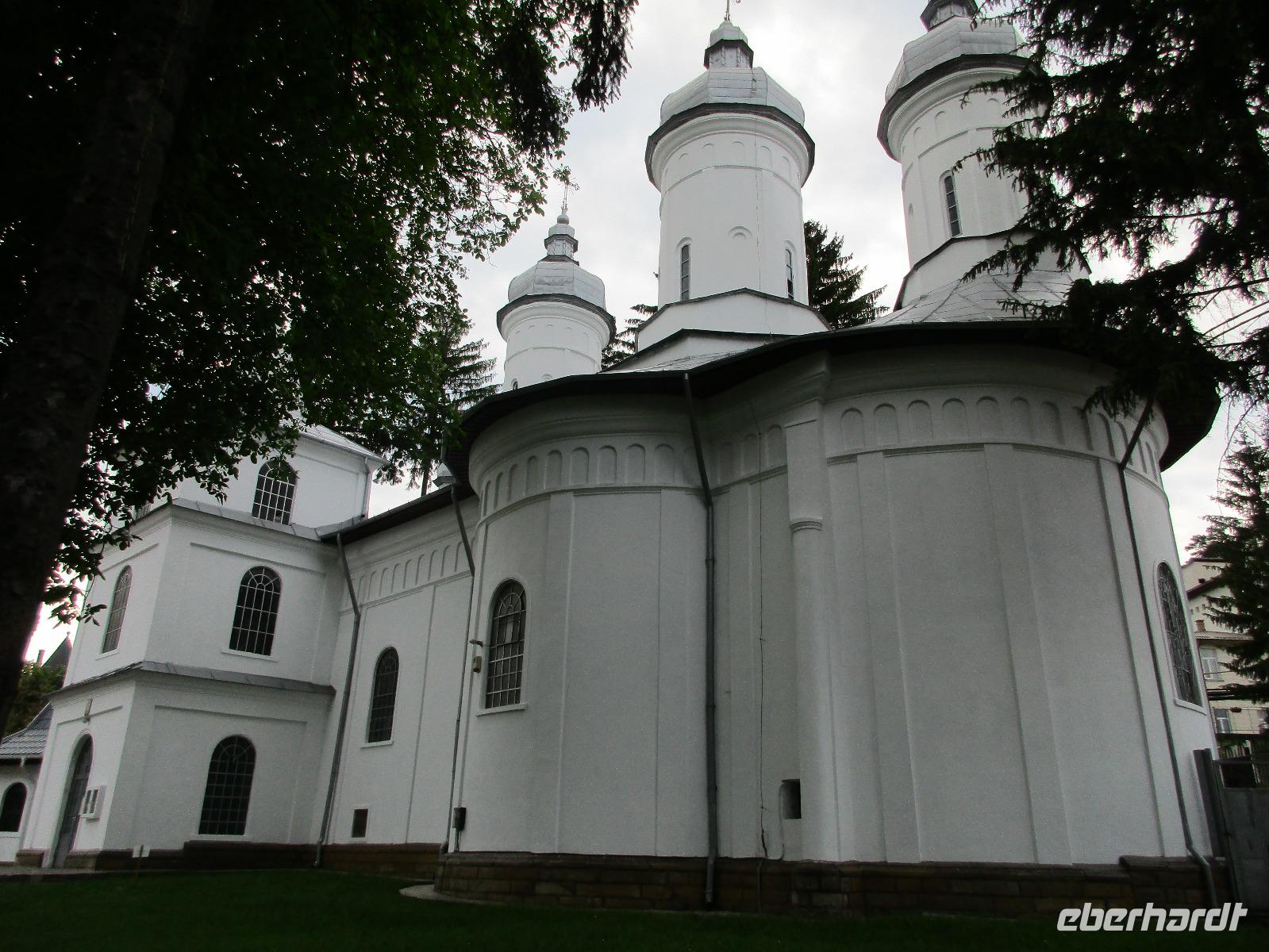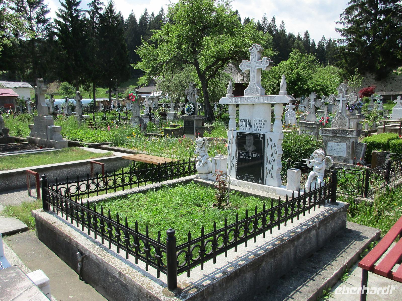 Heute treffen wir uns ohne Koffer am Bus denn wir werden eine weitere Nacht in Piatra Neamt verbringen, damit wir heute die wunderschönen Klöster der Moldauregion anschauen können. Es geht auch gleich nach dem Frühstück los und nach rund einer dreiviertel Stunde Fahrt erreichen wir das orthodoxe Nonnenkloster Agapaia. Mit unseren Audioguides im Ohr spazieren wir vorbei an den kleinen Häusern der Nonnen bis zum Eingang der Klosternanlage. Im Inneren der Anlage befindet sich eine schöne Gartenanlage, die von den Nonnen selbst gepflegt werden. So kommen wir in den Genuss, einer Nonne beim Rasenmähen zuzuschauen. Kernstück der Klosteranlage ist die hiesige Kirche, die im Inneren prunkvoll ausgestattet ist. Die Innenmalereien stammen vom bekannten rumänischen Maler Nicolae Grigorescu. Bei der anschließenden Freizeit am Kloster besichtigen wir einige Räume des Klosters und können auch selbstgemachte Schmuckstücke und Konfitüren käuflich erwerben. Unser nächstes Ziel ist das legendäre Kloster Voronet, welches wir nach rund 1,5 Stunden Fahrt erreichen. Entlang eines Basares erreichen wir diese Klosteranlage, die auf einer kleinen Anhöhe errichtet wurde. Prunkstück hier sind natürlich die Wandermalereien an der äußeren Seite der Kirche. Das bekannteste Kloster Rumäniens ist auch unter dem Beinamen Sixtinische Kapelle des Ostens bekannt. Das Innere der Kirche besticht durch seine Schlichtheit und doch wunderschönen, zahlreichen Malereien in kräftigen Farben. Besonders das Äußere der Westseite besticht, denn da ist auch einer sehr großen Fläche das Jüngste Gericht bildlich dargestellt. Corina erklärt uns einzelne Segmente davon, die von oben nach unten in fünf Abschnitte dargestellt sind. Ein wirklich beeindruckendes Kloster, dessen Besuch man absolute empfehlen muss. Nach einem kurzen Besuch auf dem vorherliegenden Friedhof bummeln wir langsam über den Basar zurück in Richtung Bus. Nico erwartet uns bereits, um uns zurück in die Stadt zu bringen, wo wir unsere Mittagspause verbringen. Einige meiner Gäste speisen im Hotelrestaurant, einige an einer Art Imbiss. Wieder andere spazieren durch den Ort und besuchen die Markthalle des Ortes, die man viel frischem Obst, Käse und Fleisch aufwartet. Auf jeden Fall auch einmal ein interessanter Einblick in das rumänische Leben. Bevor es zurück nach Pietra Neamt geht, besuchen wir das letzte Kloster für den heutigen Tag, Kloster Humor. Nicht ganz so imposant wie Kloster Voronet besticht aber auch dieses Kloster mit wunderbaren Außenmalereien, die auch das Innere verzieren. Kloster Humor ist allerdings auch etwas kleiner und irgendwie, meiner Meinung nach, auch etwas schlichter. Zum Abschluss gehen noch einige aus der Gruppe in die nebenanliegende Kirche. Schließlich setzen wir unseren Rückweg in Richtung Pietra Neamt fort. Leider verlässt uns nun der Segen des schönen Wetters und dunkle Wolken begleiten unseren Weg. Zurück in der Stadt hat sich der Himmel soweit zugezogen, dass dicke Regentropfen herunterfallen und somit das Vorhaben, mit der örtlichen Seilbahn zu fahren, nicht durchgeführt werden kann.