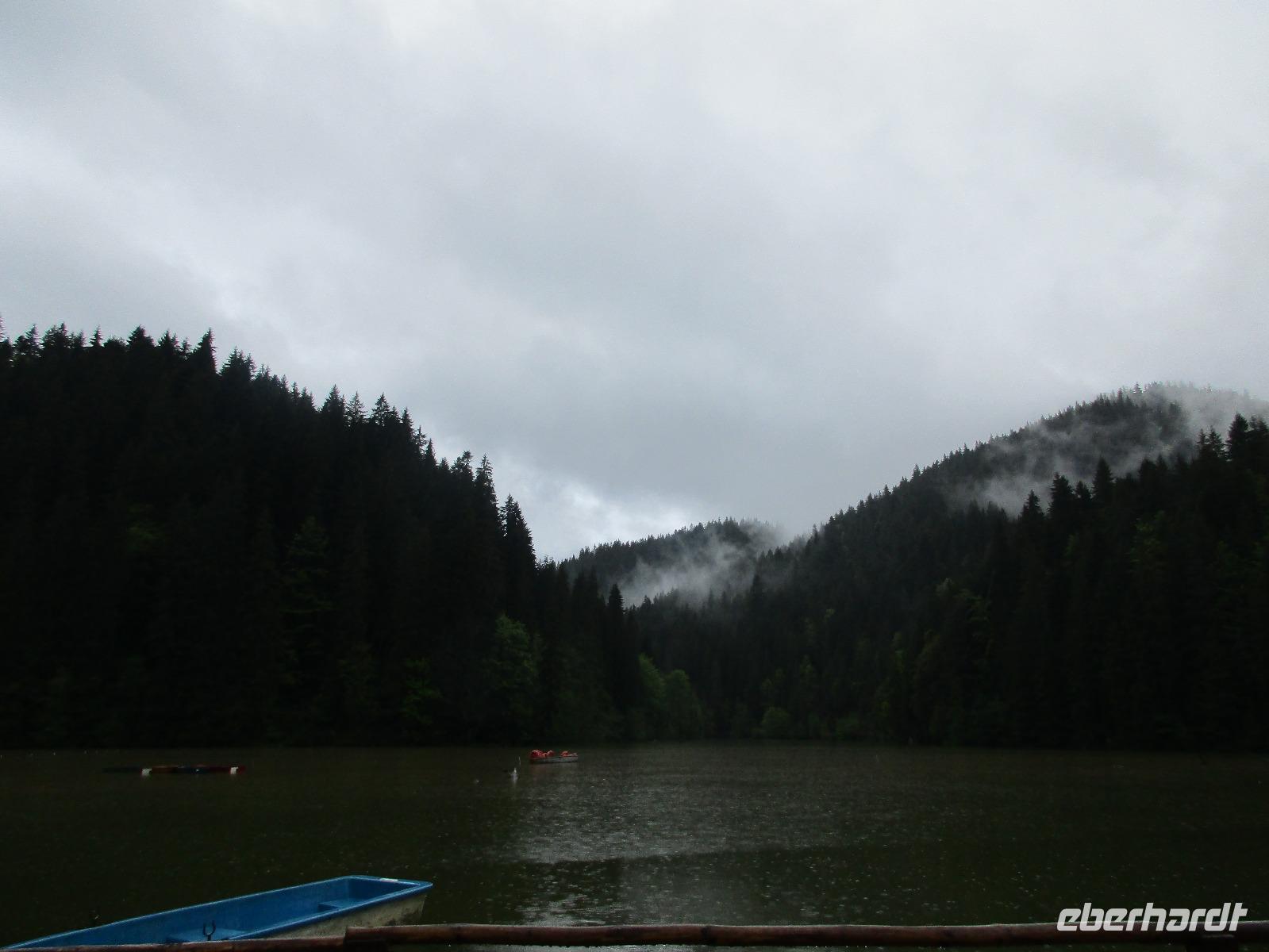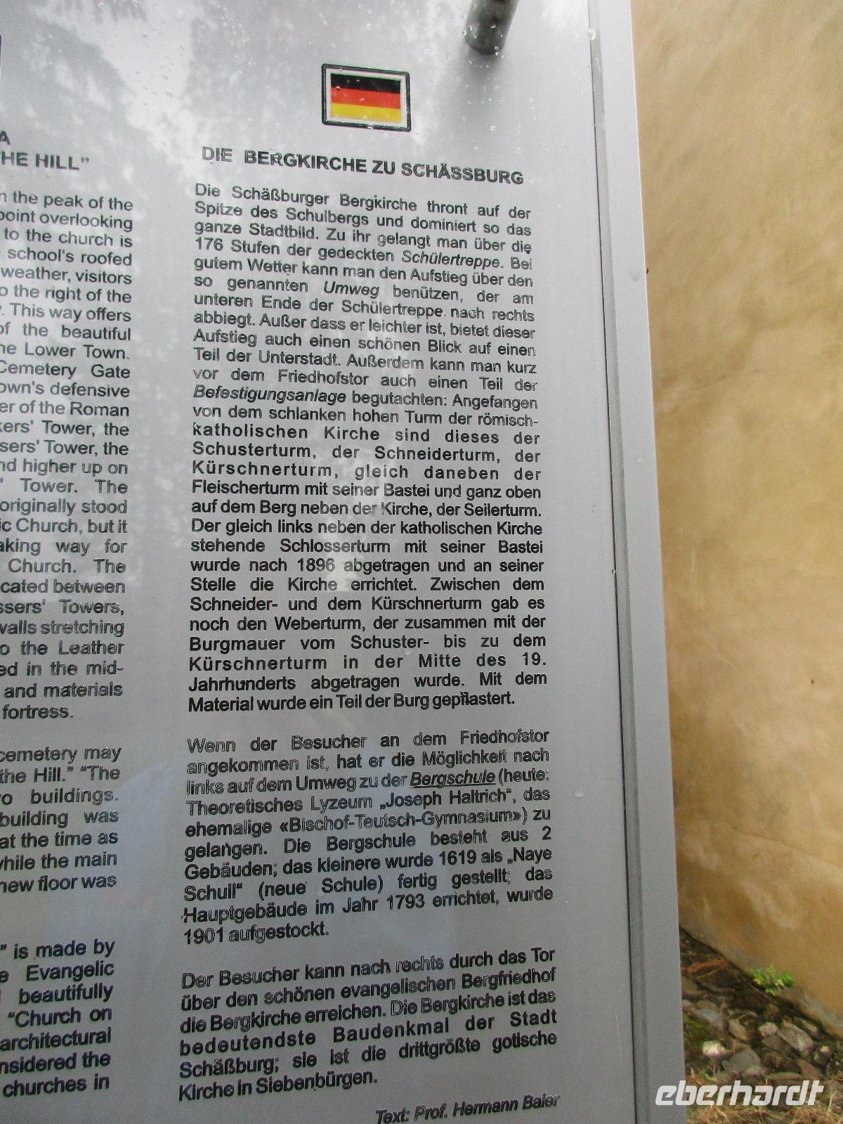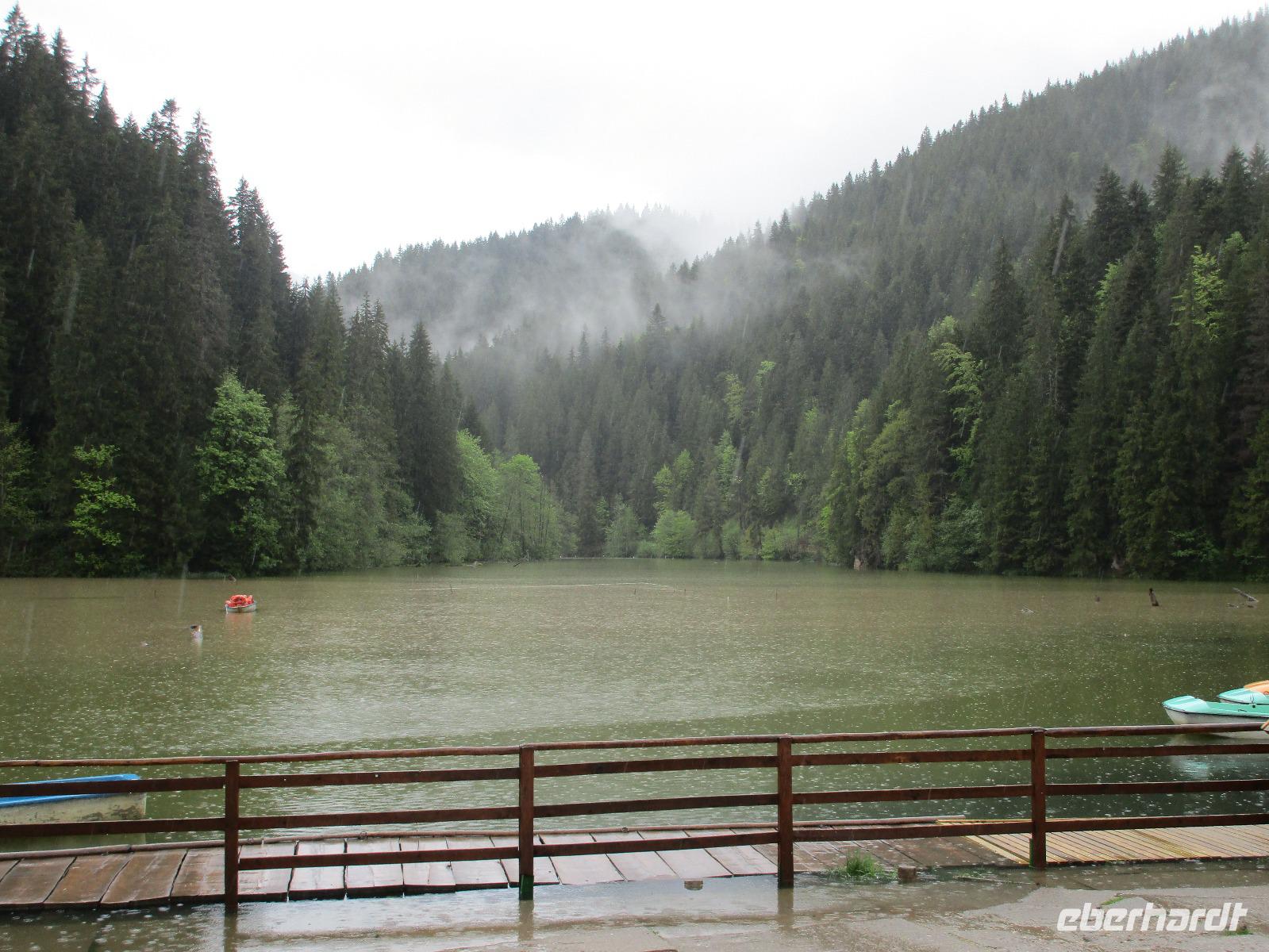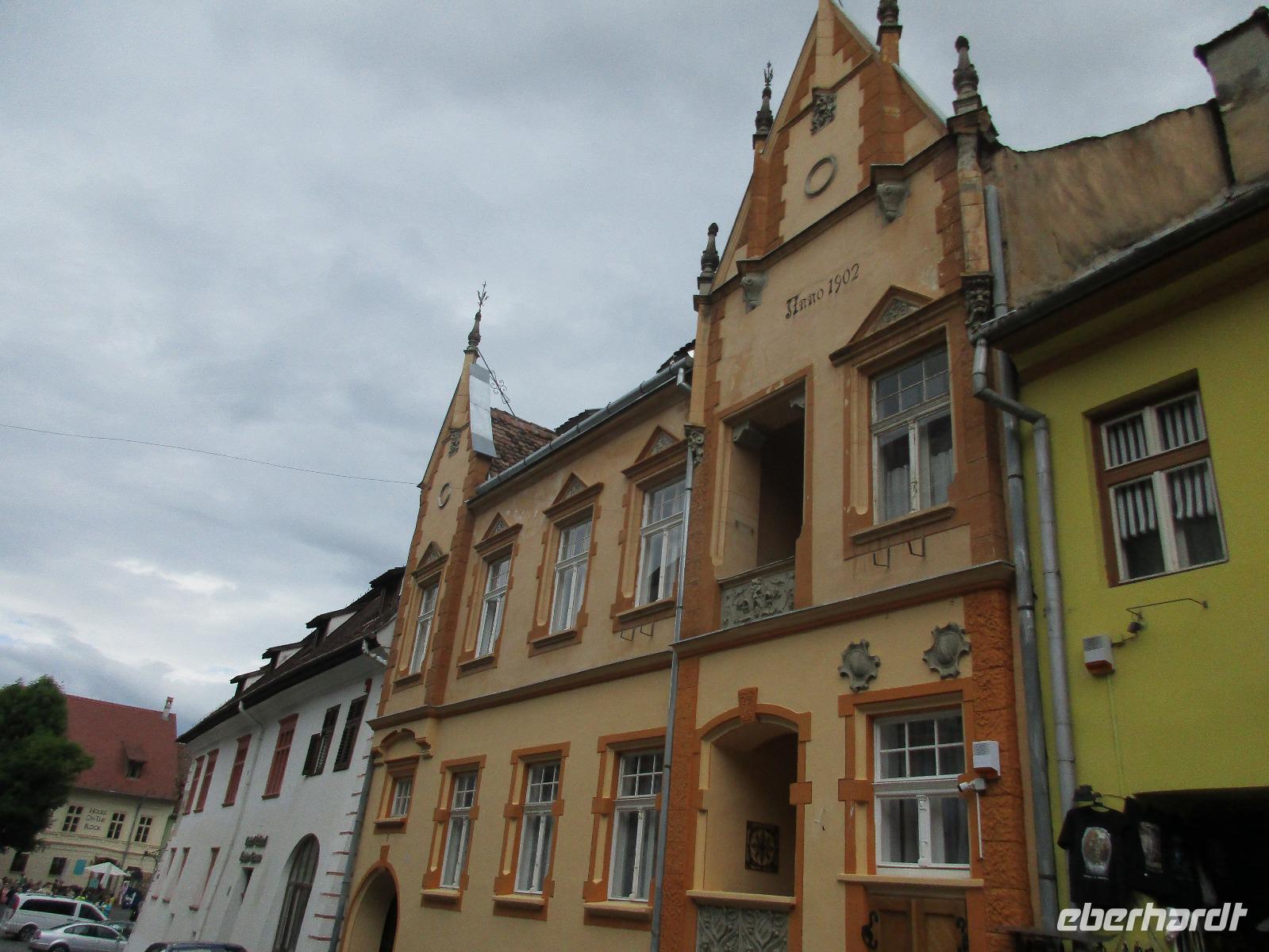 Ein weiterer Fahr-Tag liegt vor uns und wenn wir so in den Himmel schauen, ist es auch besser so, dass wir zunächst einmal im Bus sitzen werden. Einige Kilometer hinter Pietra Neamt öffnet sich langsam die Klamm der Bicaz vor uns. Aufgrund des Regens entscheiden Corina und ich uns dafür, hier leider nicht anzuhalten. Nico lenkt den Bus ruhig Kurve um Kurve durch die engen Straßen der Gebirgskette, die durch das Nass trotzdem irgendwie sehr grün wirkt. Damit wir aber nicht nur im Bus sitzen, halten wir schließlich am sogenannten Roten See, der zurzeit gar nicht rot ist. Wie legen hier am Ufer eine Pause ein, um den See, der dennoch romantisch wirkt, fotografieren zu können und um einige Andenken und Postkarten zu kaufen. Es geht weiter und Nico fährt uns durch das Seklerland, alte Siedlungen, die von den Ungarn geprägt sind. Besonders ihre herrlich, bunten Toren zu den Grundstücken beeindrucken uns und schließlich bekommen wir auch die Gelegenheit, eines dieser Tore zu fotografieren. Am zeitigen Nachmittag schließlich erreichen wir die Dracula-Stadt, Schäßburg und langsam wird auch das Wetter wieder besser. Nico lässt uns am Busparkplatz unterhalb der Burg aussteigen und gemeinsam besteigen wir den Hügel zum Burginneren. Hier eröffnet sich vor uns der Marktplatz der Stadt, um den sich herum eigentlich alles gliedert. Beim Rundgang um den Markt sehen wir das Wagner-Haus, das Sächsische Haus, eine Kirche, das neue Rathaus, natürlich eine Büste von Dracula, ein venezianisches Haus als auch das Geburtshaus von Dracula und den Stundturm. Wer kann und möchte, besteigt nun den doch etwas mühseligen Berg hoch hinauf zur Kirche (entweder über einen Pflasterweg oder mittels Stufen). Oben in der Kirche angekommen, erläutert uns ein Mitarbeiter des Ordens alle wichtigen Einzelheiten zur Kirche und deren Geschichte. Wir dürfen auch in die kleine Gruft hinab steigen. Bei der anschließenden Freizeit in Schäßburg nutzen einige die Möglichkeit, auf den Stundturm hinaufzusteigen und die wunderbare Aussicht von hier oben zu genießen. Aber auch im Geburtshaus von Dracula kommen wir auf unsere Kosten. Im zweiten Stock des Hauses in dunkler Ecke wartet im Sarg Dracula auf seine Gäste und erschreckt diese, auch wenn sie eigentlich erahnen, was gleich kommen wird;-). Nun geht auch dieser Tag zu Ende und wir fahren weiter nach Medias zu unserem Hotel mit dem komischen Namen „Binder Bubi".