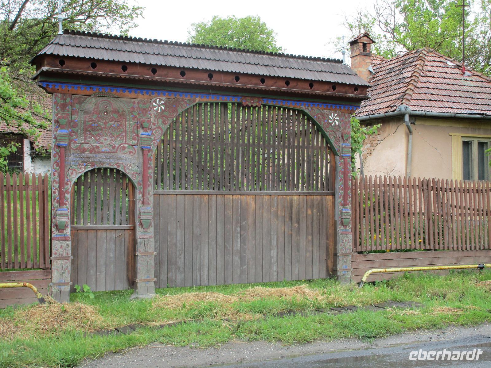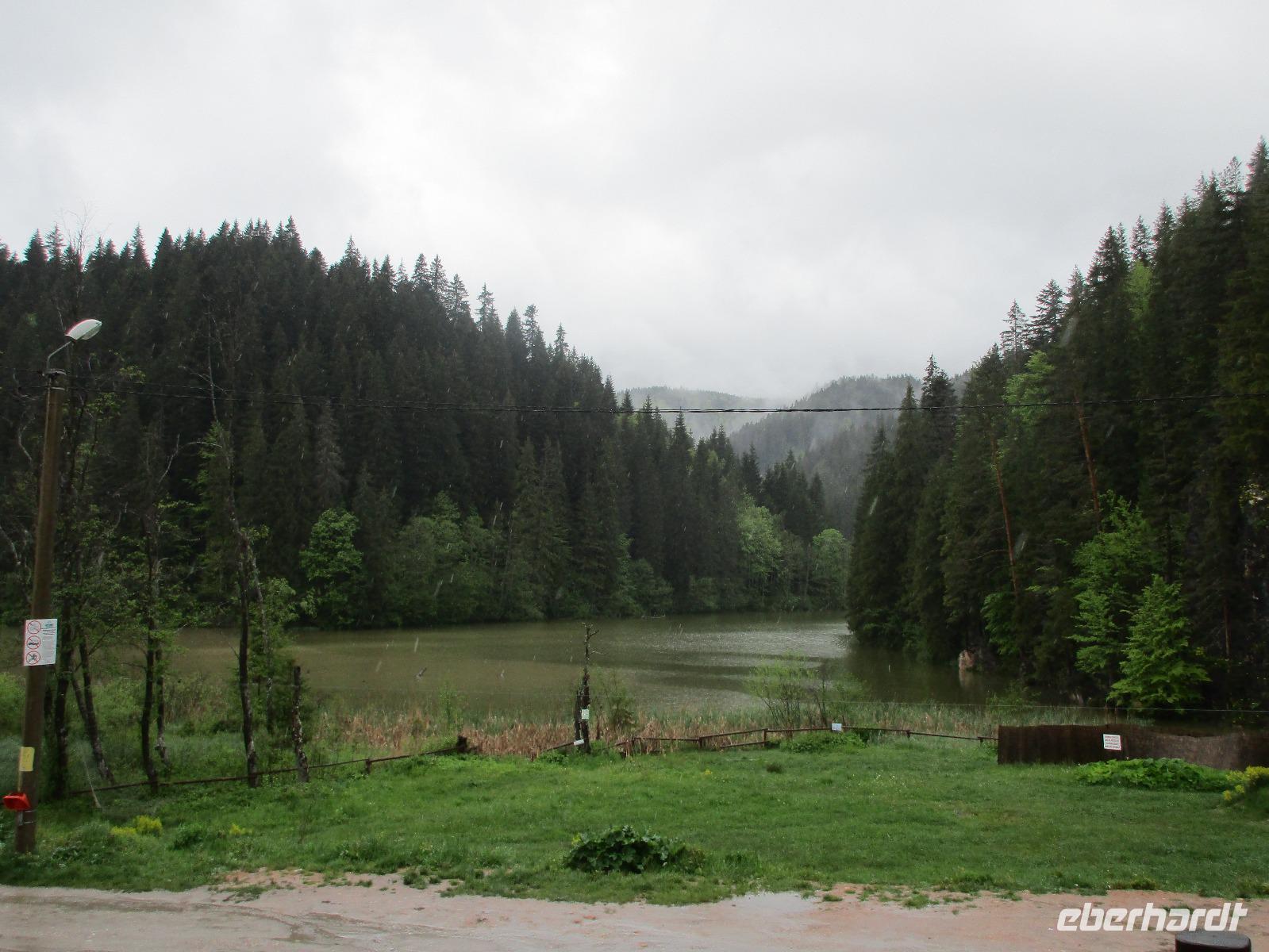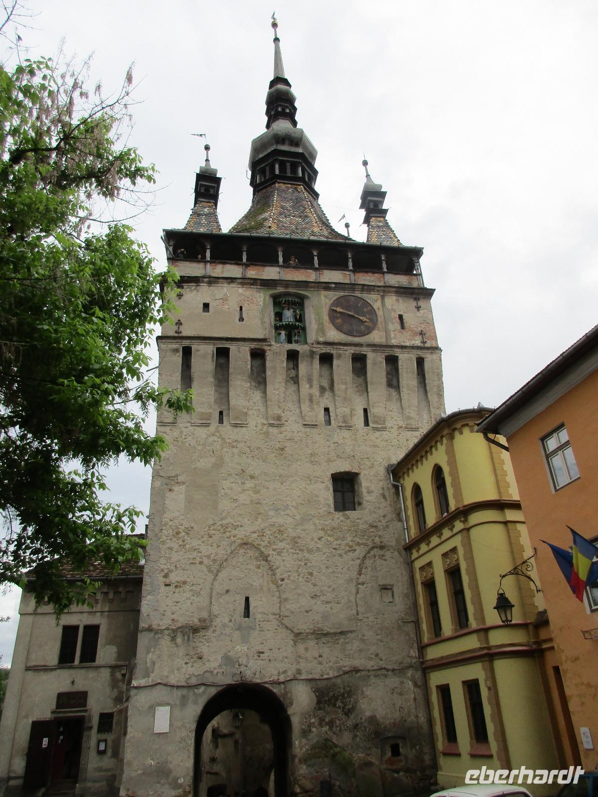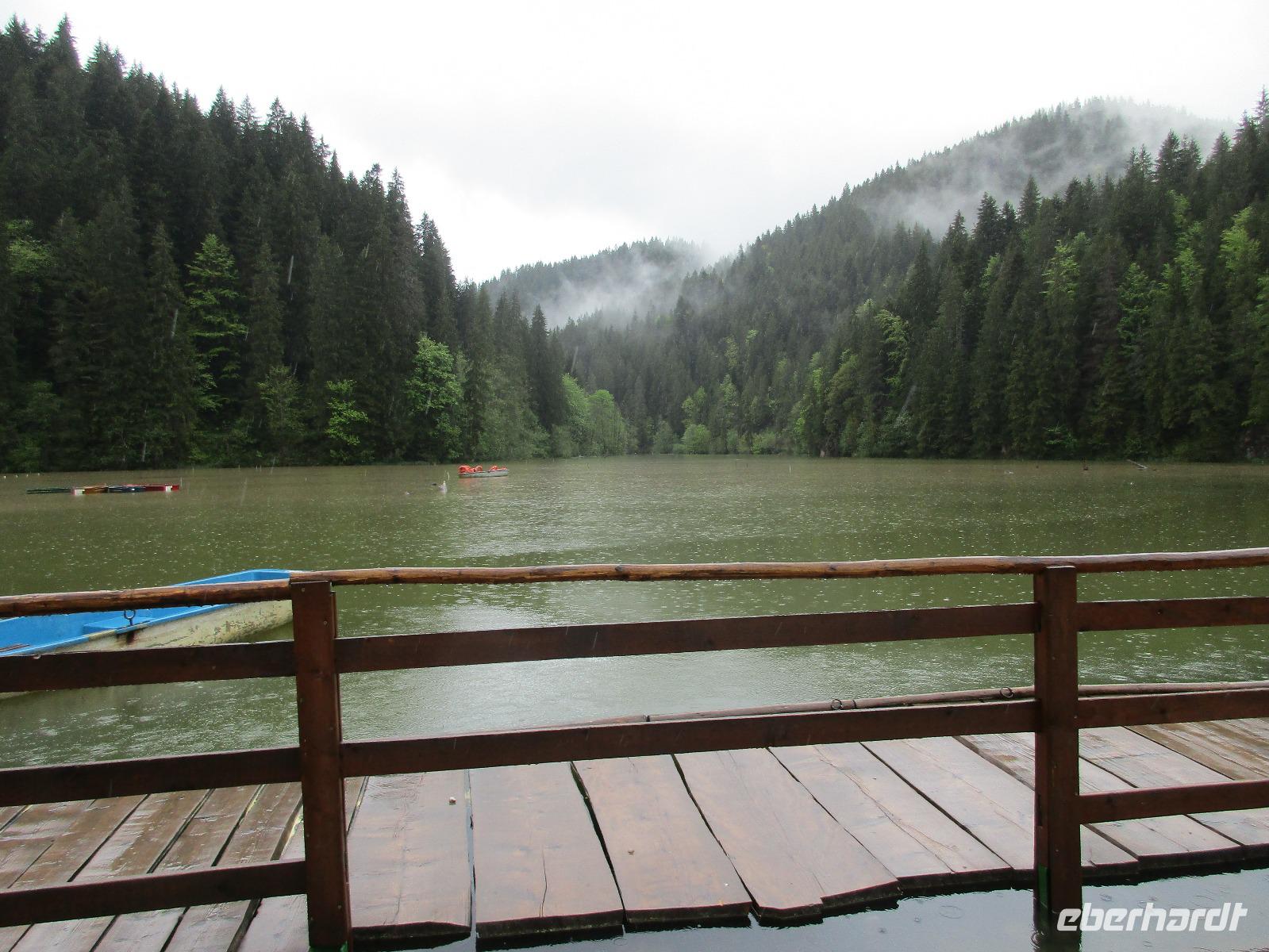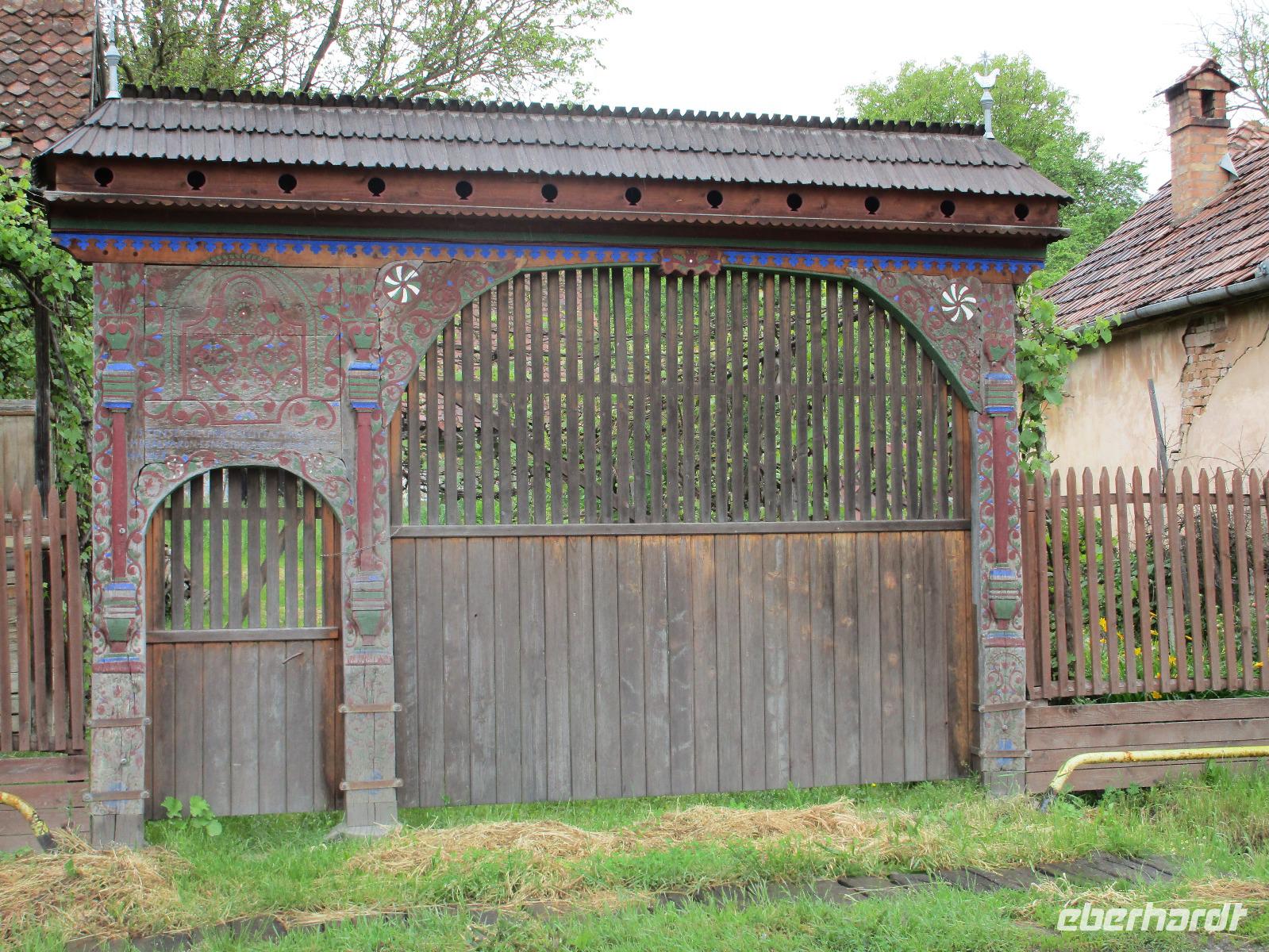 Ein weiterer Fahr-Tag liegt vor uns und wenn wir so in den Himmel schauen, ist es auch besser so, dass wir zunächst einmal im Bus sitzen werden. Einige Kilometer hinter Pietra Neamt öffnet sich langsam die Klamm der Bicaz vor uns. Aufgrund des Regens entscheiden Corina und ich uns dafür, hier leider nicht anzuhalten. Nico lenkt den Bus ruhig Kurve um Kurve durch die engen Straßen der Gebirgskette, die durch das Nass trotzdem irgendwie sehr grün wirkt. Damit wir aber nicht nur im Bus sitzen, halten wir schließlich am sogenannten Roten See, der zurzeit gar nicht rot ist. Wie legen hier am Ufer eine Pause ein, um den See, der dennoch romantisch wirkt, fotografieren zu können und um einige Andenken und Postkarten zu kaufen. Es geht weiter und Nico fährt uns durch das Seklerland, alte Siedlungen, die von den Ungarn geprägt sind. Besonders ihre herrlich, bunten Toren zu den Grundstücken beeindrucken uns und schließlich bekommen wir auch die Gelegenheit, eines dieser Tore zu fotografieren. Am zeitigen Nachmittag schließlich erreichen wir die Dracula-Stadt, Schäßburg und langsam wird auch das Wetter wieder besser. Nico lässt uns am Busparkplatz unterhalb der Burg aussteigen und gemeinsam besteigen wir den Hügel zum Burginneren. Hier eröffnet sich vor uns der Marktplatz der Stadt, um den sich herum eigentlich alles gliedert. Beim Rundgang um den Markt sehen wir das Wagner-Haus, das Sächsische Haus, eine Kirche, das neue Rathaus, natürlich eine Büste von Dracula, ein venezianisches Haus als auch das Geburtshaus von Dracula und den Stundturm. Wer kann und möchte, besteigt nun den doch etwas mühseligen Berg hoch hinauf zur Kirche (entweder über einen Pflasterweg oder mittels Stufen). Oben in der Kirche angekommen, erläutert uns ein Mitarbeiter des Ordens alle wichtigen Einzelheiten zur Kirche und deren Geschichte. Wir dürfen auch in die kleine Gruft hinab steigen. Bei der anschließenden Freizeit in Schäßburg nutzen einige die Möglichkeit, auf den Stundturm hinaufzusteigen und die wunderbare Aussicht von hier oben zu genießen. Aber auch im Geburtshaus von Dracula kommen wir auf unsere Kosten. Im zweiten Stock des Hauses in dunkler Ecke wartet im Sarg Dracula auf seine Gäste und erschreckt diese, auch wenn sie eigentlich erahnen, was gleich kommen wird;-). Nun geht auch dieser Tag zu Ende und wir fahren weiter nach Medias zu unserem Hotel mit dem komischen Namen „Binder Bubi".