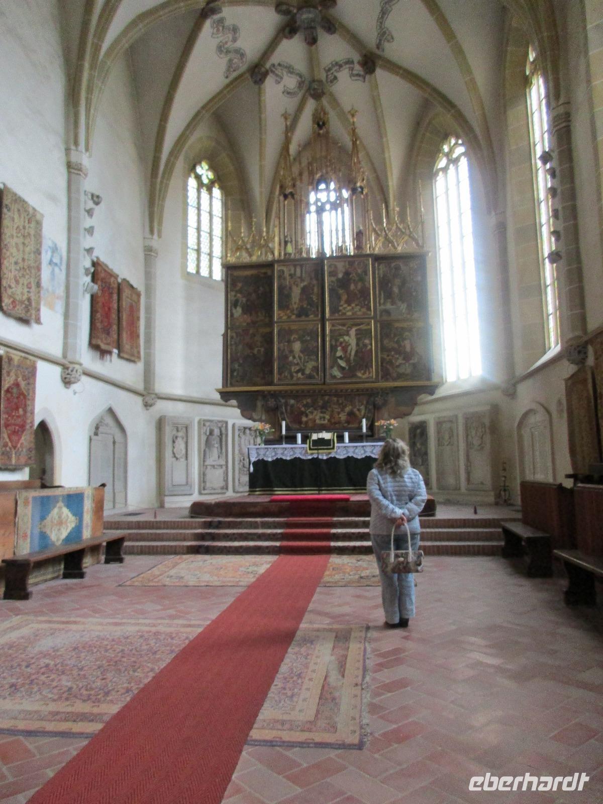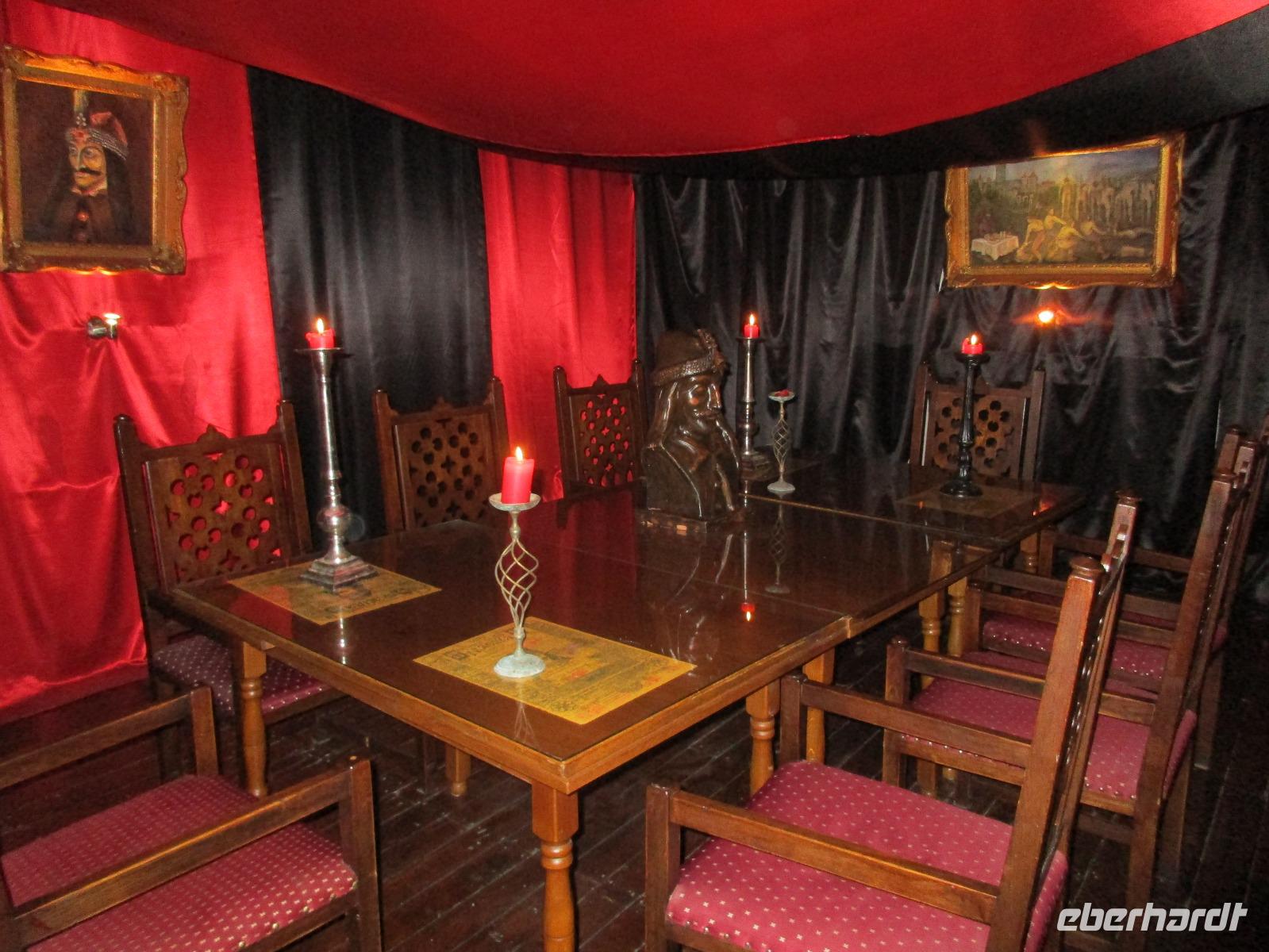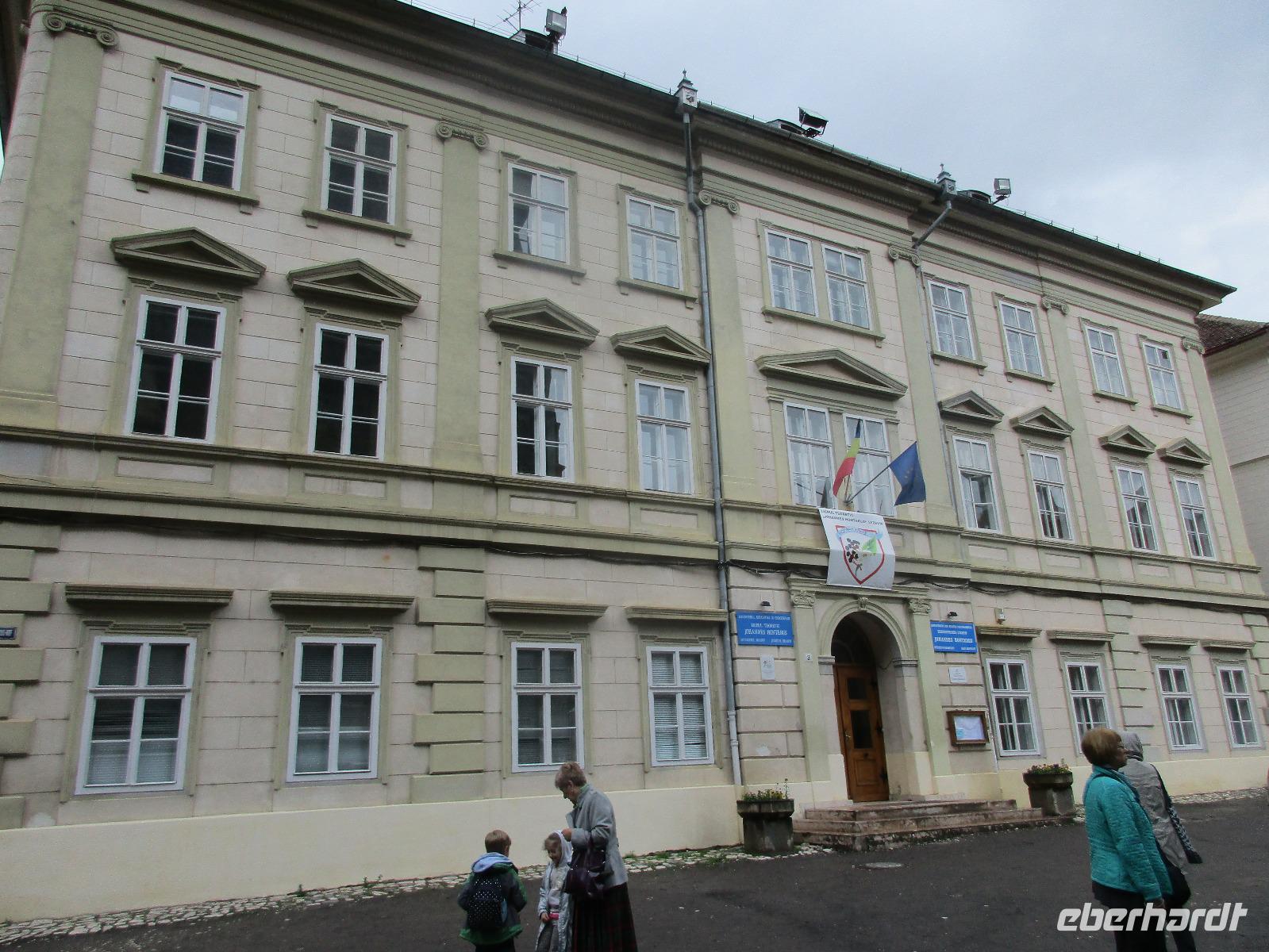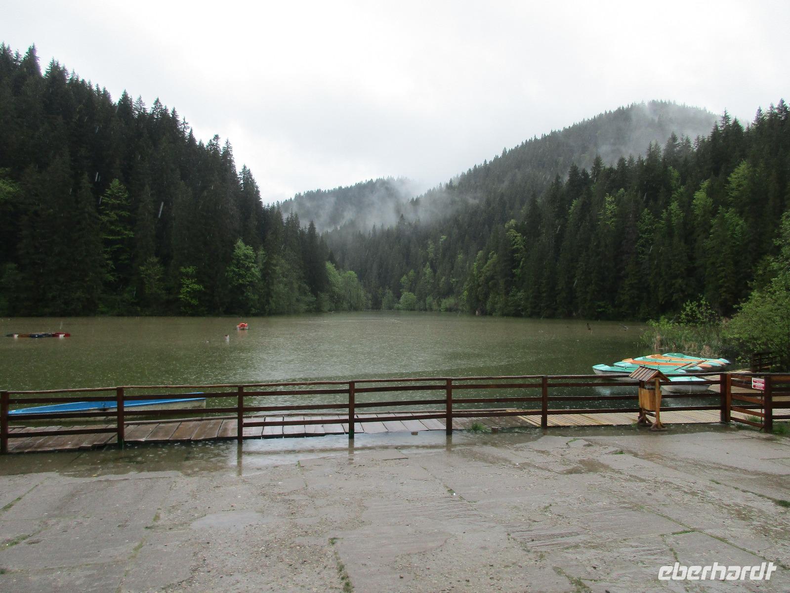 Ein weiterer Fahr-Tag liegt vor uns und wenn wir so in den Himmel schauen, ist es auch besser so, dass wir zunächst einmal im Bus sitzen werden. Einige Kilometer hinter Pietra Neamt öffnet sich langsam die Klamm der Bicaz vor uns. Aufgrund des Regens entscheiden Corina und ich uns dafür, hier leider nicht anzuhalten. Nico lenkt den Bus ruhig Kurve um Kurve durch die engen Straßen der Gebirgskette, die durch das Nass trotzdem irgendwie sehr grün wirkt. Damit wir aber nicht nur im Bus sitzen, halten wir schließlich am sogenannten Roten See, der zurzeit gar nicht rot ist. Wie legen hier am Ufer eine Pause ein, um den See, der dennoch romantisch wirkt, fotografieren zu können und um einige Andenken und Postkarten zu kaufen. Es geht weiter und Nico fährt uns durch das Seklerland, alte Siedlungen, die von den Ungarn geprägt sind. Besonders ihre herrlich, bunten Toren zu den Grundstücken beeindrucken uns und schließlich bekommen wir auch die Gelegenheit, eines dieser Tore zu fotografieren. Am zeitigen Nachmittag schließlich erreichen wir die Dracula-Stadt, Schäßburg und langsam wird auch das Wetter wieder besser. Nico lässt uns am Busparkplatz unterhalb der Burg aussteigen und gemeinsam besteigen wir den Hügel zum Burginneren. Hier eröffnet sich vor uns der Marktplatz der Stadt, um den sich herum eigentlich alles gliedert. Beim Rundgang um den Markt sehen wir das Wagner-Haus, das Sächsische Haus, eine Kirche, das neue Rathaus, natürlich eine Büste von Dracula, ein venezianisches Haus als auch das Geburtshaus von Dracula und den Stundturm. Wer kann und möchte, besteigt nun den doch etwas mühseligen Berg hoch hinauf zur Kirche (entweder über einen Pflasterweg oder mittels Stufen). Oben in der Kirche angekommen, erläutert uns ein Mitarbeiter des Ordens alle wichtigen Einzelheiten zur Kirche und deren Geschichte. Wir dürfen auch in die kleine Gruft hinab steigen. Bei der anschließenden Freizeit in Schäßburg nutzen einige die Möglichkeit, auf den Stundturm hinaufzusteigen und die wunderbare Aussicht von hier oben zu genießen. Aber auch im Geburtshaus von Dracula kommen wir auf unsere Kosten. Im zweiten Stock des Hauses in dunkler Ecke wartet im Sarg Dracula auf seine Gäste und erschreckt diese, auch wenn sie eigentlich erahnen, was gleich kommen wird;-). Nun geht auch dieser Tag zu Ende und wir fahren weiter nach Medias zu unserem Hotel mit dem komischen Namen „Binder Bubi".