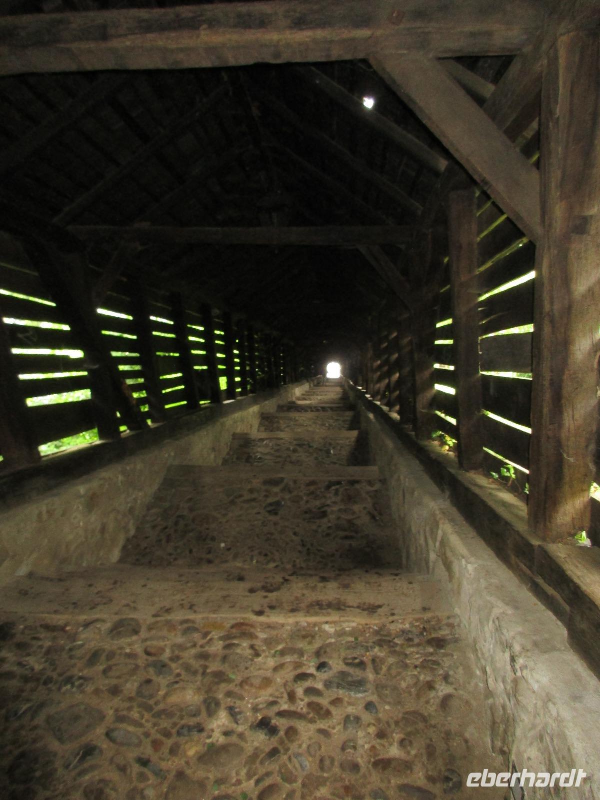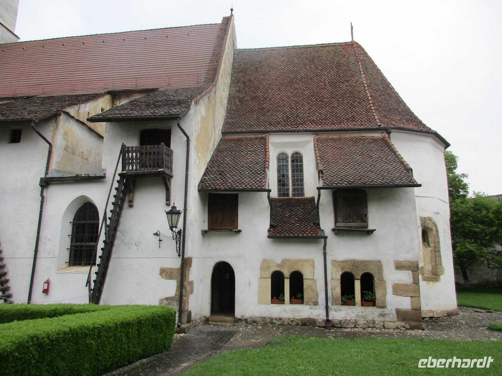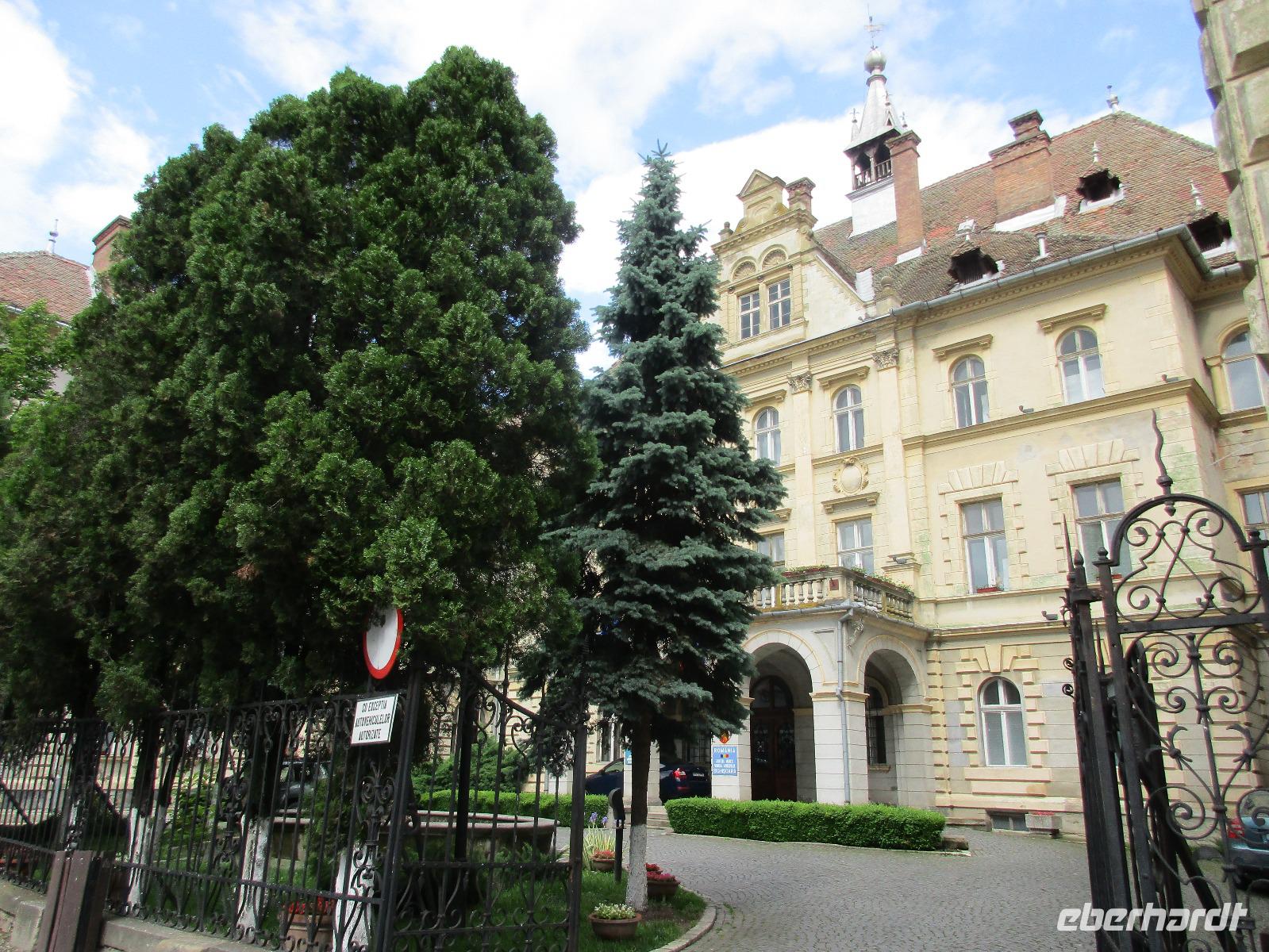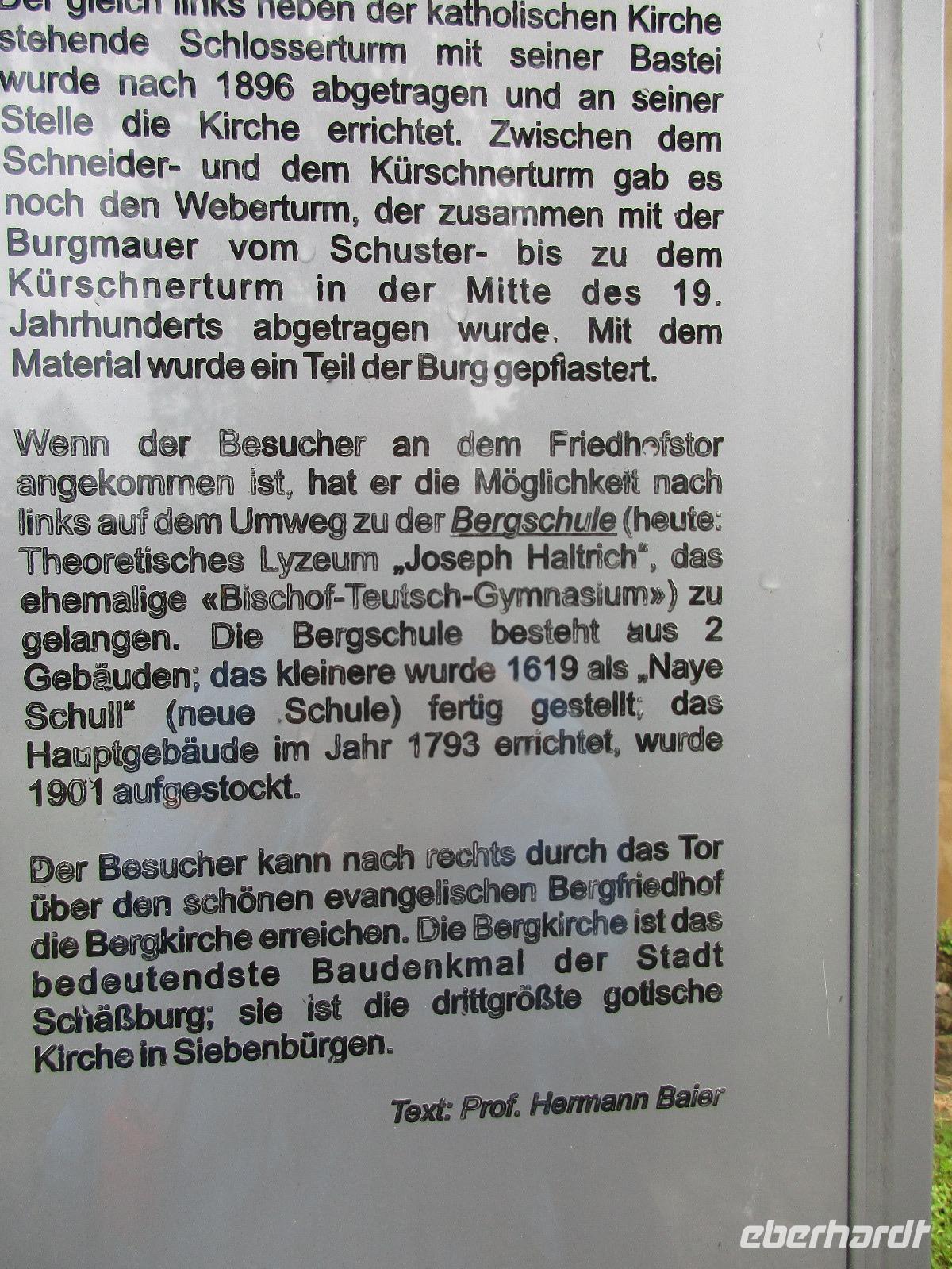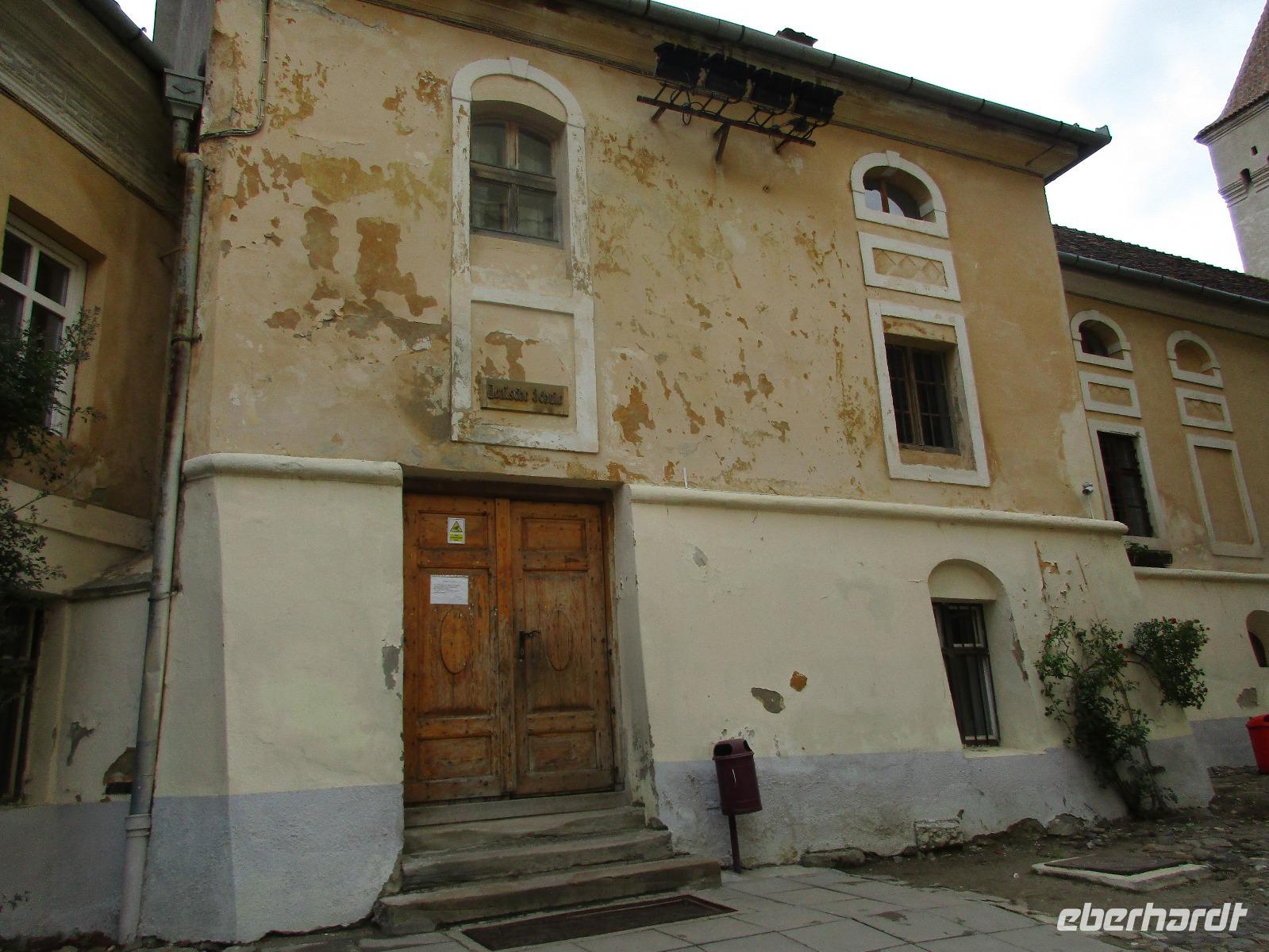 Ein weiterer Fahr-Tag liegt vor uns und wenn wir so in den Himmel schauen, ist es auch besser so, dass wir zunächst einmal im Bus sitzen werden. Einige Kilometer hinter Pietra Neamt öffnet sich langsam die Klamm der Bicaz vor uns. Aufgrund des Regens entscheiden Corina und ich uns dafür, hier leider nicht anzuhalten. Nico lenkt den Bus ruhig Kurve um Kurve durch die engen Straßen der Gebirgskette, die durch das Nass trotzdem irgendwie sehr grün wirkt. Damit wir aber nicht nur im Bus sitzen, halten wir schließlich am sogenannten Roten See, der zurzeit gar nicht rot ist. Wie legen hier am Ufer eine Pause ein, um den See, der dennoch romantisch wirkt, fotografieren zu können und um einige Andenken und Postkarten zu kaufen. Es geht weiter und Nico fährt uns durch das Seklerland, alte Siedlungen, die von den Ungarn geprägt sind. Besonders ihre herrlich, bunten Toren zu den Grundstücken beeindrucken uns und schließlich bekommen wir auch die Gelegenheit, eines dieser Tore zu fotografieren. Am zeitigen Nachmittag schließlich erreichen wir die Dracula-Stadt, Schäßburg und langsam wird auch das Wetter wieder besser. Nico lässt uns am Busparkplatz unterhalb der Burg aussteigen und gemeinsam besteigen wir den Hügel zum Burginneren. Hier eröffnet sich vor uns der Marktplatz der Stadt, um den sich herum eigentlich alles gliedert. Beim Rundgang um den Markt sehen wir das Wagner-Haus, das Sächsische Haus, eine Kirche, das neue Rathaus, natürlich eine Büste von Dracula, ein venezianisches Haus als auch das Geburtshaus von Dracula und den Stundturm. Wer kann und möchte, besteigt nun den doch etwas mühseligen Berg hoch hinauf zur Kirche (entweder über einen Pflasterweg oder mittels Stufen). Oben in der Kirche angekommen, erläutert uns ein Mitarbeiter des Ordens alle wichtigen Einzelheiten zur Kirche und deren Geschichte. Wir dürfen auch in die kleine Gruft hinab steigen. Bei der anschließenden Freizeit in Schäßburg nutzen einige die Möglichkeit, auf den Stundturm hinaufzusteigen und die wunderbare Aussicht von hier oben zu genießen. Aber auch im Geburtshaus von Dracula kommen wir auf unsere Kosten. Im zweiten Stock des Hauses in dunkler Ecke wartet im Sarg Dracula auf seine Gäste und erschreckt diese, auch wenn sie eigentlich erahnen, was gleich kommen wird;-). Nun geht auch dieser Tag zu Ende und wir fahren weiter nach Medias zu unserem Hotel mit dem komischen Namen „Binder Bubi".