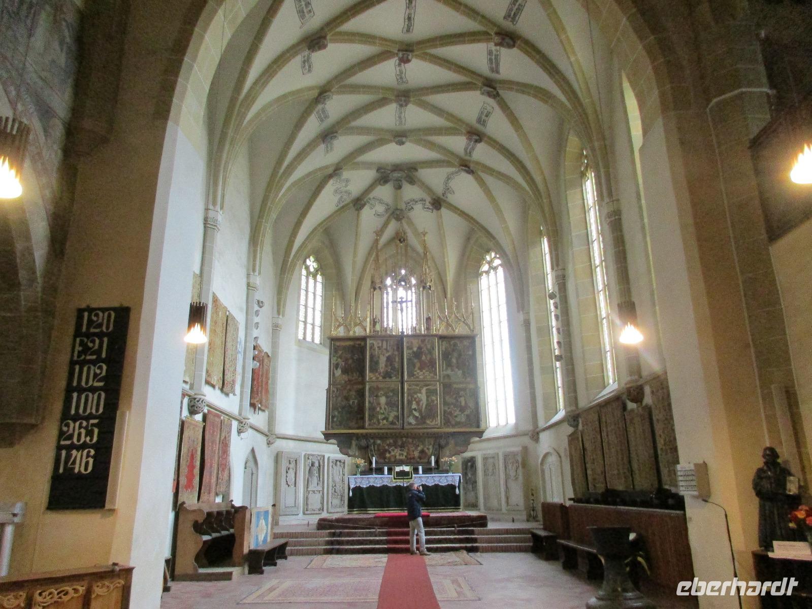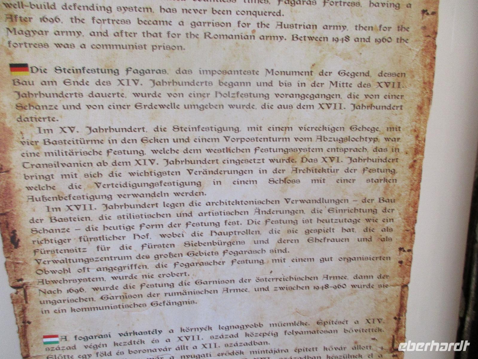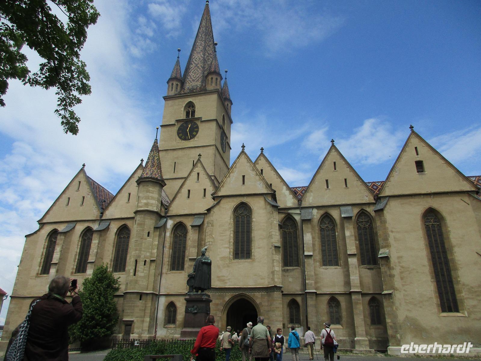 Am heutigen Morgen statten wir Medias einen kurzen Besuch ab. Dank den guten Beziehungen unserer Reiseleiterin Corina öffnet die Margarethenkirche schon vor 10 Uhr für uns. Diese befindet sich neben dem Gymnasium namens Steffen Roth desse Büste auch im davor liegenden Park zu sehen ist. Die Margarethenkirche ist von einer Mauer umgeben, in dessem Innenbereich sich auch das Geburtshaus von Steffen Roth befindet. Der nette sächsiche Kollege, der uns die Kirche aufgeschlossen hat, erklärt uns alle interessanten Einzelheiten in und zu der Kirche und möchte uns auch ein wenig sächsich beibringen - wie wir feststellen, ist eine Kommunikation in seinem und unserem sächsisch kaum möglich. Danach geht es weiter nach Sibiu, oder besser bekannt unter dem Namen Hermannstadt. Zunächst einmal unternehmen wir einen Rundgang durch diese wunderschöne sowie helle Stadt und bestaunen dabei die Wehrmauer, das Konzerthaus, die belebte Einkaufsstraße, die russich-orthodoxe Kathedrale, in der gerade eine Taufe statt fndet, als auch die evangelische Kirche. In dieser hält uns ein Kirchenmitarbeiter einen eindrucksvollen Vortrag. Ich hoffe, er hat während der dreißig minütigen Rede wenigstens fünf Mal Luft geholt. Nachdem wir die Grabplatte von Draculas Sohn angeschaut haben, geht es zur Lügenbrücke und dann zurück zum großen Markplatz. Von hier aus haben wir nun Freizeit, die wir dazu nutzen, um uns zum Mittag zu stärken oder sich das ein oder andere nochmals intensiver anzuschauen. Unser weiterer Weg führt uns weiter in Richtung Poiana Brasov. Unterwegs möchten Corina und ich unseren Gästen einen Gefallen tun und ihnen die Bauernburg von Fagaras zeigen. Jedoch hat diese bereits eine Stunde vor der offiziellen Schließung einfach zu gemacht und der Polizist, der vor der Burg wacht, hat heute nicht seinen besten Dank. Mit grimmiger Miene läßt er uns zwar drei Schritte in das Burgareal hinein, passt aber haargenau auf, dass wir keinen Schritt zu weit gehen und dass wir schnellstmöglich wieder kehren. Also bei ihm ist die Devise "Gastfreundschaft" leider noch nicht angekommen. Am Abend erreichen wir unser Hotel Piatra Mare im Luftkurort Poiana Brasov, oberhalb von Brasov gelegen.