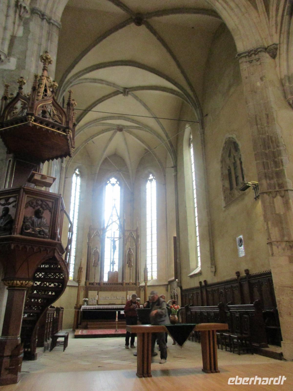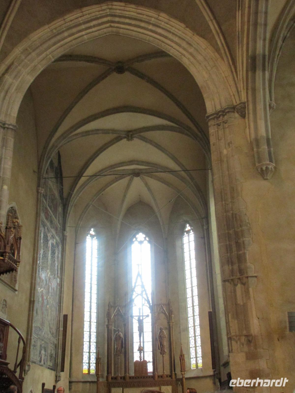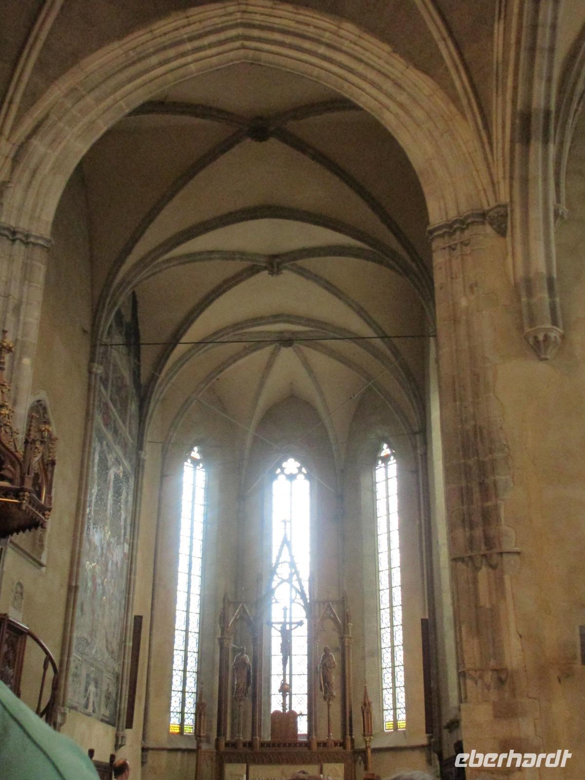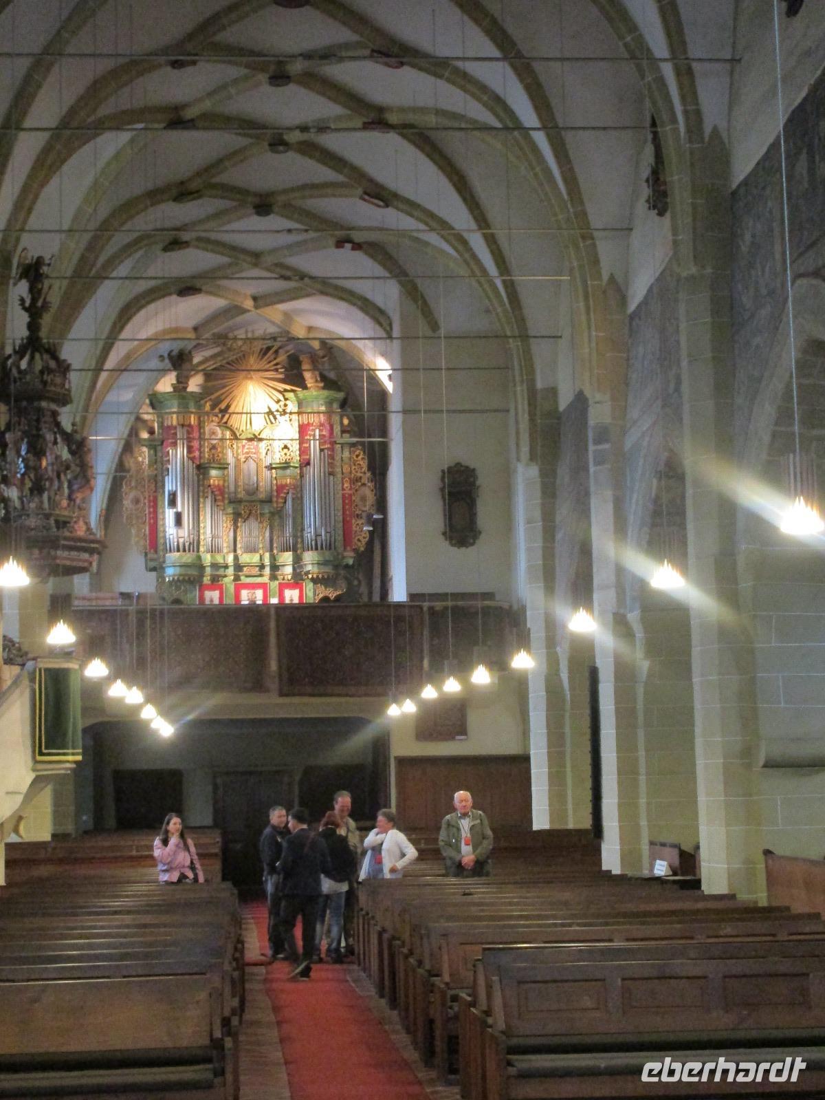 Am heutigen Morgen statten wir Medias einen kurzen Besuch ab. Dank den guten Beziehungen unserer Reiseleiterin Corina öffnet die Margarethenkirche schon vor 10 Uhr für uns. Diese befindet sich neben dem Gymnasium namens Steffen Roth desse Büste auch im davor liegenden Park zu sehen ist. Die Margarethenkirche ist von einer Mauer umgeben, in dessem Innenbereich sich auch das Geburtshaus von Steffen Roth befindet. Der nette sächsiche Kollege, der uns die Kirche aufgeschlossen hat, erklärt uns alle interessanten Einzelheiten in und zu der Kirche und möchte uns auch ein wenig sächsich beibringen - wie wir feststellen, ist eine Kommunikation in seinem und unserem sächsisch kaum möglich. Danach geht es weiter nach Sibiu, oder besser bekannt unter dem Namen Hermannstadt. Zunächst einmal unternehmen wir einen Rundgang durch diese wunderschöne sowie helle Stadt und bestaunen dabei die Wehrmauer, das Konzerthaus, die belebte Einkaufsstraße, die russich-orthodoxe Kathedrale, in der gerade eine Taufe statt fndet, als auch die evangelische Kirche. In dieser hält uns ein Kirchenmitarbeiter einen eindrucksvollen Vortrag. Ich hoffe, er hat während der dreißig minütigen Rede wenigstens fünf Mal Luft geholt. Nachdem wir die Grabplatte von Draculas Sohn angeschaut haben, geht es zur Lügenbrücke und dann zurück zum großen Markplatz. Von hier aus haben wir nun Freizeit, die wir dazu nutzen, um uns zum Mittag zu stärken oder sich das ein oder andere nochmals intensiver anzuschauen. Unser weiterer Weg führt uns weiter in Richtung Poiana Brasov. Unterwegs möchten Corina und ich unseren Gästen einen Gefallen tun und ihnen die Bauernburg von Fagaras zeigen. Jedoch hat diese bereits eine Stunde vor der offiziellen Schließung einfach zu gemacht und der Polizist, der vor der Burg wacht, hat heute nicht seinen besten Dank. Mit grimmiger Miene läßt er uns zwar drei Schritte in das Burgareal hinein, passt aber haargenau auf, dass wir keinen Schritt zu weit gehen und dass wir schnellstmöglich wieder kehren. Also bei ihm ist die Devise "Gastfreundschaft" leider noch nicht angekommen. Am Abend erreichen wir unser Hotel Piatra Mare im Luftkurort Poiana Brasov, oberhalb von Brasov gelegen.