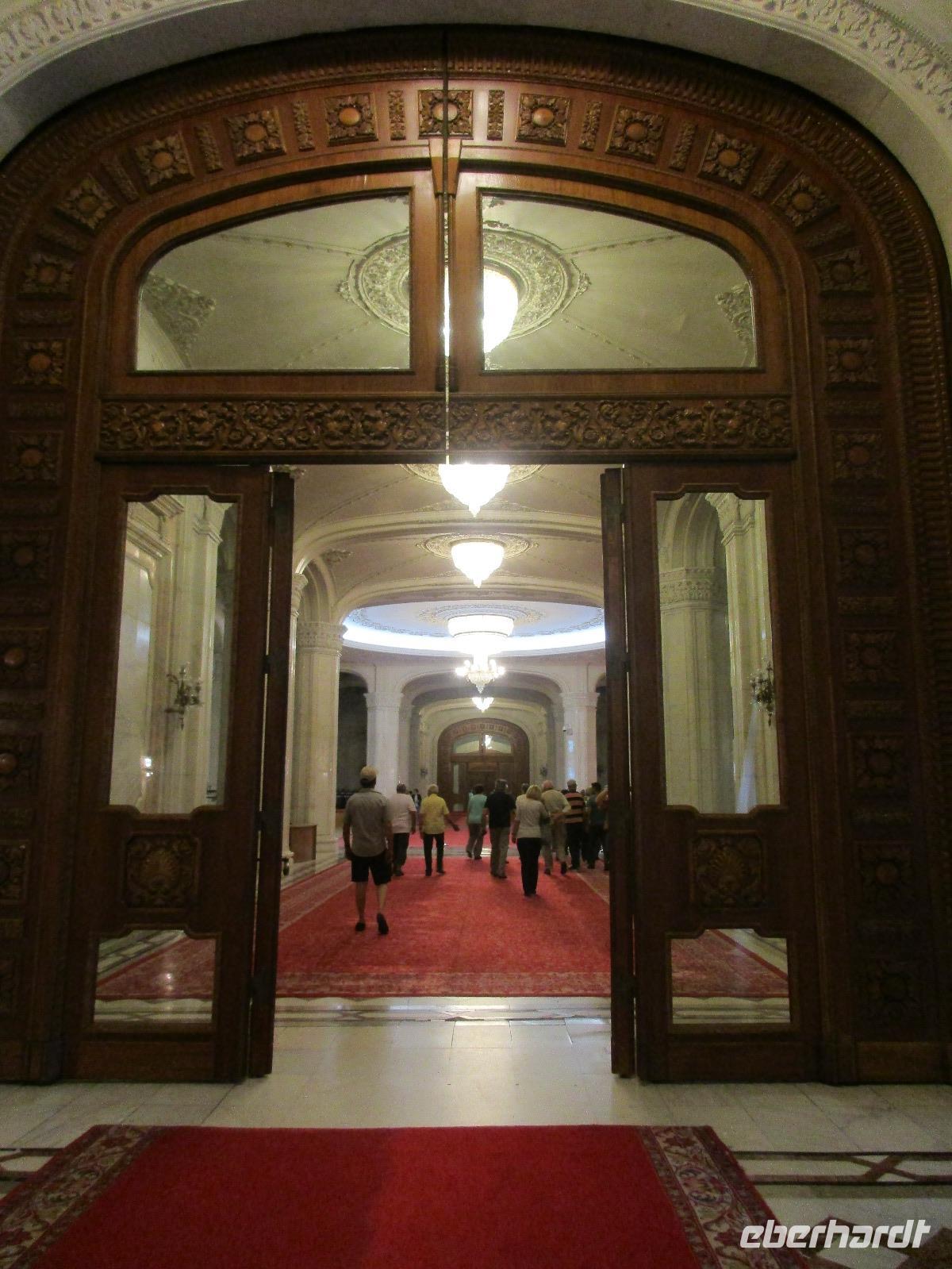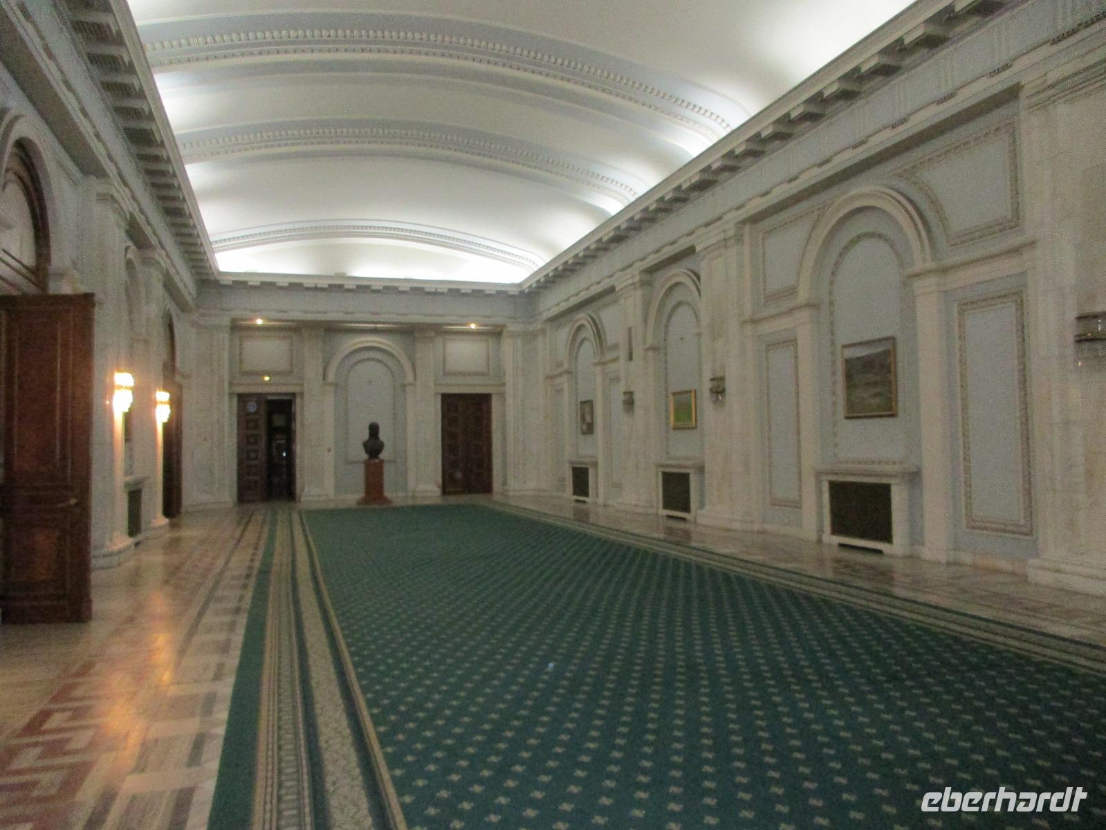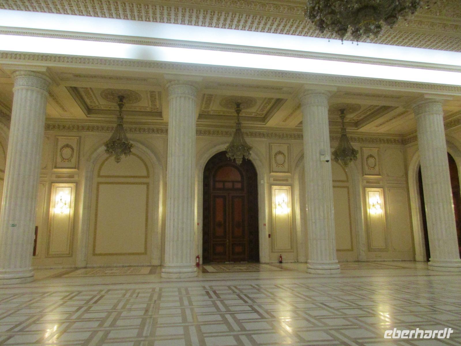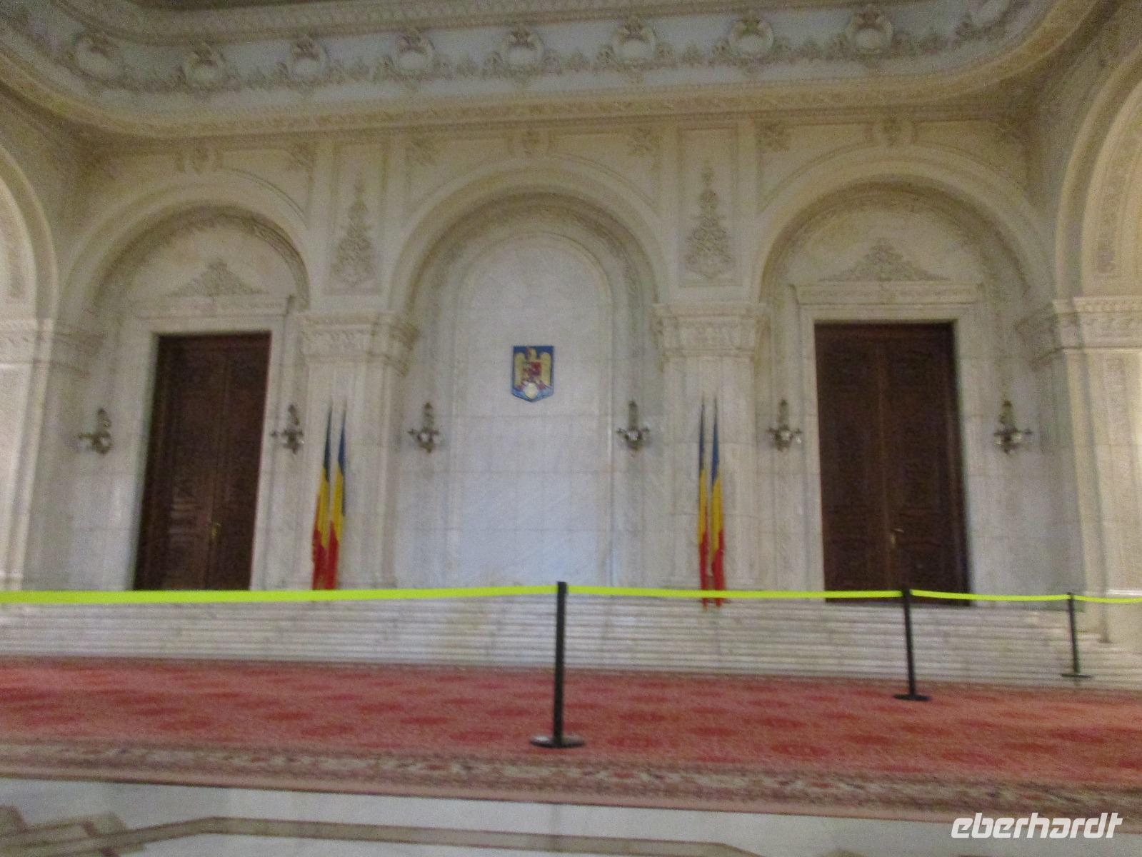 Der letzte Tag in Rumänien ist angebrochen. Nach dem Frühstück verabschiede mich von den ersten Gästen, die mit eigener Anreise angekommen sind und wegen ihrer Flugzeit eher am Tag zurück nach Hause fliegen. Wir verladen die Koffer und setzen mit der Stadtrundfahrt fort, die wir eine Woche zuvor begonnen hatten. Nochmals durch das Botschafterviertel fahren wir nun entlang der Siegerstra mit vielen namentlichen Hotelketten zum Revolutionsplatz der Stadt. Hier steigen wir aus und Corina erklärt uns die vielen Gebäude und Denkmäler, die hier ihren Platz gefunden haben. Danach haben wir noch ein wenig Zeit, um hier zu fotografieren. Danach geht es vorbei an einem militärischen Komplex hin zur staatlichen Institution, dem rumänischem Parlament. Auch wenn wir hier für 11 Uhr angemeldet sind und wir schon vor der Zeit da sind, heißt es leider warten. Mehrfach werde ich von den Mitarbeitern hier darauf hingewiesen, dass das Parlament kein Museum sondern eine Institution ist, die ihre eigenen Regeln hat, der wir uns unterordnen müssen. Jawohl, Sir;-). Als wir dann endlich dran sind, geben wir unsere Personaldokumente ab und werden wie am Flughafen durchleuchtet. Dann endlich gehen wir die imposanten Treppen hinauf und rund um jedes neue Ecke sind wir erstaunt und teilweise erschlagen von den riesigen Hallen und Sälen mit riesigen Gemälden an der Wand, großen Freitreppen, einen eigenen Musiksaal und und und. Kaum zu glauben, dass dieses riesige Gebäude, das zweitgrößte administrative Gebäude der Welt in relativ kurzer Zeit errichtet wurde. 11 Stockwerke hoch und drei Stockwerke unterhalb der Erde mit eigener Rennanlage ist doch schon mehr als imposant und deutet wahrlich auf den Größenwahn des ehemaligen Diktators Ceausescu hin. Man kann jedoch von Glück sprechen, dass die rumänische Bevölkerung dieses Bauwerk in der Wendezeit nicht zerstört hat, denn auf irgendeine Art und Weise ist es dennoch faszinierend. Nach rund einer Stunde Führung, bei der wir unserem Guide natürlich auch Fragen stellen können, verlassen wir das Gebäude und haben nun die Mittagspause an einem Park. Von hier aus kann man auch durch ein modernes Einkaufszentrum schlendern oder in die gegenüberliegende Altstadt spazieren. Letzter Punkt auf unserem Programm ist der Besuch der Patriachenkirche in Bukarest, die wir auch von Innen besichtigen. Auch diese Kirche besticht durch schöne Verzierungen und einem wundervollen Vorplatz. Nun heißt es Abschied nehmen, Abschied nehmen von Corina, Nico und Rumänien. Nachdem die beiden uns am Flughafen verabschiedet haben, beginnt unsere Heimreise nach Deutschland, die doch mit etwas Schwierigkeiten verbunden ist aufgrund der Gewitterlage am Frankfurter Flughafen. Trotz einiger Umstellungen kommen alle Gäste bis nach Dresden und Leipzig zurück und fahren anschließend nach Hause.