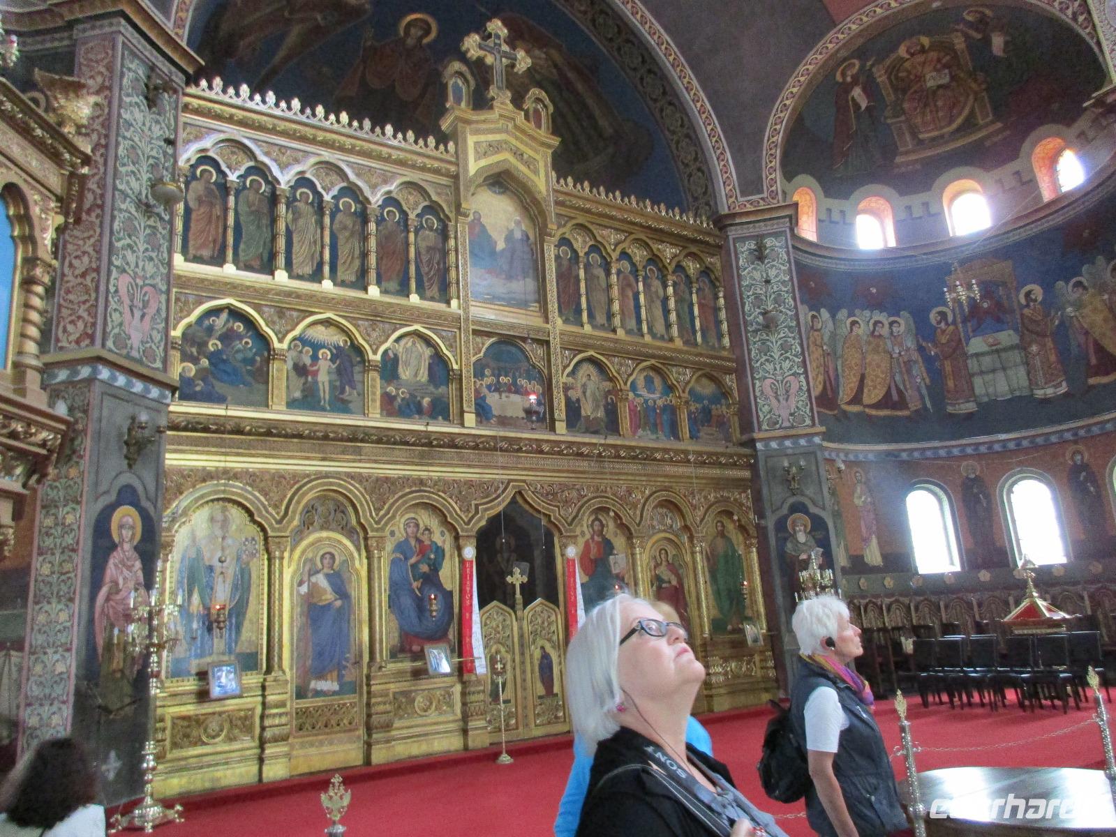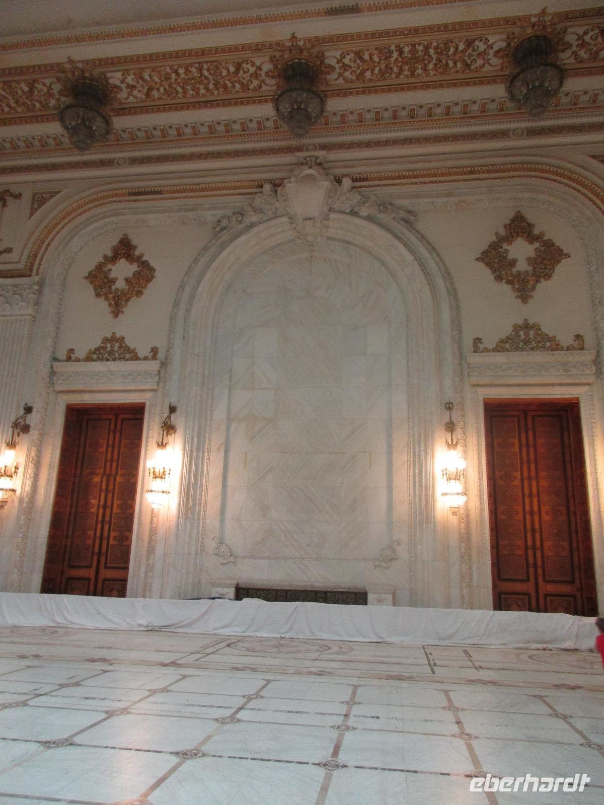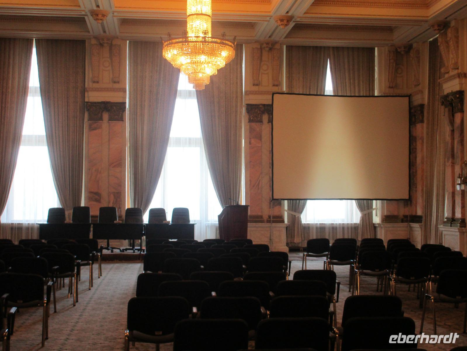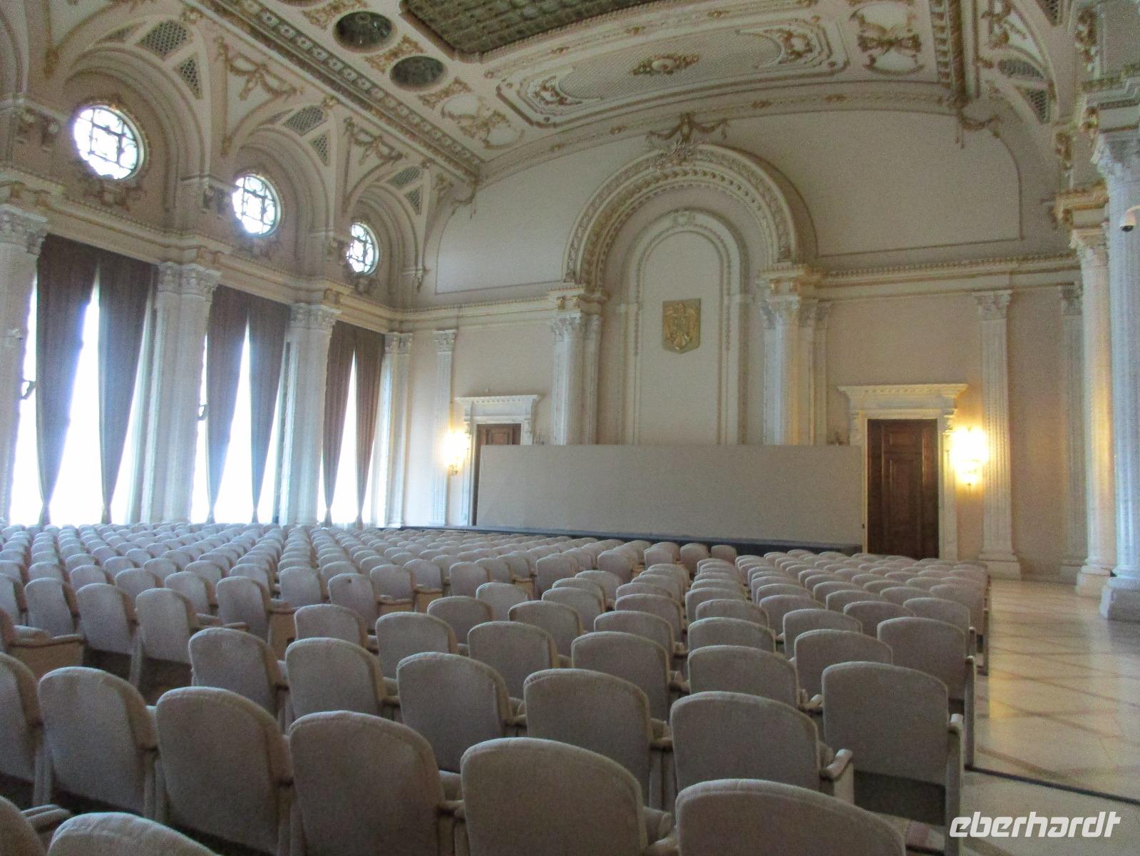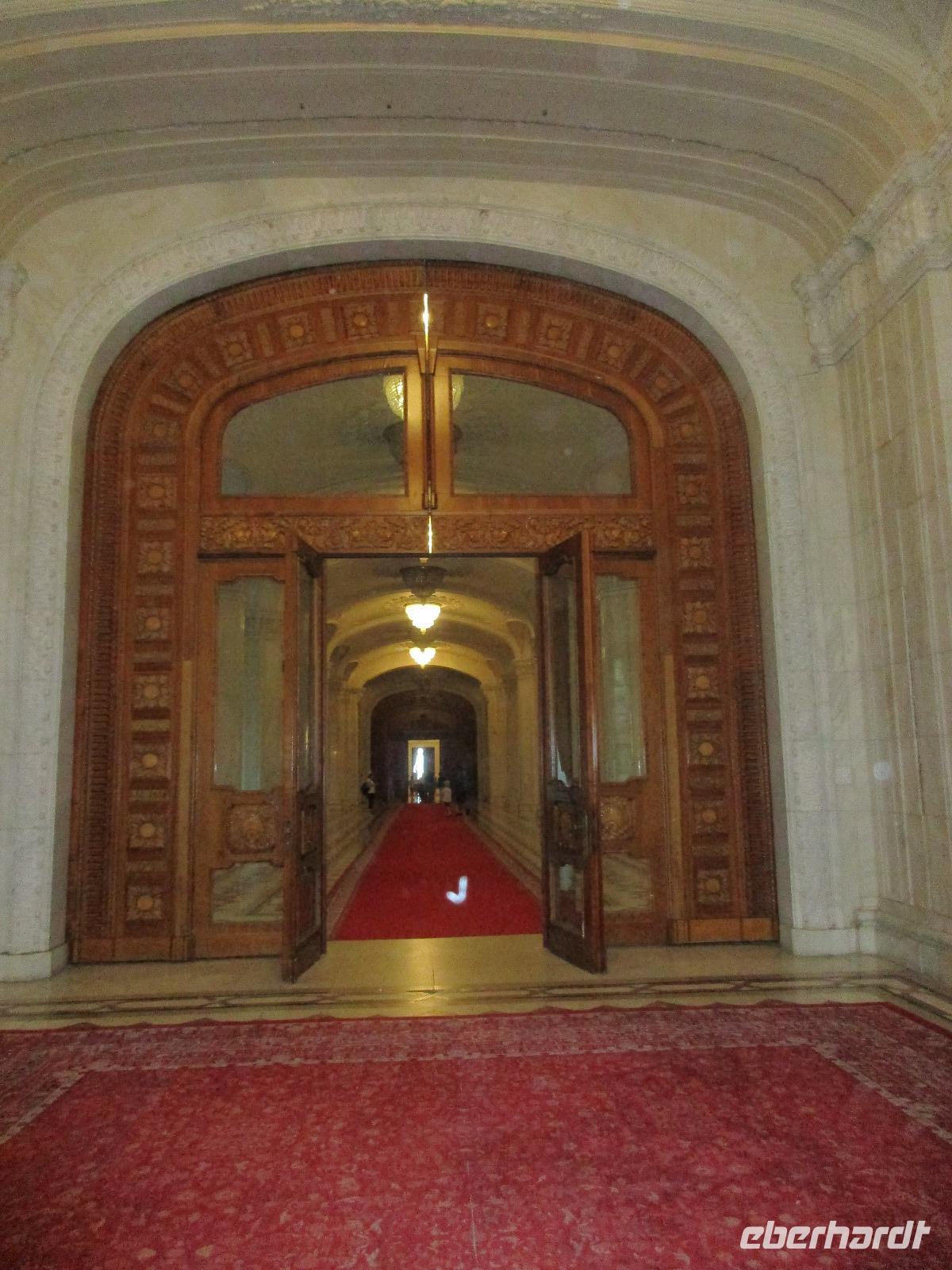 Der letzte Tag in Rumänien ist angebrochen. Nach dem Frühstück verabschiede mich von den ersten Gästen, die mit eigener Anreise angekommen sind und wegen ihrer Flugzeit eher am Tag zurück nach Hause fliegen. Wir verladen die Koffer und setzen mit der Stadtrundfahrt fort, die wir eine Woche zuvor begonnen hatten. Nochmals durch das Botschafterviertel fahren wir nun entlang der Siegerstra mit vielen namentlichen Hotelketten zum Revolutionsplatz der Stadt. Hier steigen wir aus und Corina erklärt uns die vielen Gebäude und Denkmäler, die hier ihren Platz gefunden haben. Danach haben wir noch ein wenig Zeit, um hier zu fotografieren. Danach geht es vorbei an einem militärischen Komplex hin zur staatlichen Institution, dem rumänischem Parlament. Auch wenn wir hier für 11 Uhr angemeldet sind und wir schon vor der Zeit da sind, heißt es leider warten. Mehrfach werde ich von den Mitarbeitern hier darauf hingewiesen, dass das Parlament kein Museum sondern eine Institution ist, die ihre eigenen Regeln hat, der wir uns unterordnen müssen. Jawohl, Sir;-). Als wir dann endlich dran sind, geben wir unsere Personaldokumente ab und werden wie am Flughafen durchleuchtet. Dann endlich gehen wir die imposanten Treppen hinauf und rund um jedes neue Ecke sind wir erstaunt und teilweise erschlagen von den riesigen Hallen und Sälen mit riesigen Gemälden an der Wand, großen Freitreppen, einen eigenen Musiksaal und und und. Kaum zu glauben, dass dieses riesige Gebäude, das zweitgrößte administrative Gebäude der Welt in relativ kurzer Zeit errichtet wurde. 11 Stockwerke hoch und drei Stockwerke unterhalb der Erde mit eigener Rennanlage ist doch schon mehr als imposant und deutet wahrlich auf den Größenwahn des ehemaligen Diktators Ceausescu hin. Man kann jedoch von Glück sprechen, dass die rumänische Bevölkerung dieses Bauwerk in der Wendezeit nicht zerstört hat, denn auf irgendeine Art und Weise ist es dennoch faszinierend. Nach rund einer Stunde Führung, bei der wir unserem Guide natürlich auch Fragen stellen können, verlassen wir das Gebäude und haben nun die Mittagspause an einem Park. Von hier aus kann man auch durch ein modernes Einkaufszentrum schlendern oder in die gegenüberliegende Altstadt spazieren. Letzter Punkt auf unserem Programm ist der Besuch der Patriachenkirche in Bukarest, die wir auch von Innen besichtigen. Auch diese Kirche besticht durch schöne Verzierungen und einem wundervollen Vorplatz. Nun heißt es Abschied nehmen, Abschied nehmen von Corina, Nico und Rumänien. Nachdem die beiden uns am Flughafen verabschiedet haben, beginnt unsere Heimreise nach Deutschland, die doch mit etwas Schwierigkeiten verbunden ist aufgrund der Gewitterlage am Frankfurter Flughafen. Trotz einiger Umstellungen kommen alle Gäste bis nach Dresden und Leipzig zurück und fahren anschließend nach Hause.