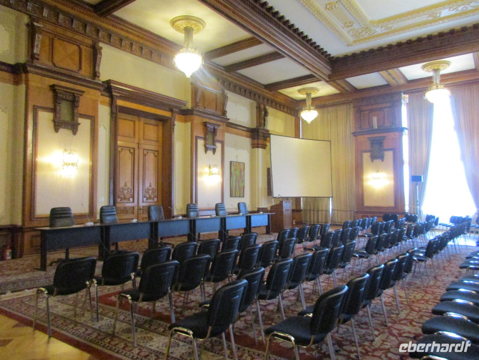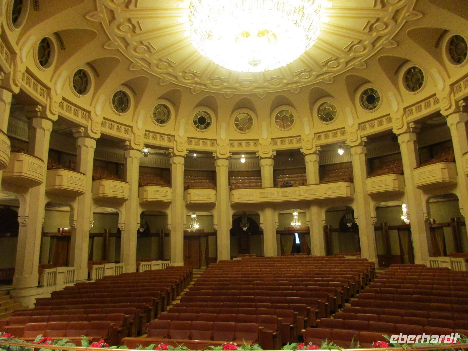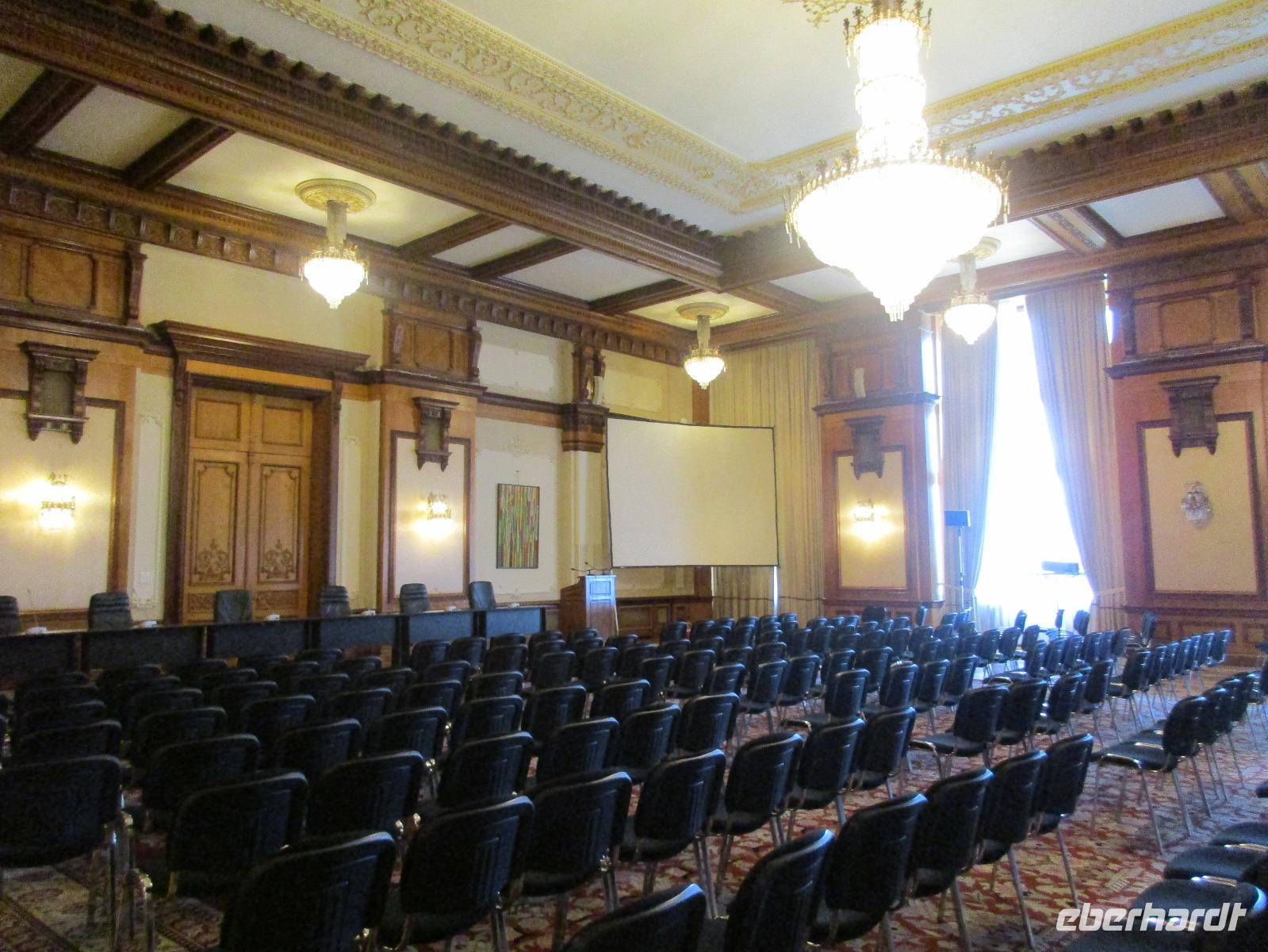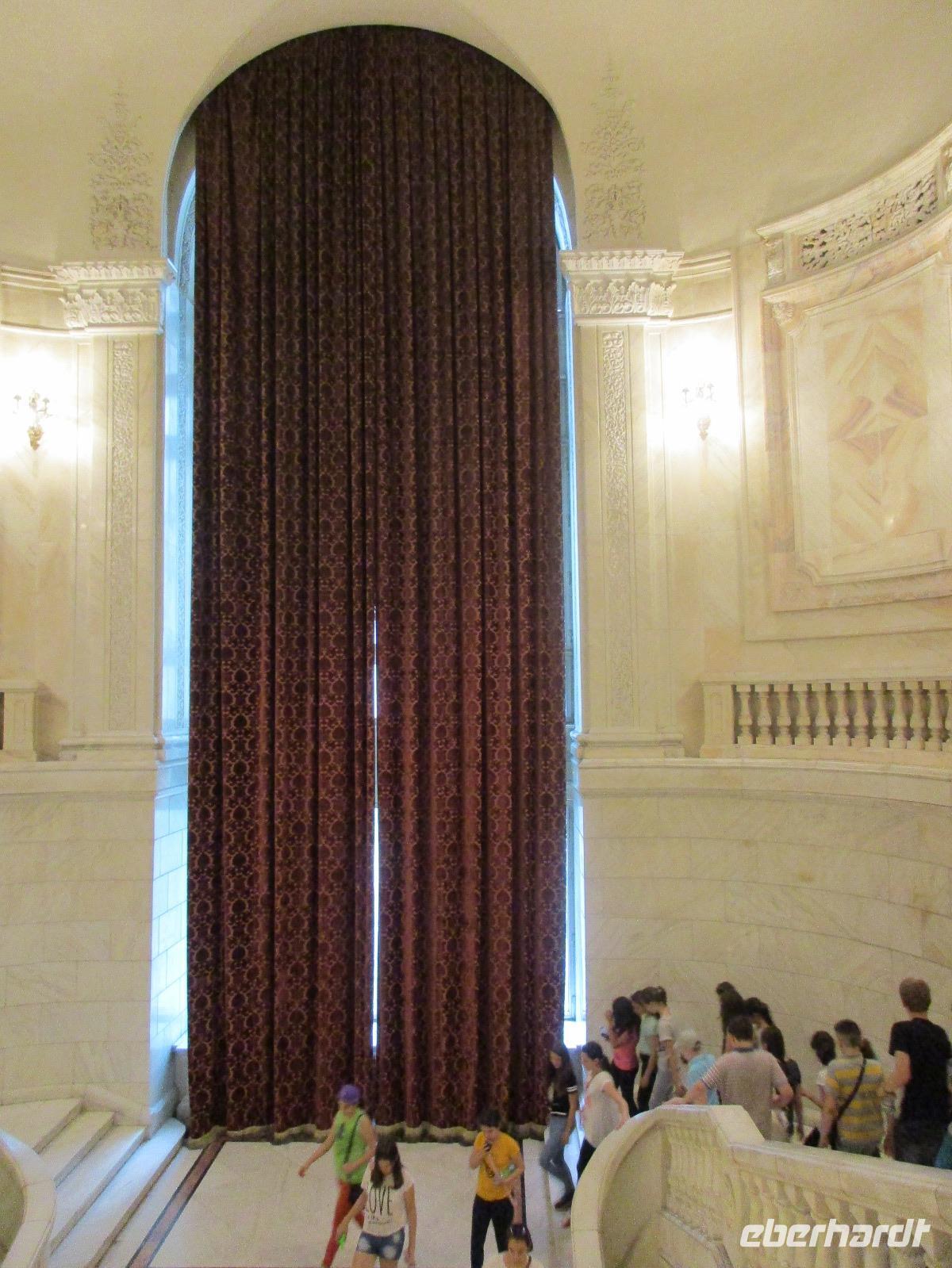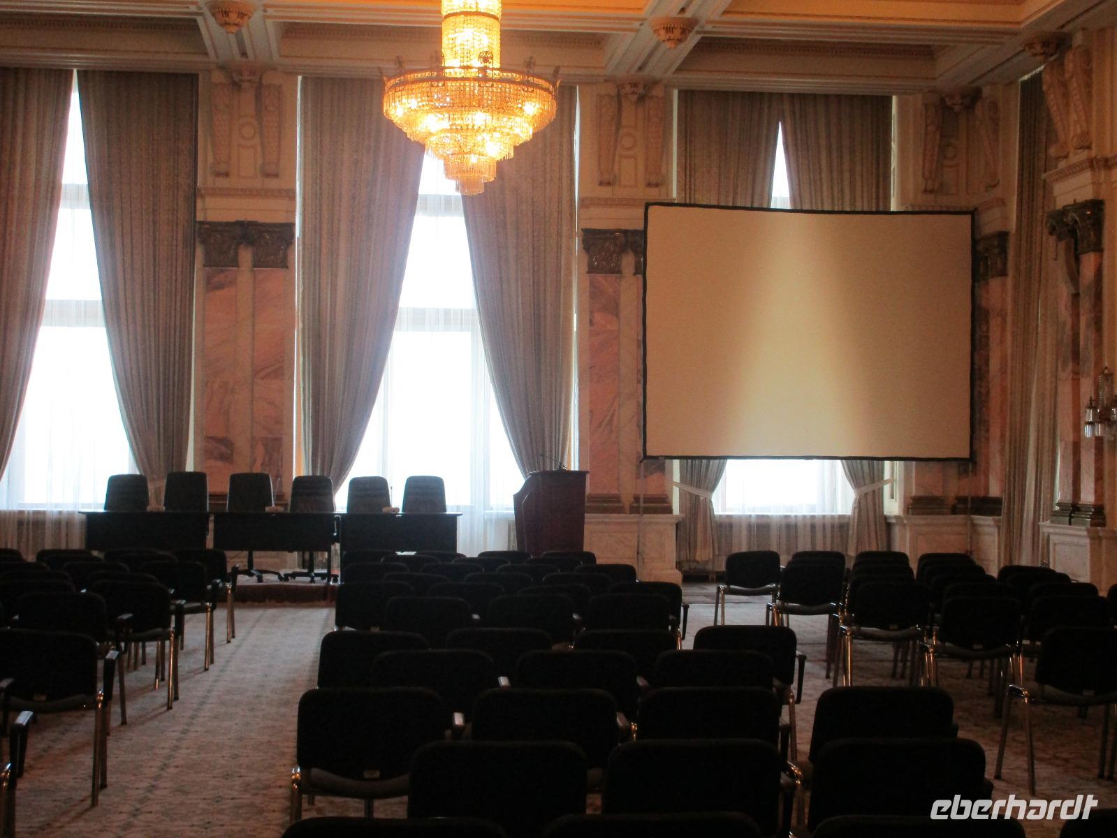 Der letzte Tag in Rumänien ist angebrochen. Nach dem Frühstück verabschiede mich von den ersten Gästen, die mit eigener Anreise angekommen sind und wegen ihrer Flugzeit eher am Tag zurück nach Hause fliegen. Wir verladen die Koffer und setzen mit der Stadtrundfahrt fort, die wir eine Woche zuvor begonnen hatten. Nochmals durch das Botschafterviertel fahren wir nun entlang der Siegerstra mit vielen namentlichen Hotelketten zum Revolutionsplatz der Stadt. Hier steigen wir aus und Corina erklärt uns die vielen Gebäude und Denkmäler, die hier ihren Platz gefunden haben. Danach haben wir noch ein wenig Zeit, um hier zu fotografieren. Danach geht es vorbei an einem militärischen Komplex hin zur staatlichen Institution, dem rumänischem Parlament. Auch wenn wir hier für 11 Uhr angemeldet sind und wir schon vor der Zeit da sind, heißt es leider warten. Mehrfach werde ich von den Mitarbeitern hier darauf hingewiesen, dass das Parlament kein Museum sondern eine Institution ist, die ihre eigenen Regeln hat, der wir uns unterordnen müssen. Jawohl, Sir;-). Als wir dann endlich dran sind, geben wir unsere Personaldokumente ab und werden wie am Flughafen durchleuchtet. Dann endlich gehen wir die imposanten Treppen hinauf und rund um jedes neue Ecke sind wir erstaunt und teilweise erschlagen von den riesigen Hallen und Sälen mit riesigen Gemälden an der Wand, großen Freitreppen, einen eigenen Musiksaal und und und. Kaum zu glauben, dass dieses riesige Gebäude, das zweitgrößte administrative Gebäude der Welt in relativ kurzer Zeit errichtet wurde. 11 Stockwerke hoch und drei Stockwerke unterhalb der Erde mit eigener Rennanlage ist doch schon mehr als imposant und deutet wahrlich auf den Größenwahn des ehemaligen Diktators Ceausescu hin. Man kann jedoch von Glück sprechen, dass die rumänische Bevölkerung dieses Bauwerk in der Wendezeit nicht zerstört hat, denn auf irgendeine Art und Weise ist es dennoch faszinierend. Nach rund einer Stunde Führung, bei der wir unserem Guide natürlich auch Fragen stellen können, verlassen wir das Gebäude und haben nun die Mittagspause an einem Park. Von hier aus kann man auch durch ein modernes Einkaufszentrum schlendern oder in die gegenüberliegende Altstadt spazieren. Letzter Punkt auf unserem Programm ist der Besuch der Patriachenkirche in Bukarest, die wir auch von Innen besichtigen. Auch diese Kirche besticht durch schöne Verzierungen und einem wundervollen Vorplatz. Nun heißt es Abschied nehmen, Abschied nehmen von Corina, Nico und Rumänien. Nachdem die beiden uns am Flughafen verabschiedet haben, beginnt unsere Heimreise nach Deutschland, die doch mit etwas Schwierigkeiten verbunden ist aufgrund der Gewitterlage am Frankfurter Flughafen. Trotz einiger Umstellungen kommen alle Gäste bis nach Dresden und Leipzig zurück und fahren anschließend nach Hause.