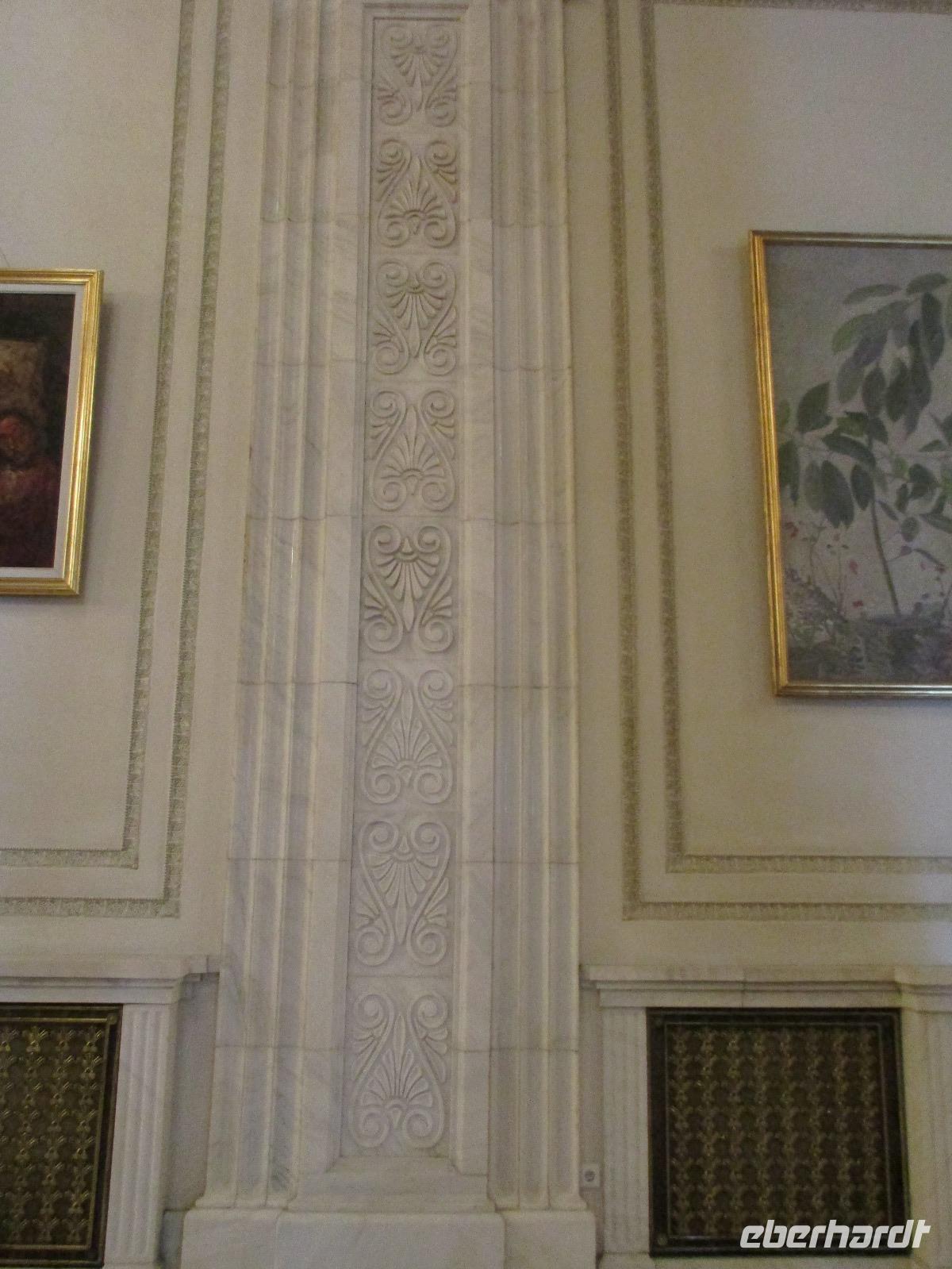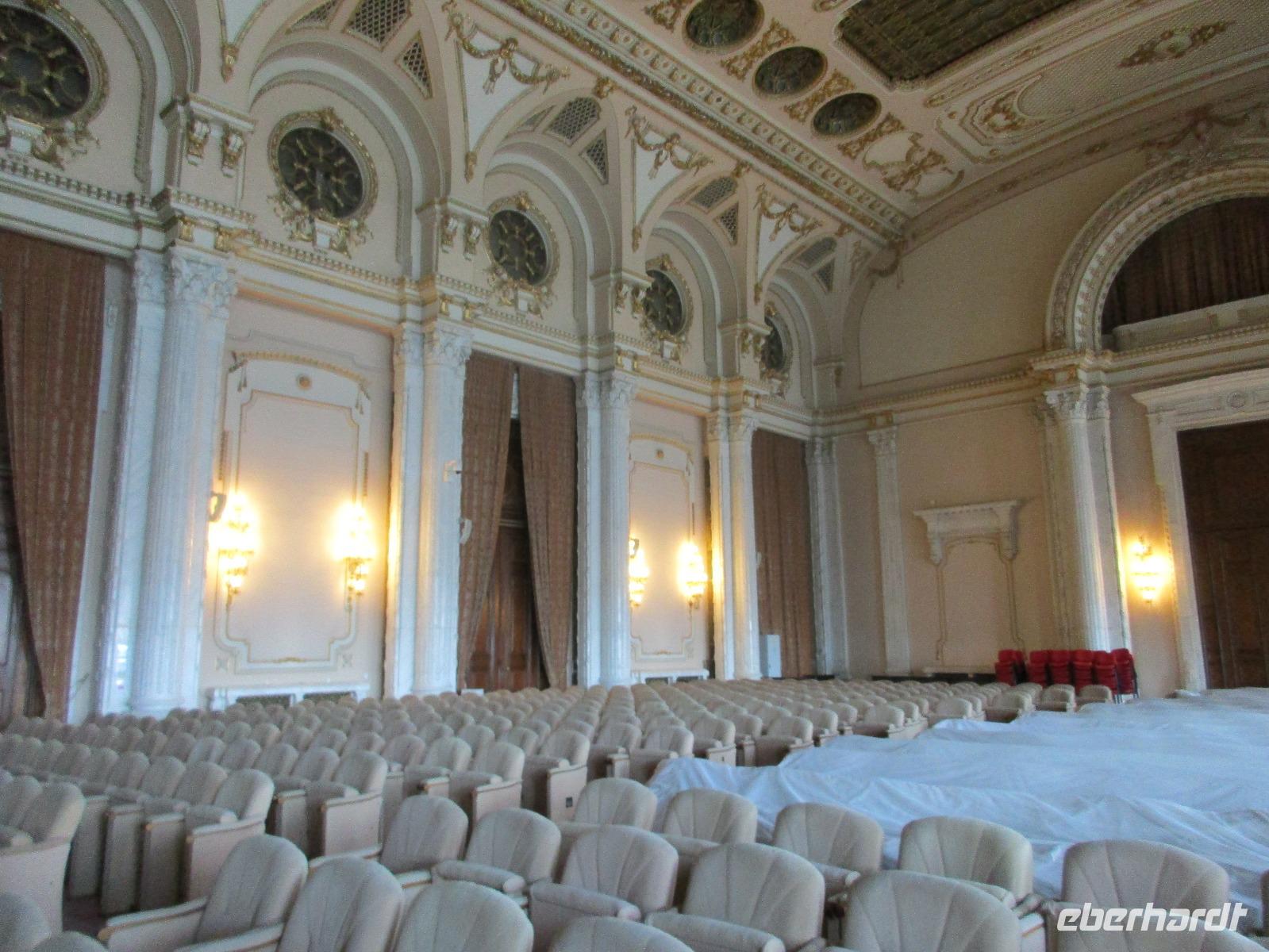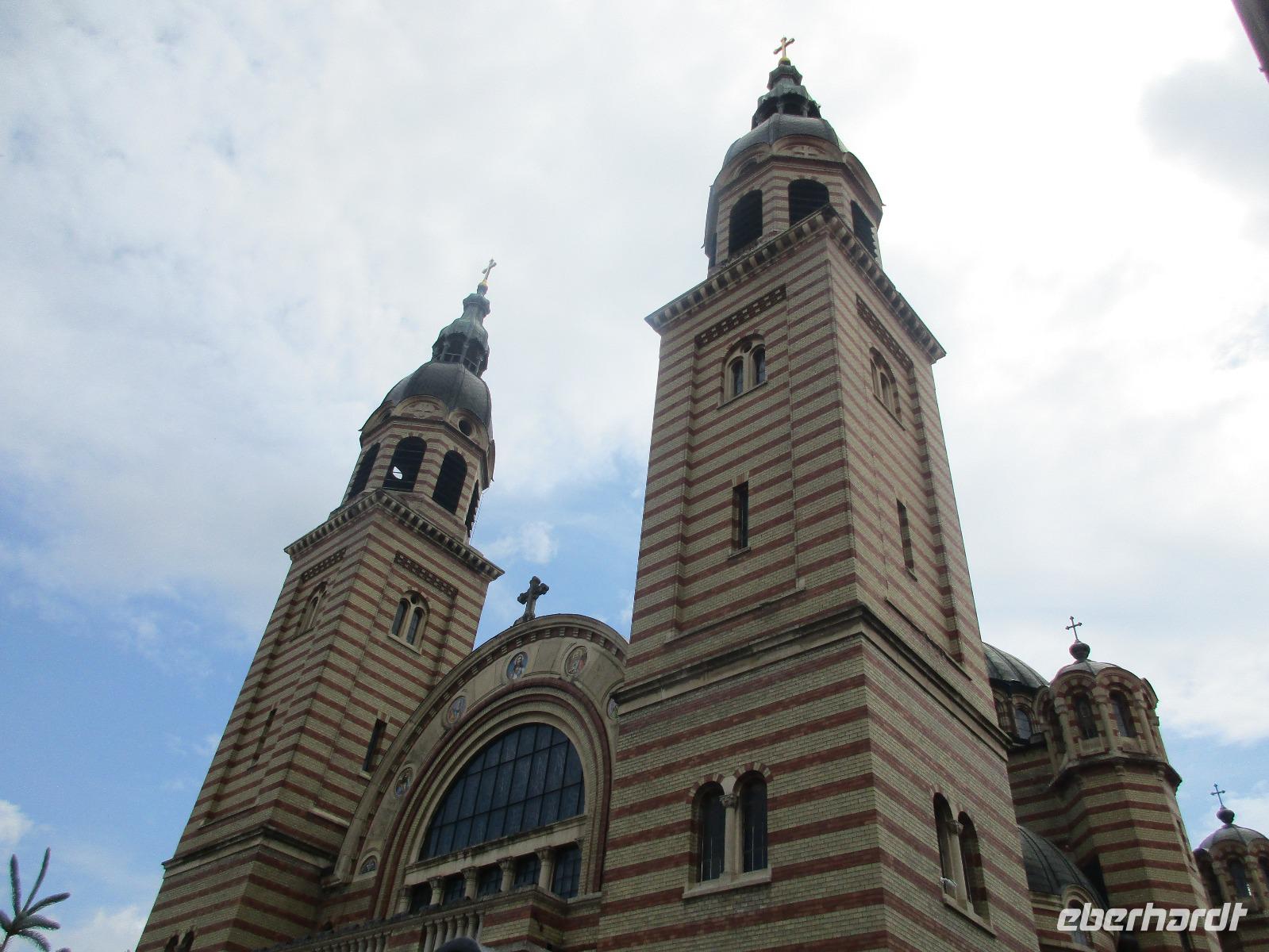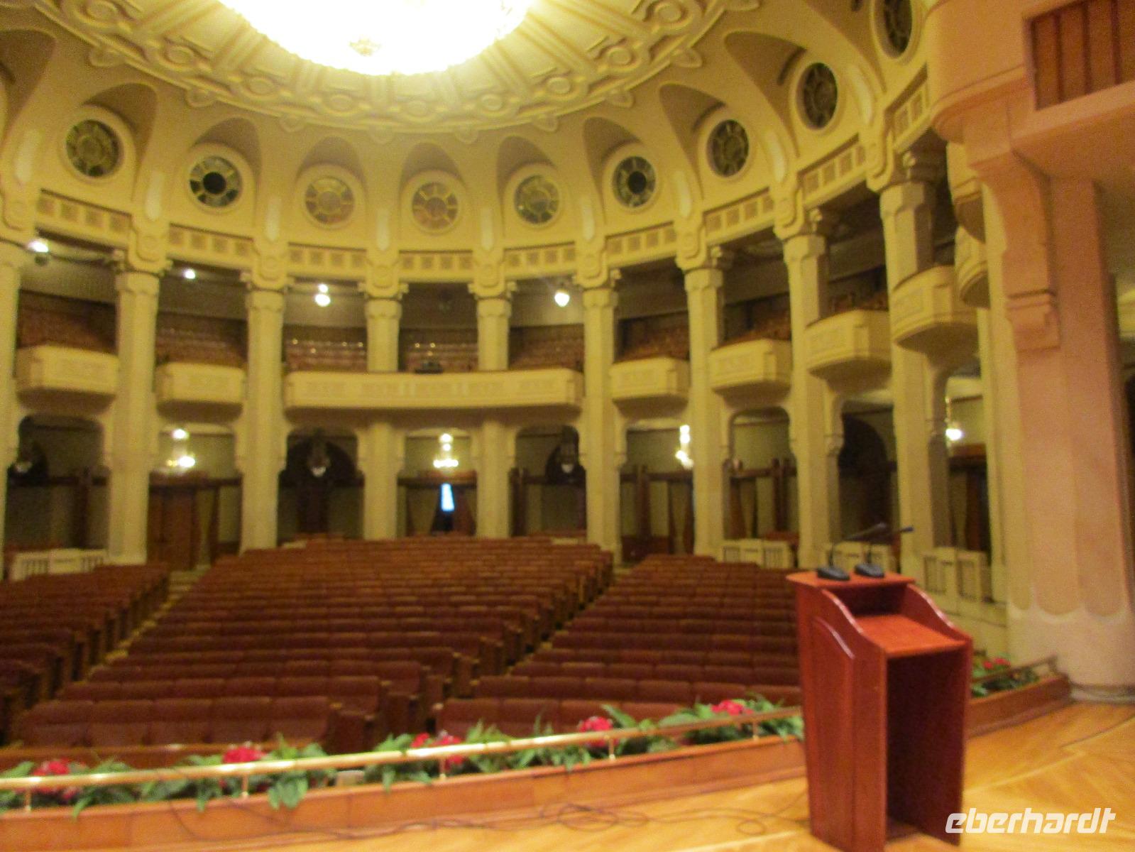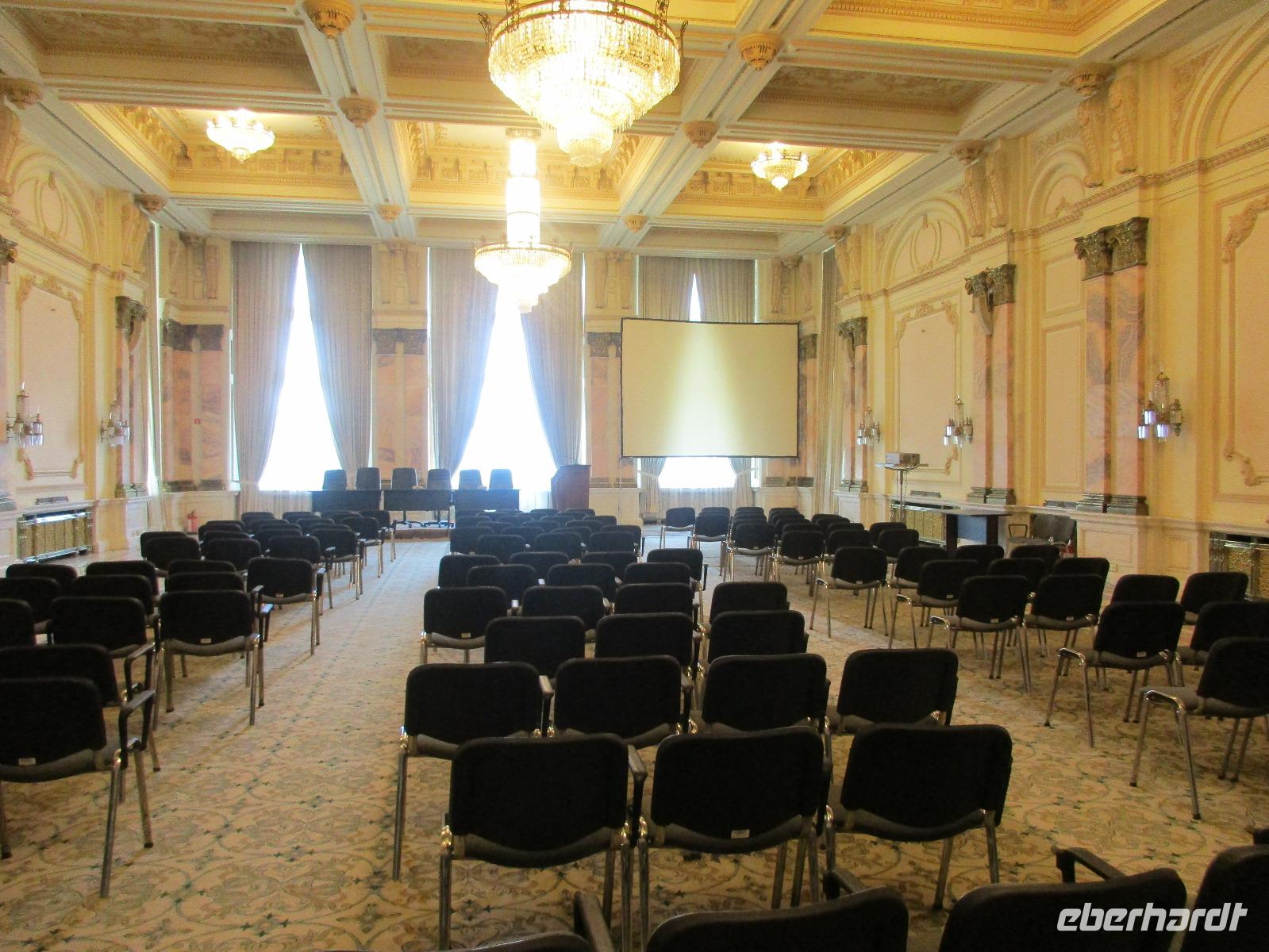 Der letzte Tag in Rumänien ist angebrochen. Nach dem Frühstück verabschiede mich von den ersten Gästen, die mit eigener Anreise angekommen sind und wegen ihrer Flugzeit eher am Tag zurück nach Hause fliegen. Wir verladen die Koffer und setzen mit der Stadtrundfahrt fort, die wir eine Woche zuvor begonnen hatten. Nochmals durch das Botschafterviertel fahren wir nun entlang der Siegerstra mit vielen namentlichen Hotelketten zum Revolutionsplatz der Stadt. Hier steigen wir aus und Corina erklärt uns die vielen Gebäude und Denkmäler, die hier ihren Platz gefunden haben. Danach haben wir noch ein wenig Zeit, um hier zu fotografieren. Danach geht es vorbei an einem militärischen Komplex hin zur staatlichen Institution, dem rumänischem Parlament. Auch wenn wir hier für 11 Uhr angemeldet sind und wir schon vor der Zeit da sind, heißt es leider warten. Mehrfach werde ich von den Mitarbeitern hier darauf hingewiesen, dass das Parlament kein Museum sondern eine Institution ist, die ihre eigenen Regeln hat, der wir uns unterordnen müssen. Jawohl, Sir;-). Als wir dann endlich dran sind, geben wir unsere Personaldokumente ab und werden wie am Flughafen durchleuchtet. Dann endlich gehen wir die imposanten Treppen hinauf und rund um jedes neue Ecke sind wir erstaunt und teilweise erschlagen von den riesigen Hallen und Sälen mit riesigen Gemälden an der Wand, großen Freitreppen, einen eigenen Musiksaal und und und. Kaum zu glauben, dass dieses riesige Gebäude, das zweitgrößte administrative Gebäude der Welt in relativ kurzer Zeit errichtet wurde. 11 Stockwerke hoch und drei Stockwerke unterhalb der Erde mit eigener Rennanlage ist doch schon mehr als imposant und deutet wahrlich auf den Größenwahn des ehemaligen Diktators Ceausescu hin. Man kann jedoch von Glück sprechen, dass die rumänische Bevölkerung dieses Bauwerk in der Wendezeit nicht zerstört hat, denn auf irgendeine Art und Weise ist es dennoch faszinierend. Nach rund einer Stunde Führung, bei der wir unserem Guide natürlich auch Fragen stellen können, verlassen wir das Gebäude und haben nun die Mittagspause an einem Park. Von hier aus kann man auch durch ein modernes Einkaufszentrum schlendern oder in die gegenüberliegende Altstadt spazieren. Letzter Punkt auf unserem Programm ist der Besuch der Patriachenkirche in Bukarest, die wir auch von Innen besichtigen. Auch diese Kirche besticht durch schöne Verzierungen und einem wundervollen Vorplatz. Nun heißt es Abschied nehmen, Abschied nehmen von Corina, Nico und Rumänien. Nachdem die beiden uns am Flughafen verabschiedet haben, beginnt unsere Heimreise nach Deutschland, die doch mit etwas Schwierigkeiten verbunden ist aufgrund der Gewitterlage am Frankfurter Flughafen. Trotz einiger Umstellungen kommen alle Gäste bis nach Dresden und Leipzig zurück und fahren anschließend nach Hause.