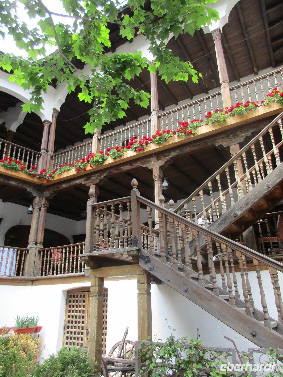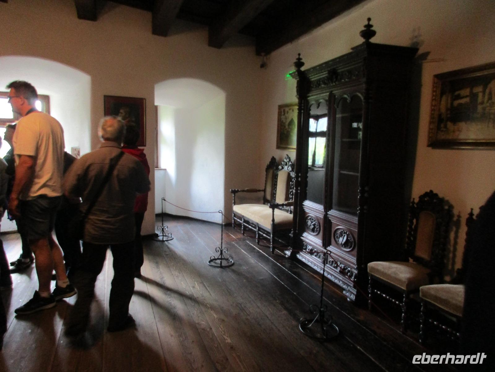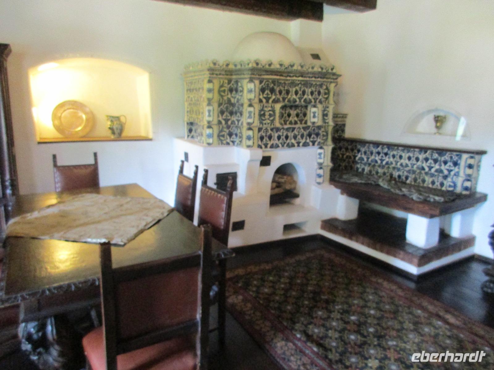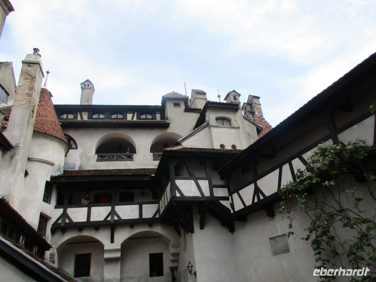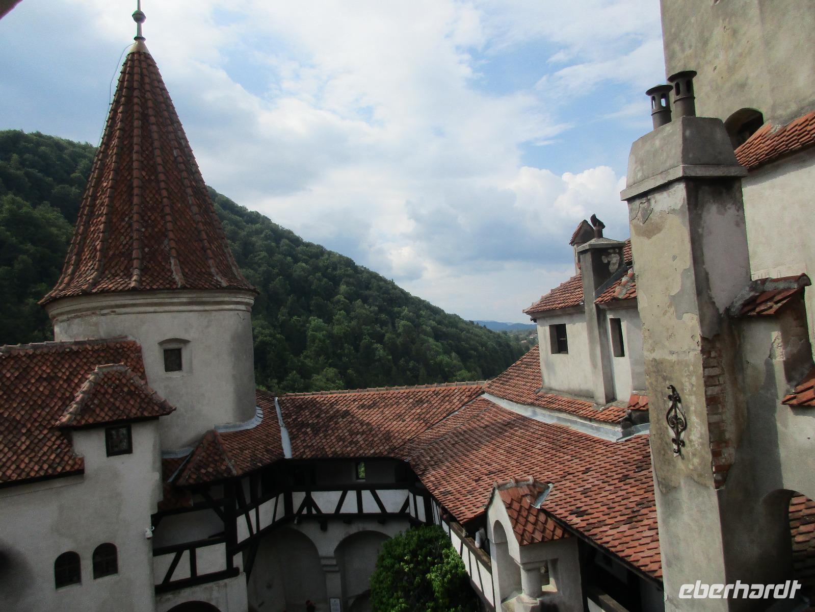 Auch heute sammeln wir uns ohne Gepäck am Bus. Unser erstes Ziel ist die Kirchenburg Harman, auch Honigberg genannt. Auch hier bekommen wir eine deutschsprachige Einführung zum Bau und Leben in der Burg und deren Geschichte. Es ist wirklich höchst interessant. Wer sich traut, darf ich Anschluss auch auf den Kirchenturm hinauf klettern, um von oben Bilder von der Stadt zu knipsen. In den umherliegenden Häusern ist das Leben zur damaligen Zeit ausgestellt und der Kirchenmitarbeiter steht uns die ganze Zeit für Fragen zur Verfügung. Als wir langsam nach Brasov zurück kehren, um unsere Stadtführung zu machen, reist der Himmel auf und die Sonne kämpft sich durch. Zunächst erkunden wir die Stadt mit dem Bus und sehen dabei neben einigen Fakultäten und Kirchen auch das rumänische Wohnviertel. Dann steigen wir aus und spazieren durch die engste Gasse der Stadt bis hin zur schwarzen Kirche. Im Inneren führt uns Corina durch und erklärt uns Altar, Kanzel und die Bilder an den Wänden. Am Marktplatz machen wir eine kurze Pause, um Postkarten zu kaufen, bevor wir uns noch kurz eine orthodoxe Kirche anschauen, die sich in einem Hinterhof befindet. Über die Michael-Weiß-Straße gelangen wir zurück zur belebten Einkaufsstraße mit zahlreichen Cafés und Restaraunts. Hier verleben wir unsere Mittagspause. Am Nachmittag schließlich sind wir noch einmal zu Gast bei Dracula, im Schloss Bran. Obwohl Dracula hier nie gelebt hat, wird das Schloss und der davor befindliche Basar entsprechend vermarktet. Bei einem Rundgang durch das Schloss stellen wir fest, wie klein und niedlich doch die Räume sind. Man kann sich hier bei den vielen Terrassen doch geradezu wohlfühlen und ich persönlich male mir schon aus, wie ich das Schloss nach meinem Geschmack einrichten würde...denn immerhin steht es ja zum Verkauf. Am Abend sind wir zurück in Poiana Brasov.