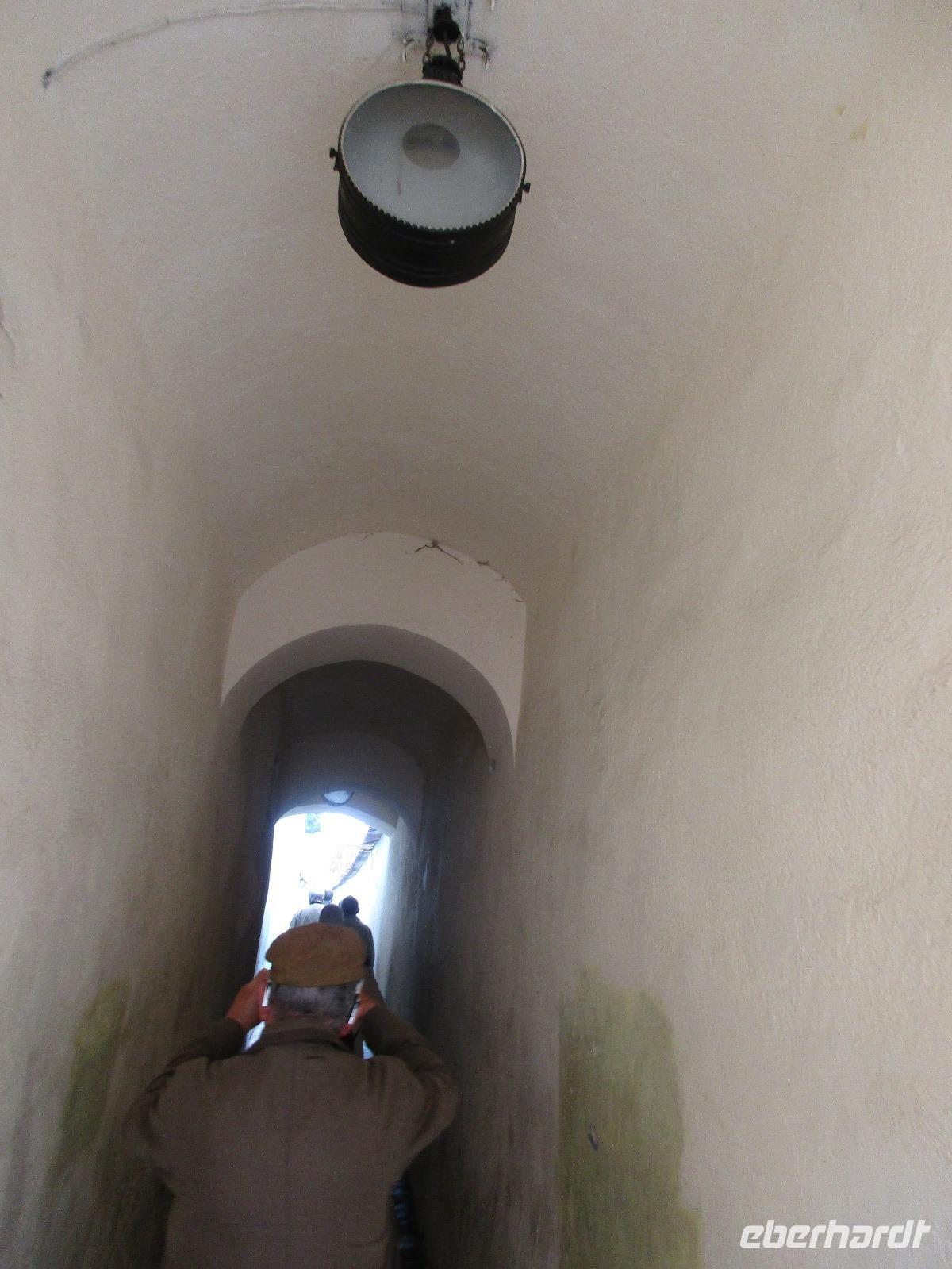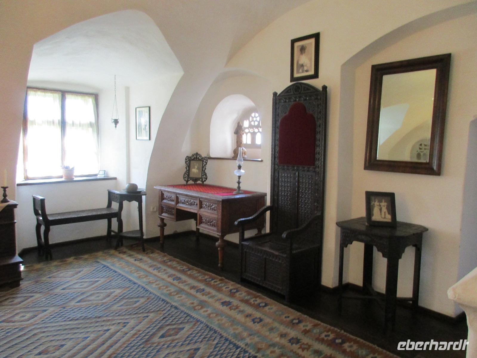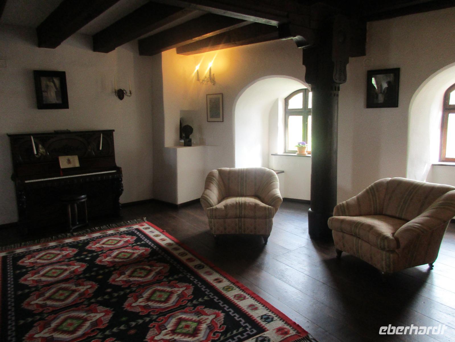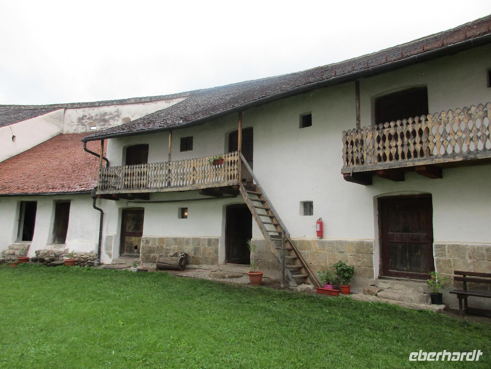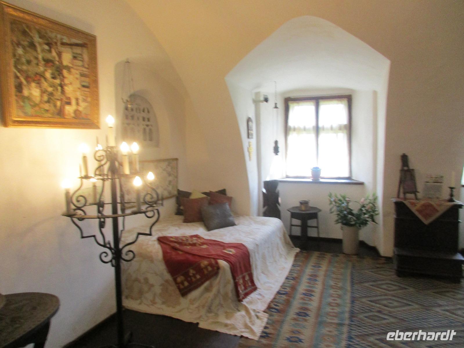 Auch heute sammeln wir uns ohne Gepäck am Bus. Unser erstes Ziel ist die Kirchenburg Harman, auch Honigberg genannt. Auch hier bekommen wir eine deutschsprachige Einführung zum Bau und Leben in der Burg und deren Geschichte. Es ist wirklich höchst interessant. Wer sich traut, darf ich Anschluss auch auf den Kirchenturm hinauf klettern, um von oben Bilder von der Stadt zu knipsen. In den umherliegenden Häusern ist das Leben zur damaligen Zeit ausgestellt und der Kirchenmitarbeiter steht uns die ganze Zeit für Fragen zur Verfügung. Als wir langsam nach Brasov zurück kehren, um unsere Stadtführung zu machen, reist der Himmel auf und die Sonne kämpft sich durch. Zunächst erkunden wir die Stadt mit dem Bus und sehen dabei neben einigen Fakultäten und Kirchen auch das rumänische Wohnviertel. Dann steigen wir aus und spazieren durch die engste Gasse der Stadt bis hin zur schwarzen Kirche. Im Inneren führt uns Corina durch und erklärt uns Altar, Kanzel und die Bilder an den Wänden. Am Marktplatz machen wir eine kurze Pause, um Postkarten zu kaufen, bevor wir uns noch kurz eine orthodoxe Kirche anschauen, die sich in einem Hinterhof befindet. Über die Michael-Weiß-Straße gelangen wir zurück zur belebten Einkaufsstraße mit zahlreichen Cafés und Restaraunts. Hier verleben wir unsere Mittagspause. Am Nachmittag schließlich sind wir noch einmal zu Gast bei Dracula, im Schloss Bran. Obwohl Dracula hier nie gelebt hat, wird das Schloss und der davor befindliche Basar entsprechend vermarktet. Bei einem Rundgang durch das Schloss stellen wir fest, wie klein und niedlich doch die Räume sind. Man kann sich hier bei den vielen Terrassen doch geradezu wohlfühlen und ich persönlich male mir schon aus, wie ich das Schloss nach meinem Geschmack einrichten würde...denn immerhin steht es ja zum Verkauf. Am Abend sind wir zurück in Poiana Brasov.