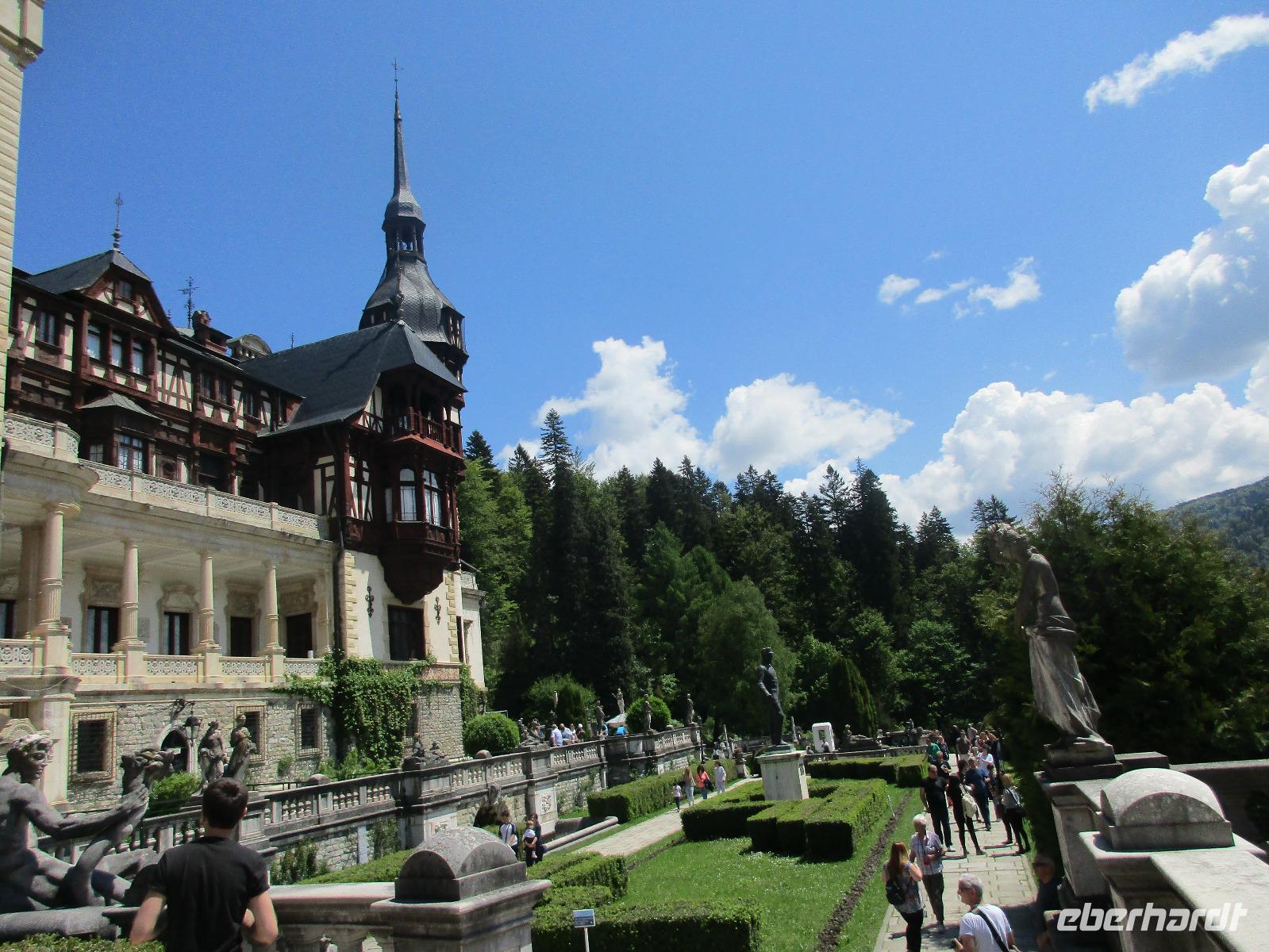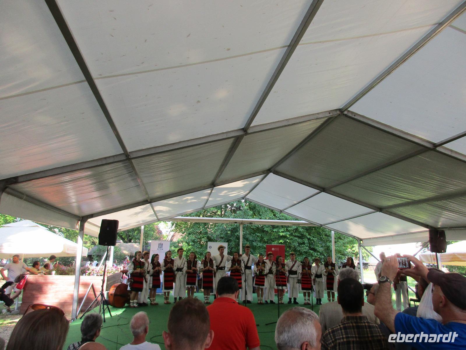 Wir verlassen Poiana Brasov und reisen wieder südlich in Richtung Bukarest. Unterwegs stoppen wir aber am bekannten Schloss Peles in Sinaia. Bei dem schönsten Samstag-Wetter, das heute vorherrscht ist der Park vor dem Schloss schon sehr gut besucht und auch in das Schloss selber möchten viele Gäste hinein. Die Ordner am Eingang haben leider keinen Überblick über die Gruppen, die sie hineinlassen oder wollen sich einfach nicht damit beschäftigen. Nach einer langen Wartezeit kommen wir endlich in das Innere des Schlosses und ziehen noch den Schutz über unsere Schuhe. Dann führt uns Corina mittels der Audiogeräte durch das doch sehr prunkvolle Schloss. Die Zimmer sind sehr eindrucksvoll eingerichtet und man merkt schon, wie feudal die Herrschaften früher gewohnt haben mit all Ihren Sälen und Hallen. Ergo, das Warten hat sich definitiv für uns gelohnt. Bevor wir weiter nach Bukarest reisen, fahren wir zu einer Sektkellerei in Azuga wo wir von der Produktion über die Lagerung bis hin zur Flaschenabfüllung und -verkorkung. Natürlich dürfen wir am Ende von drei Sorten rumänischenk Sektes probieren. Und wem es besonders gut geschmeckt hat, der kauft im eigenen Handelsladen noch eine Flasche des guten Tropfens. Am Nachmittag schließlich erreichen wir bei herrlichstem Sonnenschein und hohen Temperaturen wieder die Hauptstadt Bukarest. Wir besuchen das Dorfmuseum, welches sich in dem großen Park gleich ganz in der Nähe unseres Hotels befindet. Nach einer kleinen Einweisung schauen wir uns ganz individuell in dem Museum um und können in die ein oder anderen ausgestellten Häusern auch reingehen. Wir haben heute auch großes Glück dem im Dorf selber werden heute Folkloretänze in den jeweiligen Trachten aufgeführt. Die Stimmung ist gut und lädt ein wenig zum Schunkeln ein. Unser letzer Abend klingt in einem großen Restaurant am See gelegen aus. Auch hier werden uns während des Abendessens Folkoretänze vorgeführt. Wer möchte, kann im Anschluss noch selber das Tanzbein schwingen.