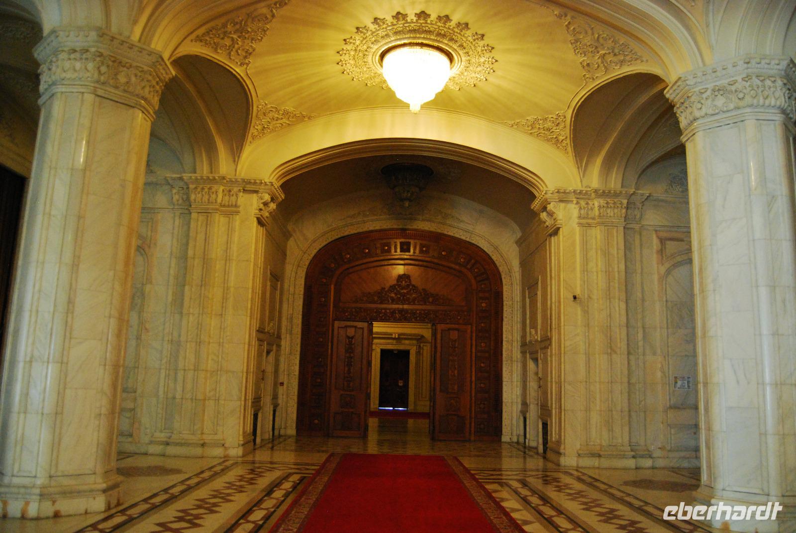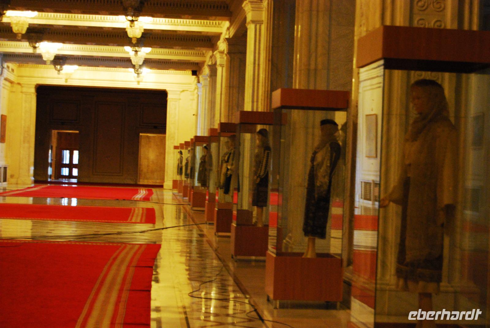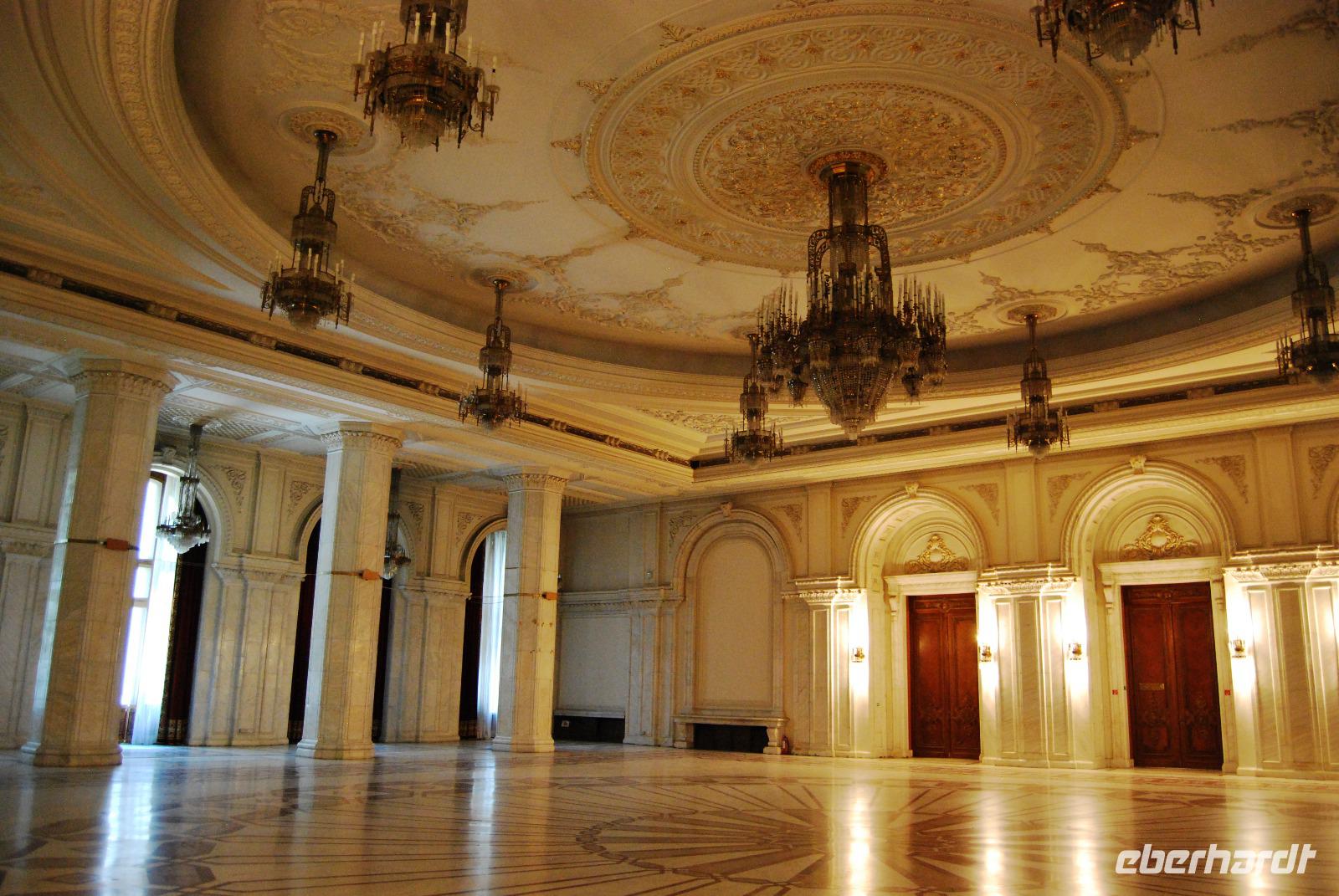 Anschließend besuchten wir das rumänisch-orthodoxe Kloster Sinaia, welches im 17. Jahrhundert gegründet wurde. Danach ging es auf schnellstem Wege in die rumänische Hauptstadt Bukarest. Dort stand noch eine kleine Stadtrundfahrt auf dem Programm. Unter anderem besichtigten wir den äußerst pompösen Parlamentspalast, der flächenmäßig eines der größten Gebäude der Welt ist. Von 1983 bis 1989 ließ der diktatorisch regierende Staatspräsident von Rumänien, Nicolae Ceausescu, den Palast nach seinen Vorstellungen bauen. Im Parlamentspalast befinden sich 5.100 Räume, davon sind 3.000 Zimmer, der Rest sind Hallen und Flure - über 30 Räume und Salons sind zwischen 200 und 2.000 m² groß! Die Innenausstattung vom Feinsten! Und alles in riesigen Dimensionen.