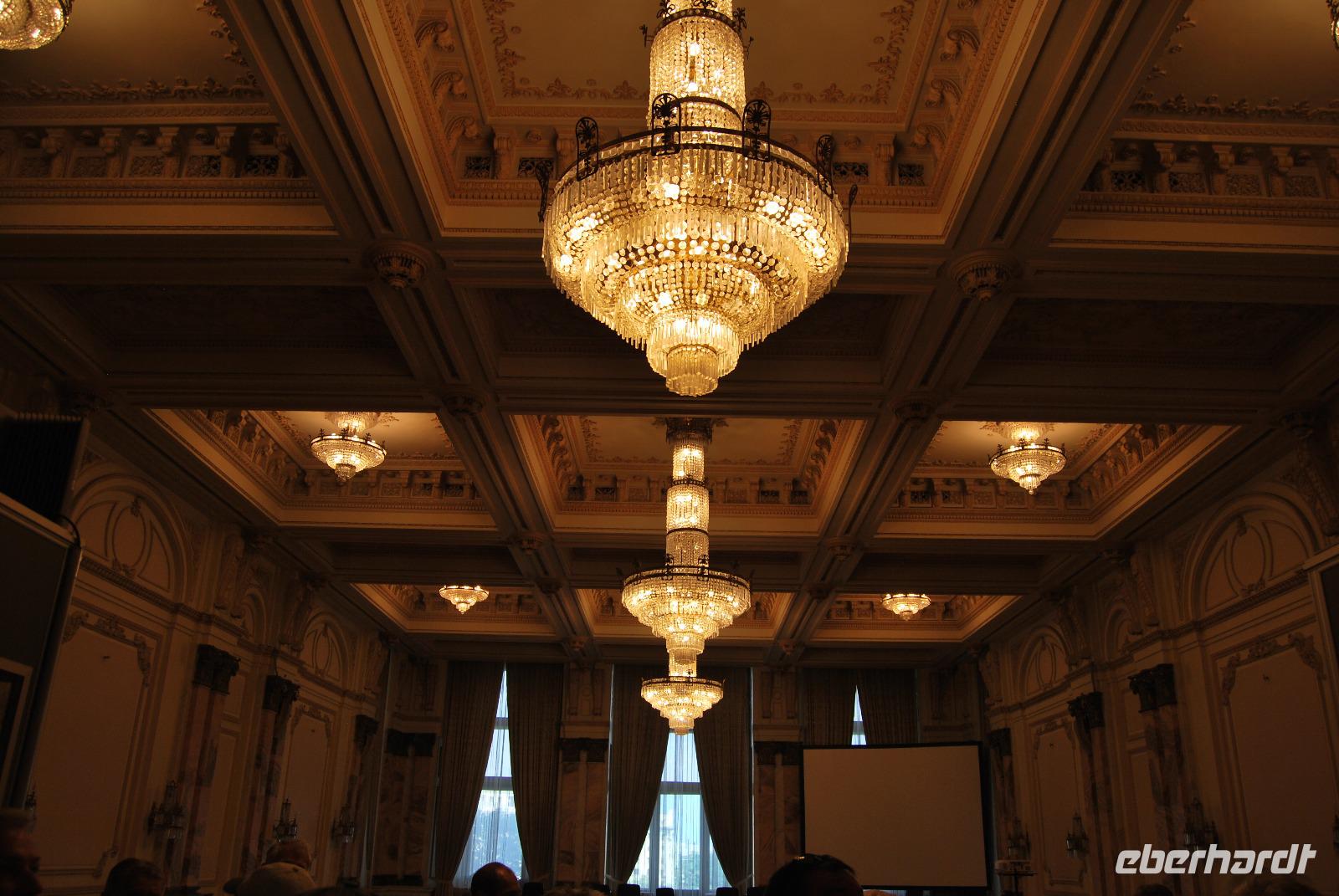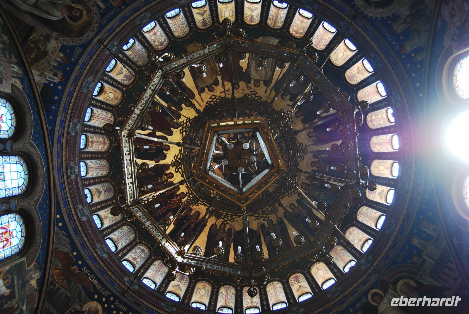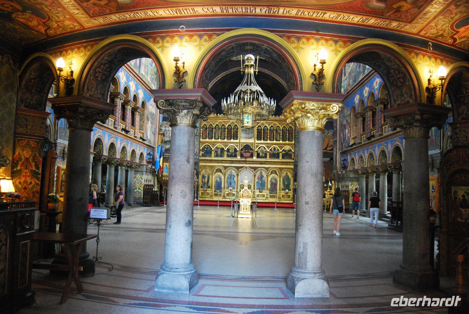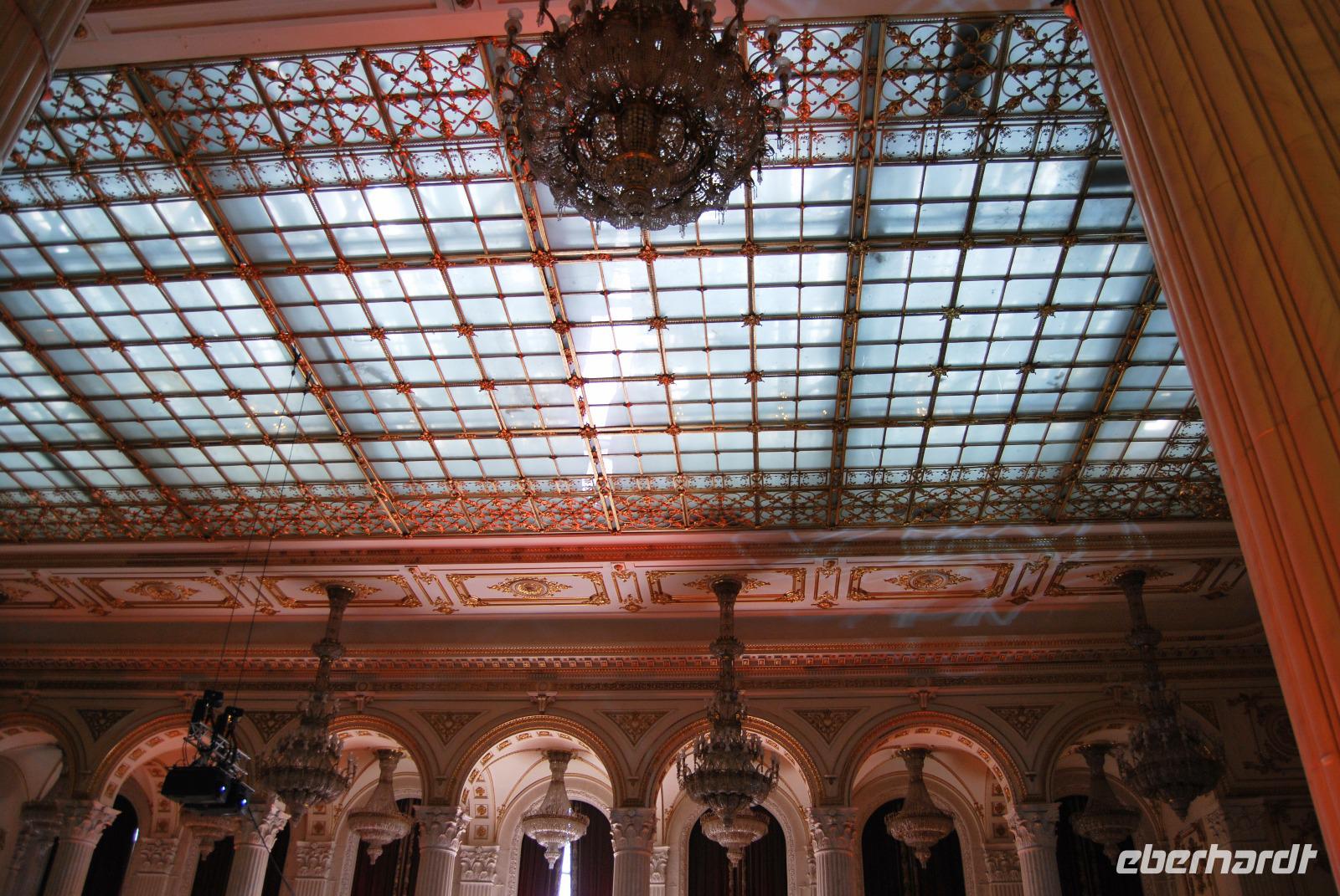 Anschließend besuchten wir das rumänisch-orthodoxe Kloster Sinaia, welches im 17. Jahrhundert gegründet wurde. Danach ging es auf schnellstem Wege in die rumänische Hauptstadt Bukarest. Dort stand noch eine kleine Stadtrundfahrt auf dem Programm. Unter anderem besichtigten wir den äußerst pompösen Parlamentspalast, der flächenmäßig eines der größten Gebäude der Welt ist. Von 1983 bis 1989 ließ der diktatorisch regierende Staatspräsident von Rumänien, Nicolae Ceausescu, den Palast nach seinen Vorstellungen bauen. Im Parlamentspalast befinden sich 5.100 Räume, davon sind 3.000 Zimmer, der Rest sind Hallen und Flure - über 30 Räume und Salons sind zwischen 200 und 2.000 m² groß! Die Innenausstattung vom Feinsten! Und alles in riesigen Dimensionen.