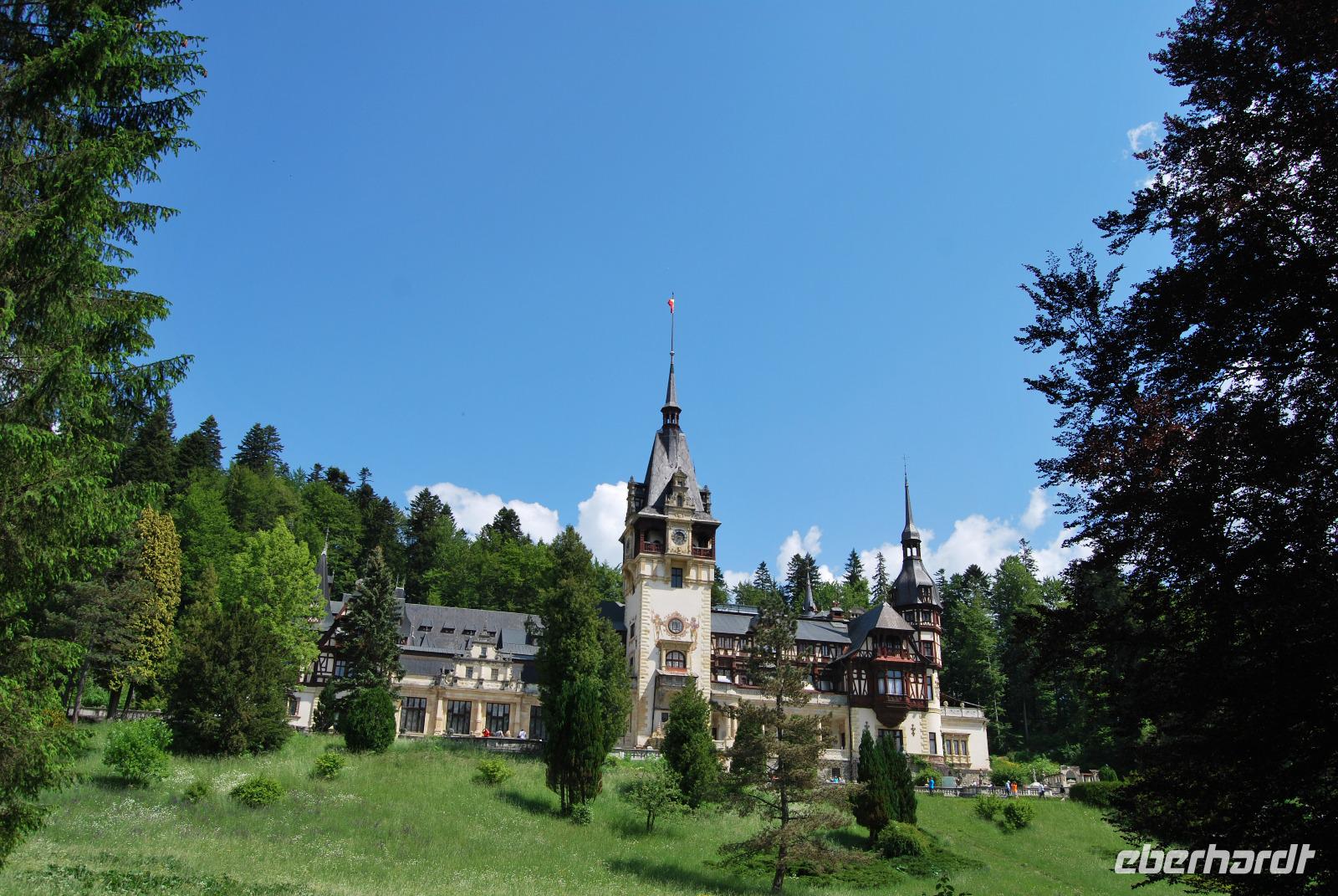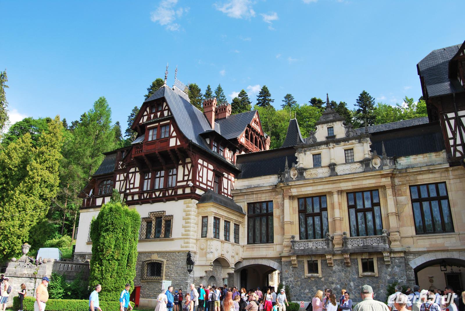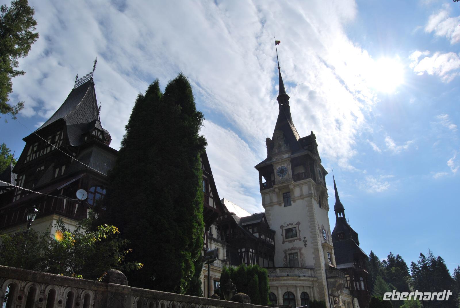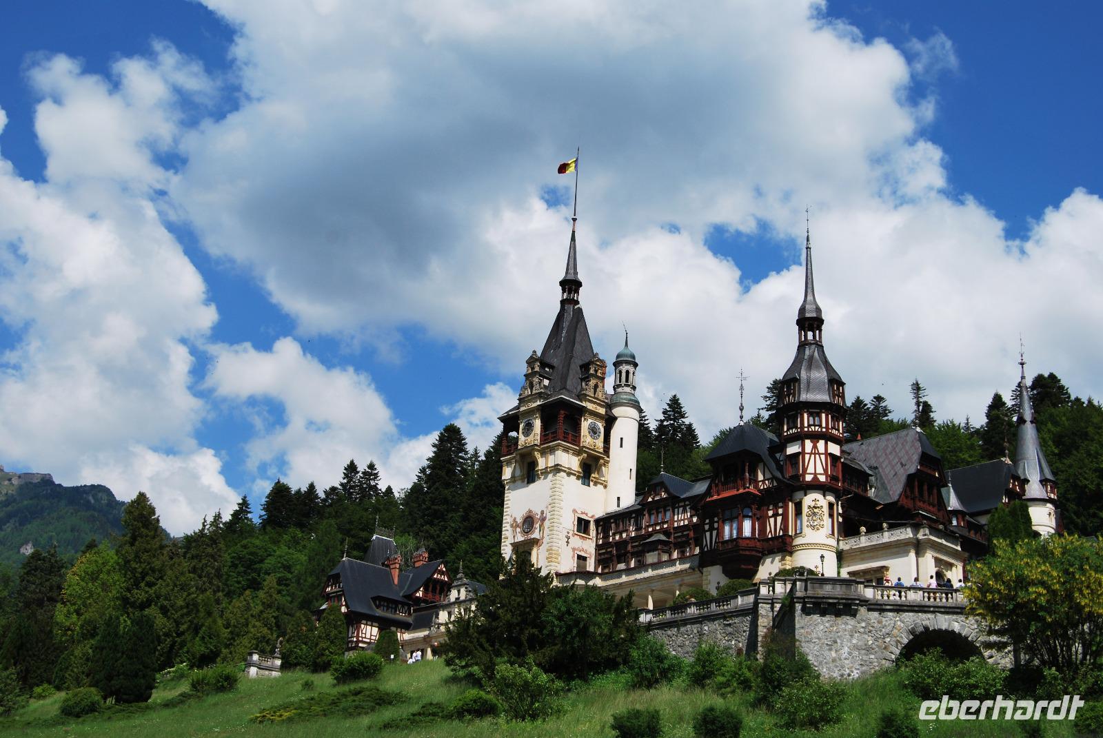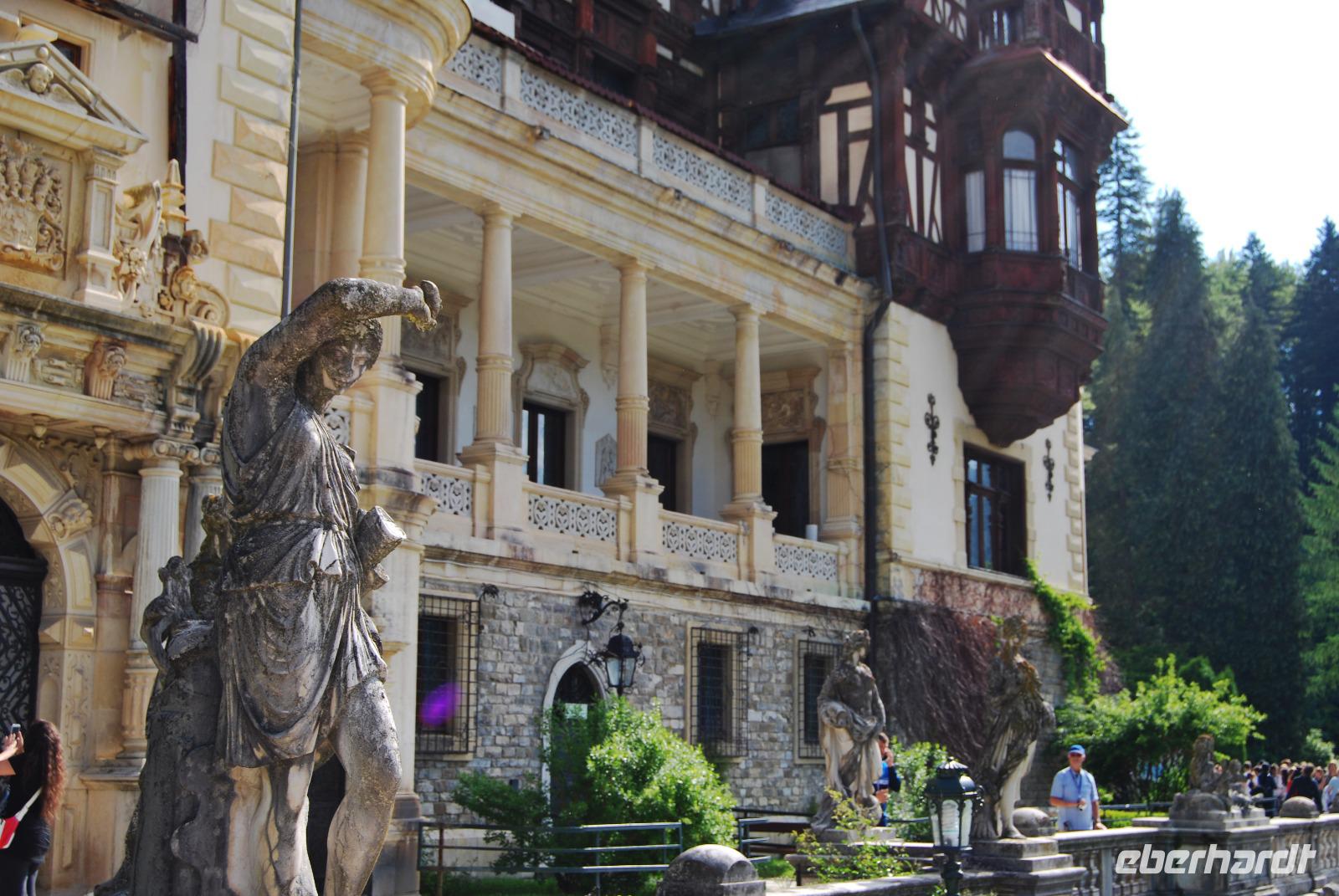 Am Morgen fuhren wir nach Sinaia, ein äuserst eindrucksvolles Bergdorf. Ziemlich steil geht es dort die Straßen hinauf - ein wirklich tolles Bergpanorama mit steilen Klippen! Der Hauptgrund unserer Reise dorthin war das äußerst beeindruckende Schloss Peles. Das Schloss wurde zwischen 1873 und 1883 für König Carol I. von Rumänien erbaut. Es fehlte ihm wohl an nichts. Von außen macht es einen relativ unscheinbaren Eindruck. Es sind allerdings zahlreiche wundervolle Details zu entdecken. Aber man vermutet nicht so eine grandiose, prunkvolle und zugleich geschmackvolle Innenausstattung in einer Größe und Fülle, die man sich nicht vorzustellen vermag, wenn man es nicht mit eigenen Augen gesehen hat. Dabei kann man noch nicht einmal jedes der 160 Zimmer besichtigen. Das Schlossmuseum hat eine Ansammlung von historischen Waffen, Skulpturen, Möbeln und dekorativen Gegenständen vom 15. bis zum 19. Jahrhundert. Die hochwertigen und filigranen Arbeiten an den Wänden, Dekor und Säulen waren für mich besonders beeindruckend.