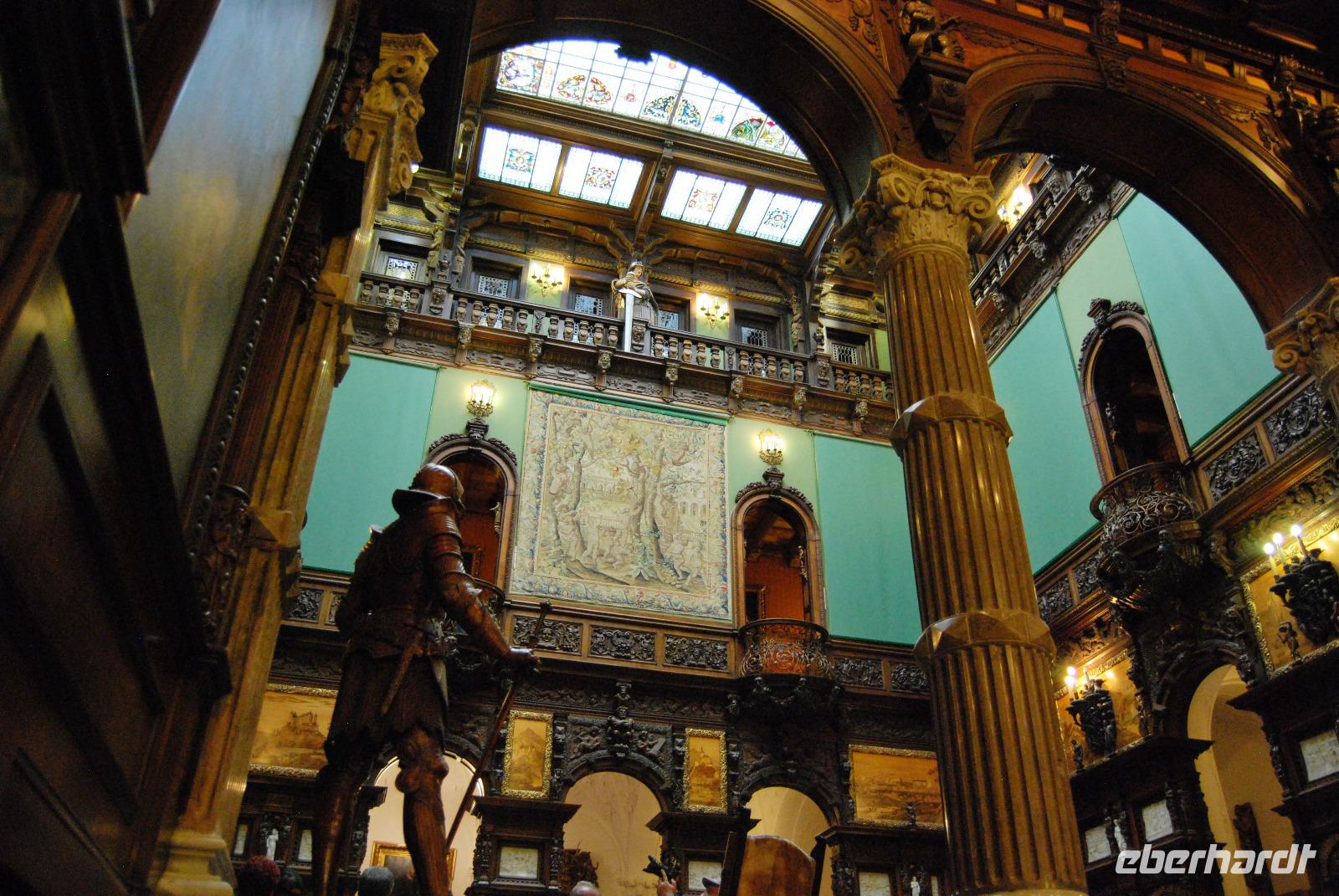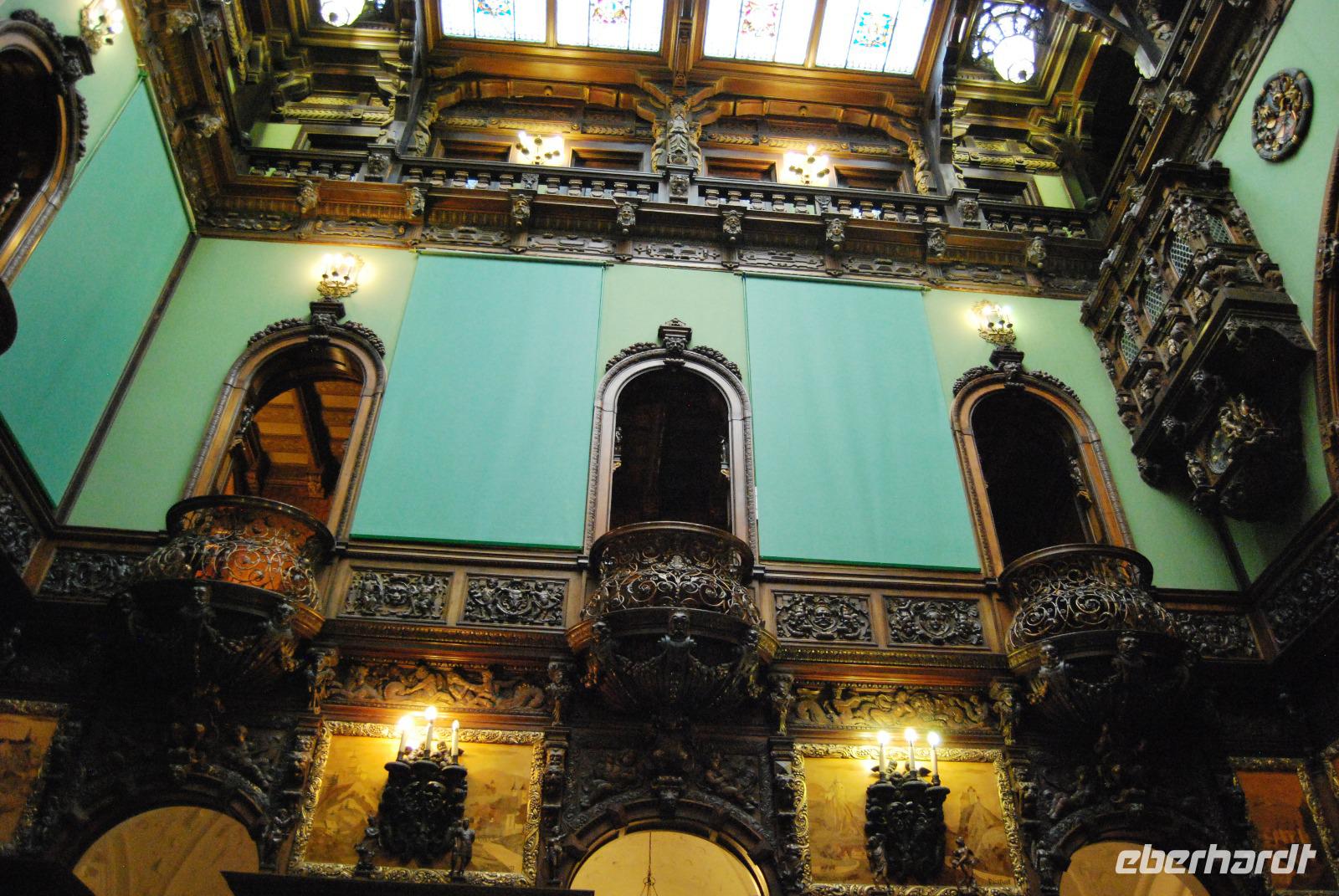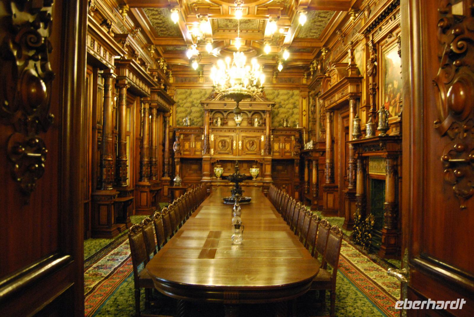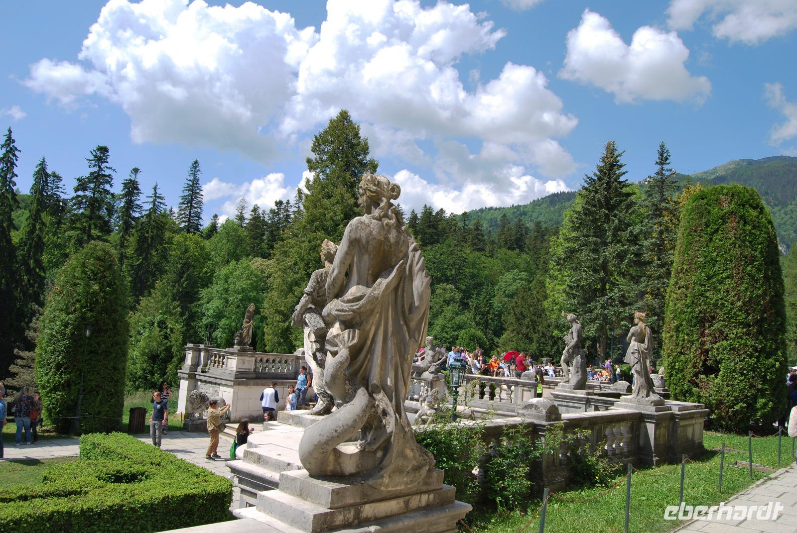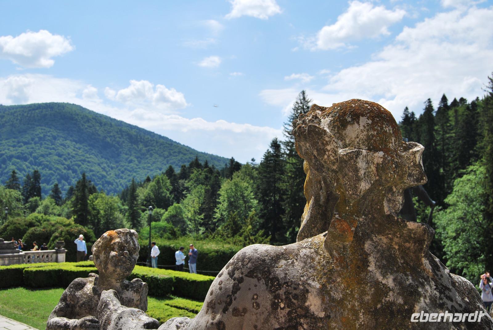 Am Morgen fuhren wir nach Sinaia, ein äuserst eindrucksvolles Bergdorf. Ziemlich steil geht es dort die Straßen hinauf - ein wirklich tolles Bergpanorama mit steilen Klippen! Der Hauptgrund unserer Reise dorthin war das äußerst beeindruckende Schloss Peles. Das Schloss wurde zwischen 1873 und 1883 für König Carol I. von Rumänien erbaut. Es fehlte ihm wohl an nichts. Von außen macht es einen relativ unscheinbaren Eindruck. Es sind allerdings zahlreiche wundervolle Details zu entdecken. Aber man vermutet nicht so eine grandiose, prunkvolle und zugleich geschmackvolle Innenausstattung in einer Größe und Fülle, die man sich nicht vorzustellen vermag, wenn man es nicht mit eigenen Augen gesehen hat. Dabei kann man noch nicht einmal jedes der 160 Zimmer besichtigen. Das Schlossmuseum hat eine Ansammlung von historischen Waffen, Skulpturen, Möbeln und dekorativen Gegenständen vom 15. bis zum 19. Jahrhundert. Die hochwertigen und filigranen Arbeiten an den Wänden, Dekor und Säulen waren für mich besonders beeindruckend.