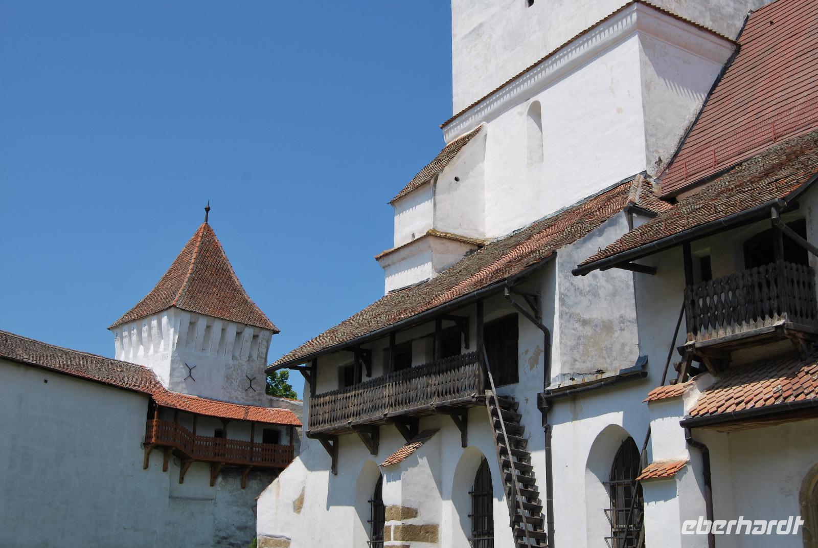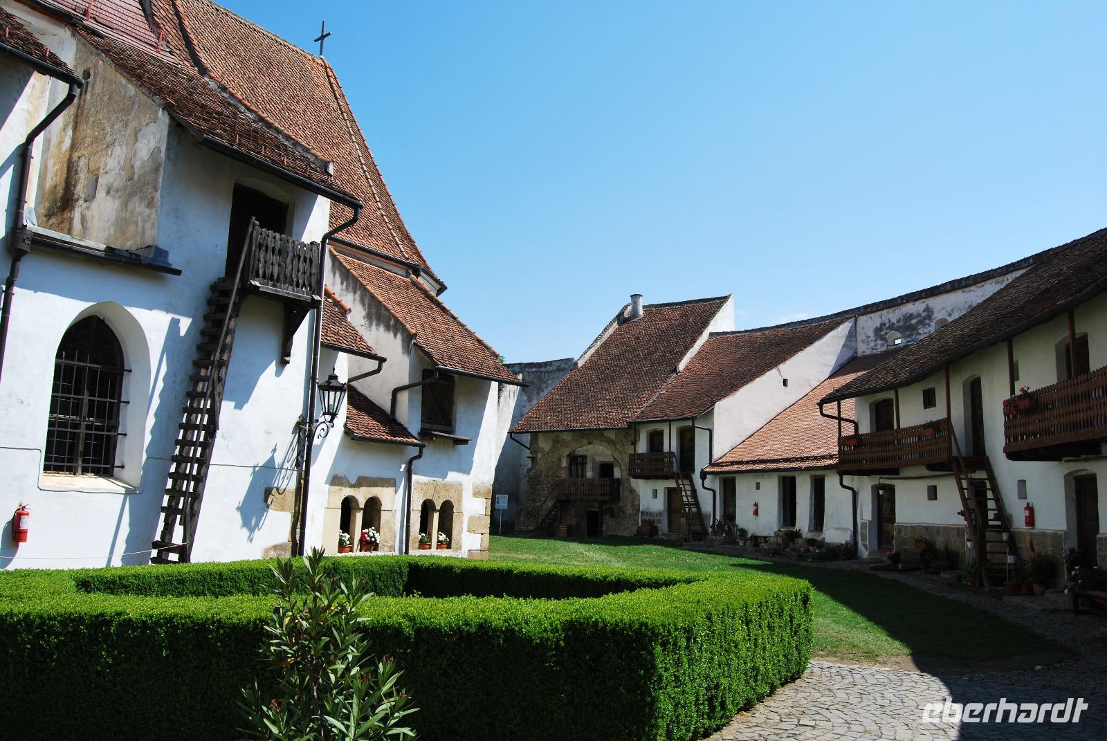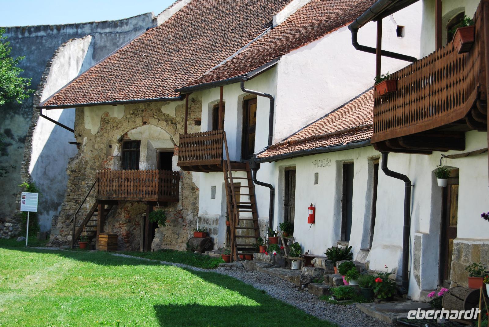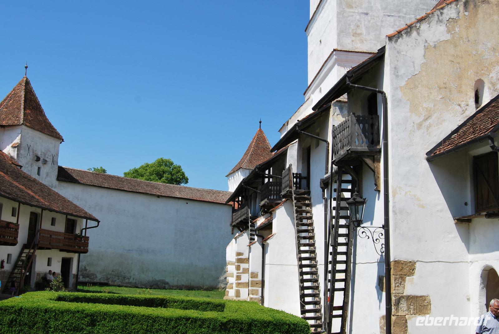 Nach dieser imposanten Burgbesichtigung führte uns die Reise nach Honigberg oder auch Harman im Kreis Brasov. Wir besuchten die Wehrkirche aus dem 13. Jahrhundert, die zum einen sehr eindrucksvoll war und zum anderen auch in der Fläche eine der größten Kirchenburgen Siebenbürgens ist. Daniel, der auch einige Jahre in Norddeutschland lebte, erläuterte uns sehr gut was es mit den Wehrkirchen auf sich hatte, wie hier einige Deutsche herkamen und in diesem gefährlichen Gebiet lebten und was der deutsche Ritterorden (aus dem englischen „Teutonic Order" - die Teutonen) dort zu suchen hatte und wie sich seine Spuren noch heute in den Wappen und in einigen Symbolen wiederfinden. Das dieser äußerst interessanten und spannenden Begegnung in Honigberg verließen wir den Ort und kehrten nach Brasov zurück.
