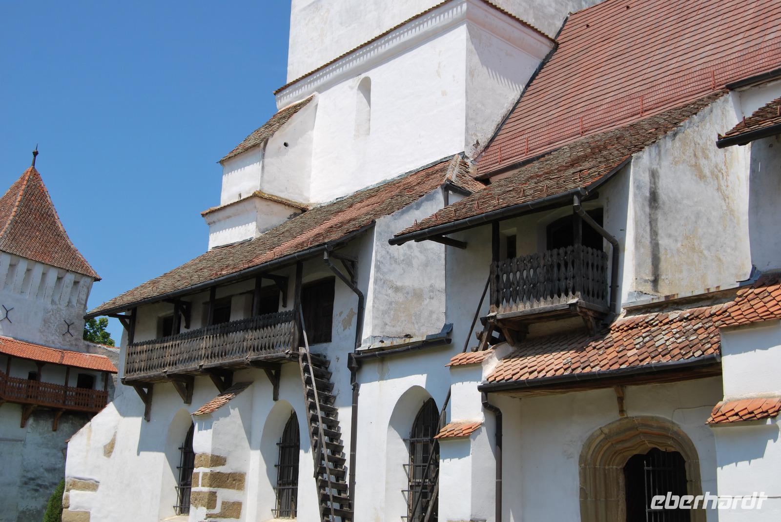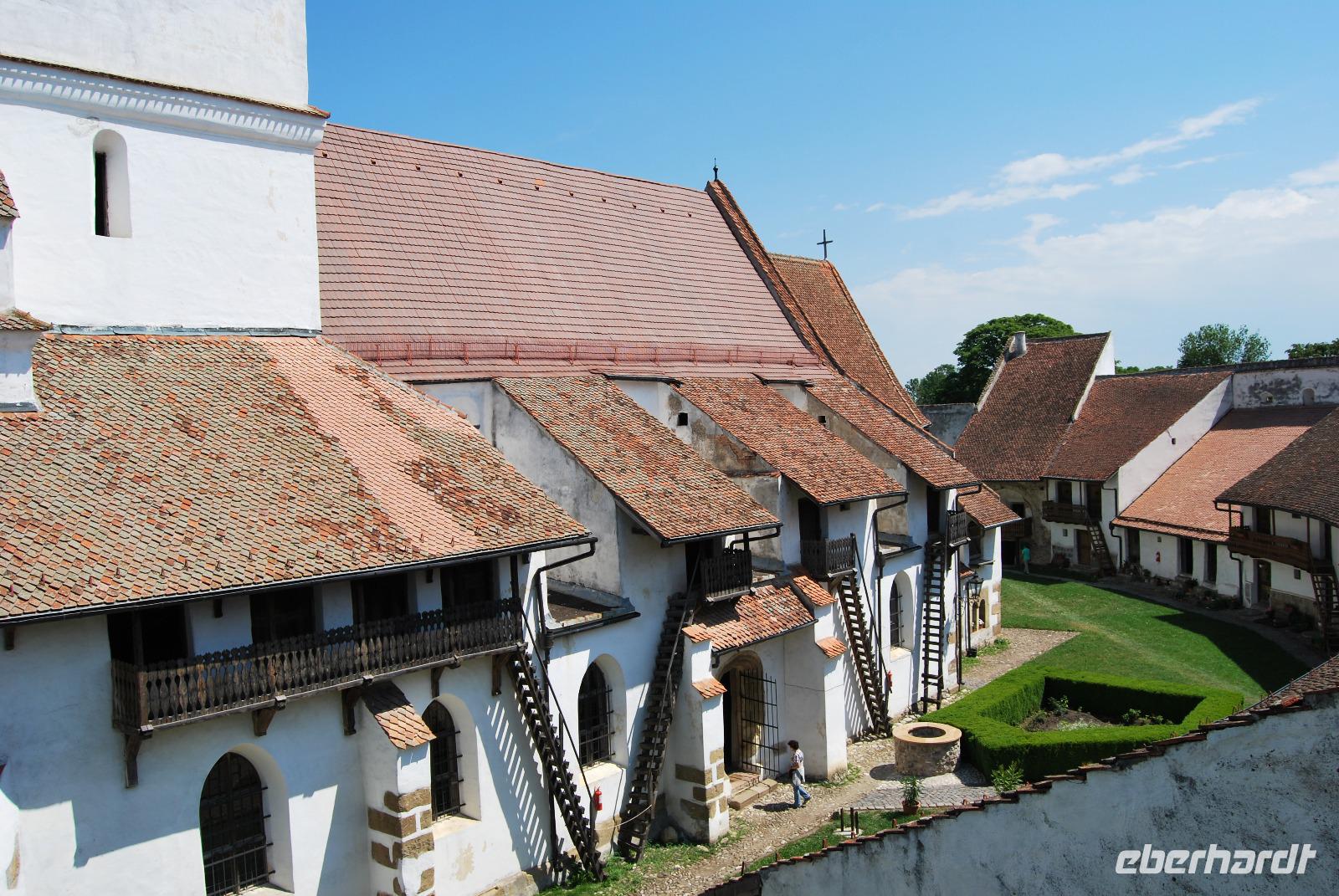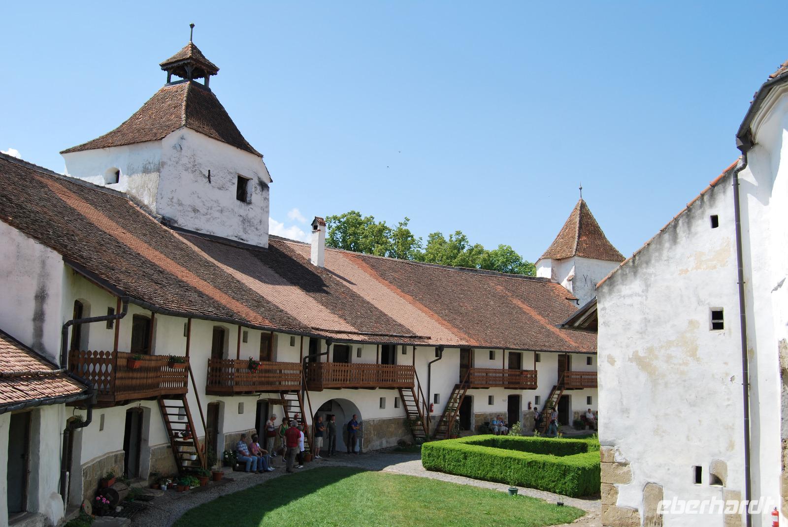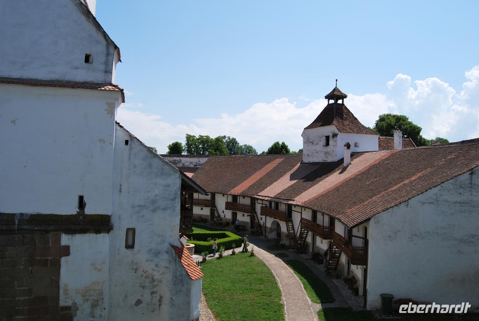 Nach dieser imposanten Burgbesichtigung führte uns die Reise nach Honigberg oder auch Harman im Kreis Brasov. Wir besuchten die Wehrkirche aus dem 13. Jahrhundert, die zum einen sehr eindrucksvoll war und zum anderen auch in der Fläche eine der größten Kirchenburgen Siebenbürgens ist. Daniel, der auch einige Jahre in Norddeutschland lebte, erläuterte uns sehr gut was es mit den Wehrkirchen auf sich hatte, wie hier einige Deutsche herkamen und in diesem gefährlichen Gebiet lebten und was der deutsche Ritterorden (aus dem englischen „Teutonic Order" - die Teutonen) dort zu suchen hatte und wie sich seine Spuren noch heute in den Wappen und in einigen Symbolen wiederfinden. Das dieser äußerst interessanten und spannenden Begegnung in Honigberg verließen wir den Ort und kehrten nach Brasov zurück.