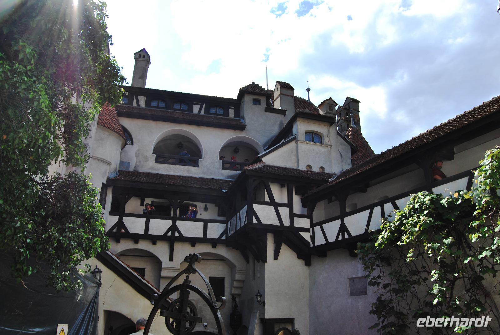 Wir frühstückten in aller Ruhe und fuhren dann in die Ortschaft Bran, die rund eine Stunde entfernt lag. Auf dem Weg dorthin sahen wir das herrliche Bergpanorama Königstein direkt vor uns. Dort haben wir das eindrucksvolle Schloss Bran besichtigt, das auch als Inspiration für Graf-Dracula-Legenden gilt. Schriftsteller Abraham „Bram" Stoker veröffentlichte seinen Roman 1897 und wurde damit weltberühmt. Aber auch der grausame Herrscher Vlad III. Draculea hat auf dieser Burg für einige Zeit gelebt. Ihn umgibt ein besonders grausamer Mythos, der auch Stoker inspirierte. Denn seine Urteile und Hinrichtungen endeten des Öfteren mit der sogenannten Pfählung. Dabei wurde der Kopf des Verurteilten auf einem Pfahl oder Lanze aufgesteckt und zur Schau gestellt. Allein der Gedanke daran ist schon ziemlich gruselig. Aber wir haben alles andere als eine Schauerburg vorgefunden. Man hatte doch gründlich gereinigt. Dennoch, eine absolut empfehlenswerte Burg aus dem 14. Jahrhundert! Die meisten Wände erstrahlen im hellen Weiß und die Möbel sind aus schwerem, dunklen Holz. Bärenfälle und Rüstungen sowie alte Urkunden, Banner und Kleidung aus der damaligen Zeit sind ausgestellt. Der Schriftsteller Bram Stoker und Graf Dracula selbst haben eine eigene Austellungskammer bekommen. Auch Vlad III. Draculea und seine Familie sowie die letzte Burgherrin waren zu sehen - auf einem Foto natürlich.