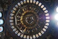 Die alte Kirche im Zentrum war für mich sehr beeindruckend. Im Vorraum waren schon drei Mönche zu sehen, die ihrer stillen Arbeit nachkamen. Die Wände waren voll mit der heiligen Geschichte bemalt. Weiter im Hauptraum hört man die Gebete der Mönche. Für einen Laien könnte man es als Sprechgesang verstehen, jedoch in einer unverständlichen Sprache und extrem schnell heruntergesagt. Die Wände und Decken waren rabenschwarz. Leicht schimmerten die Gemälde durch. Es war sehr dunkel. Durch das Fenster der schwarzen Kuppel schien das Licht der Sonne.