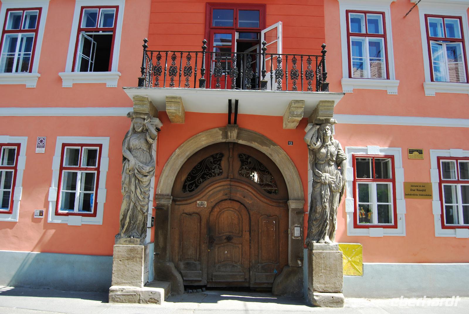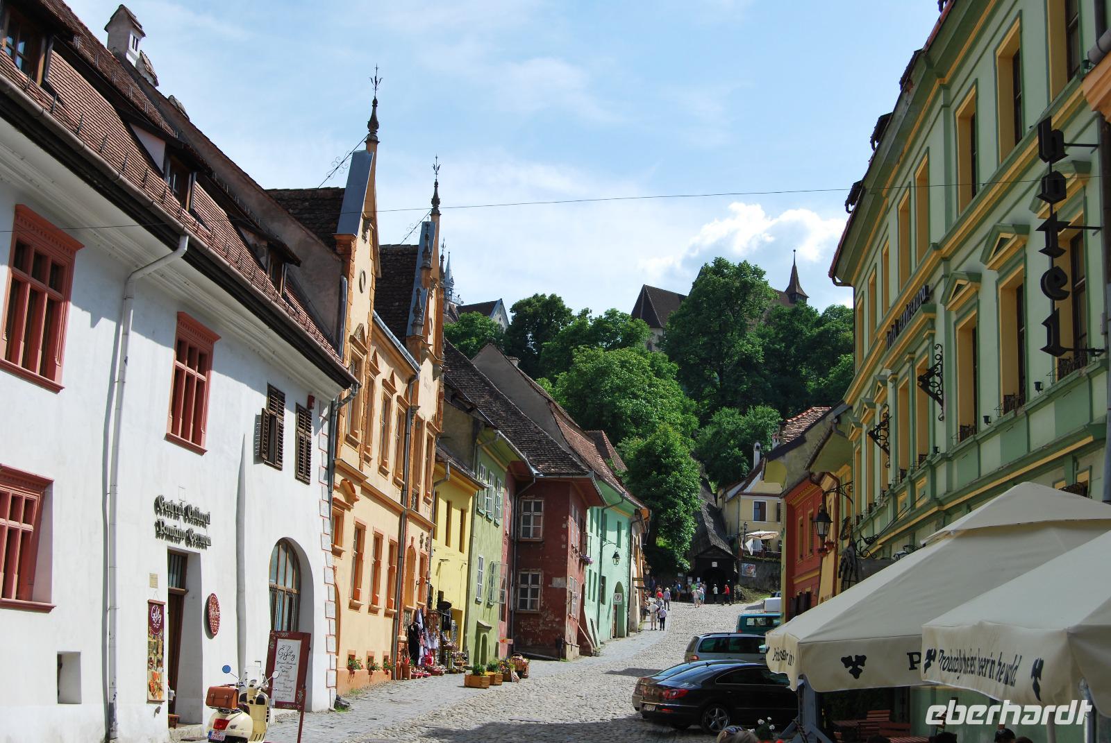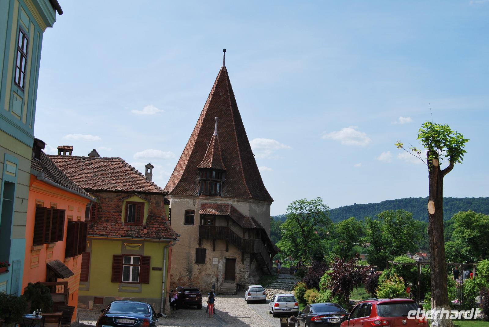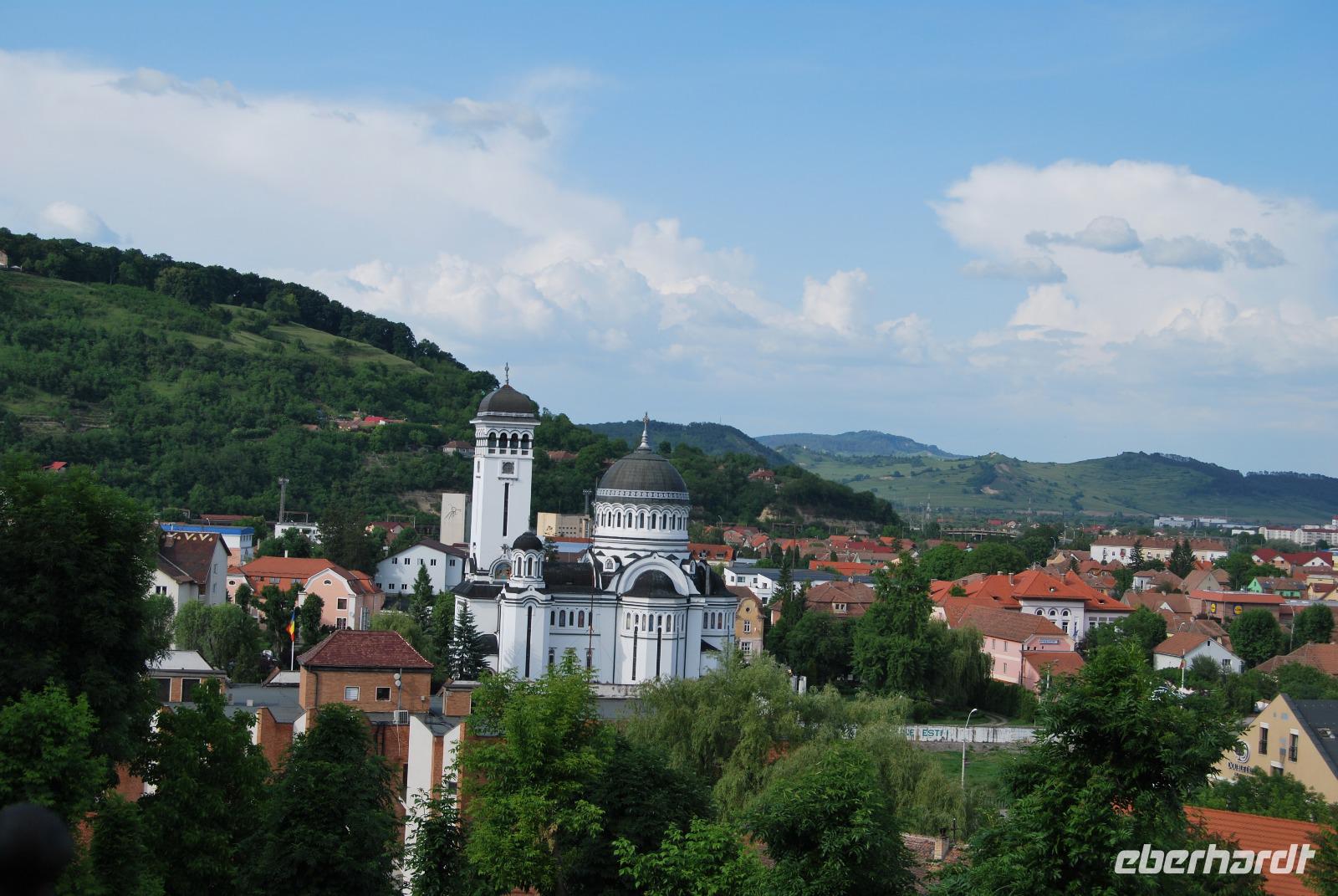 Danach war die wundervolle Altstadt von Schäßburg an der Reihe. Die steilen Treppen hinauf bis in den inneren Ring. Die Wehrtürme der Anlage waren früher den verschiedenen Zünften zugeordnet. So kamen wir am Goldschmiede-Turm vorbei sowie dem Stundturm, der als Wahrzeichen der Stadt gilt. Das Zentrum von Sighisoara zählt zum UNESCO-Weltkulturerbe wo wir auch die Klosterkirche besichtigten. Noch heute werden die Gottesdienste nur auf Deutsch abgehalten. Früher war es katholisch, heute evangelisch. Da sich hier in Transsilvanien, in Sighisoara auch das Geburtshaus von Graf Dracula befindet, also Vlad III. Draculea, durften wir das natürlich nicht auslassen, auch wenn es ein wenig kitschig war. Da wir dann zufällig noch ein wenig Zeit hatten, konnte man die Bergkirche aus dem 14. Jahrhundert noch bewundern, bevor wir mit einem „neuen" Bus nach Targu Mures fuhren.