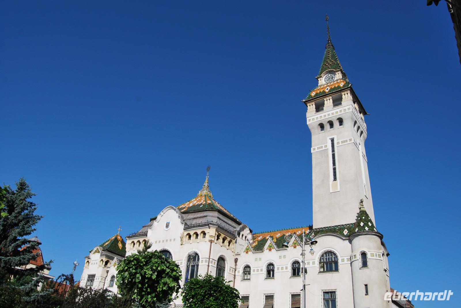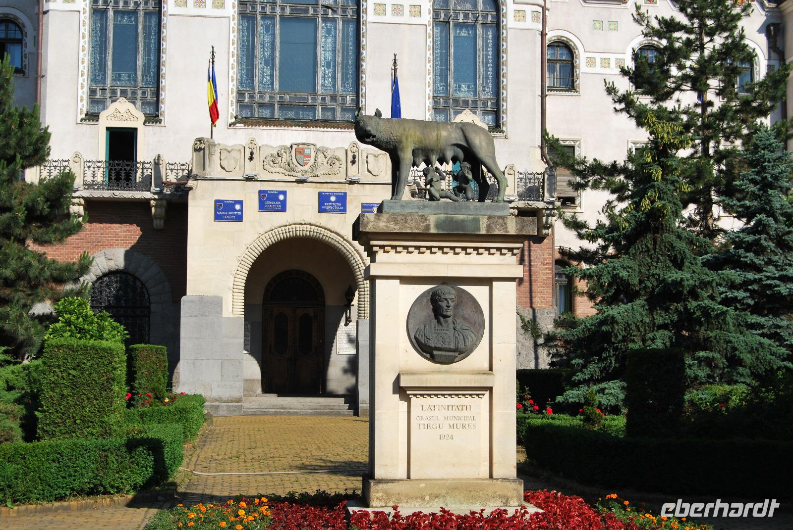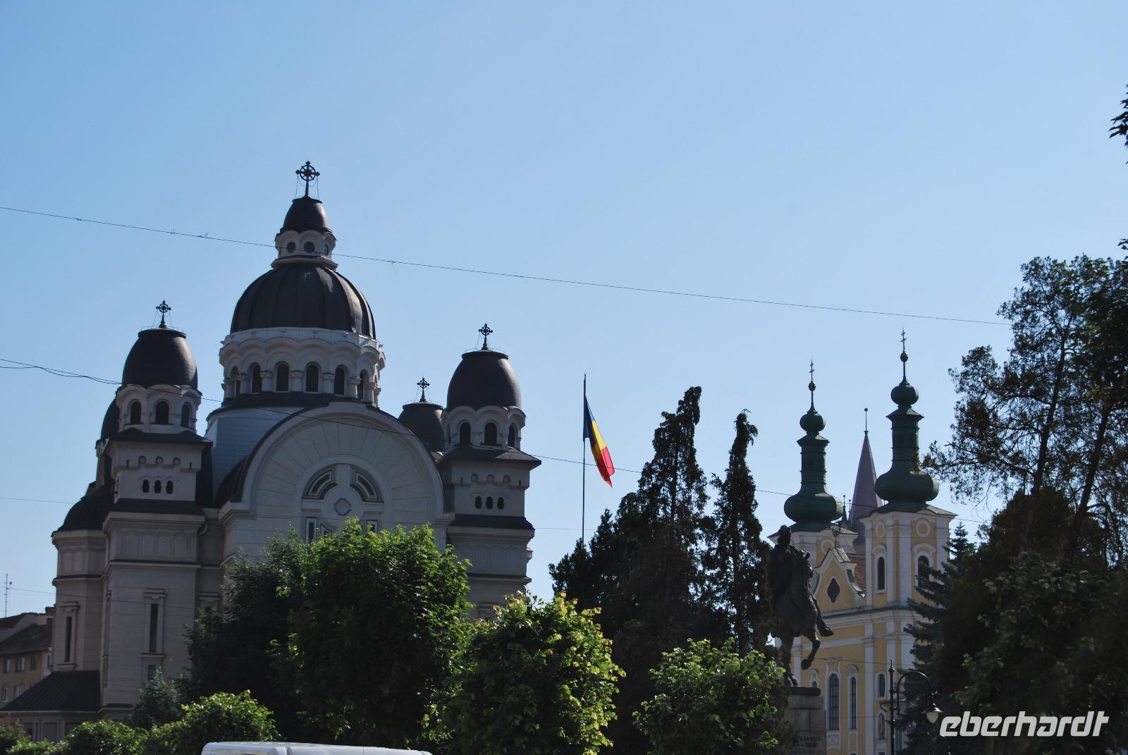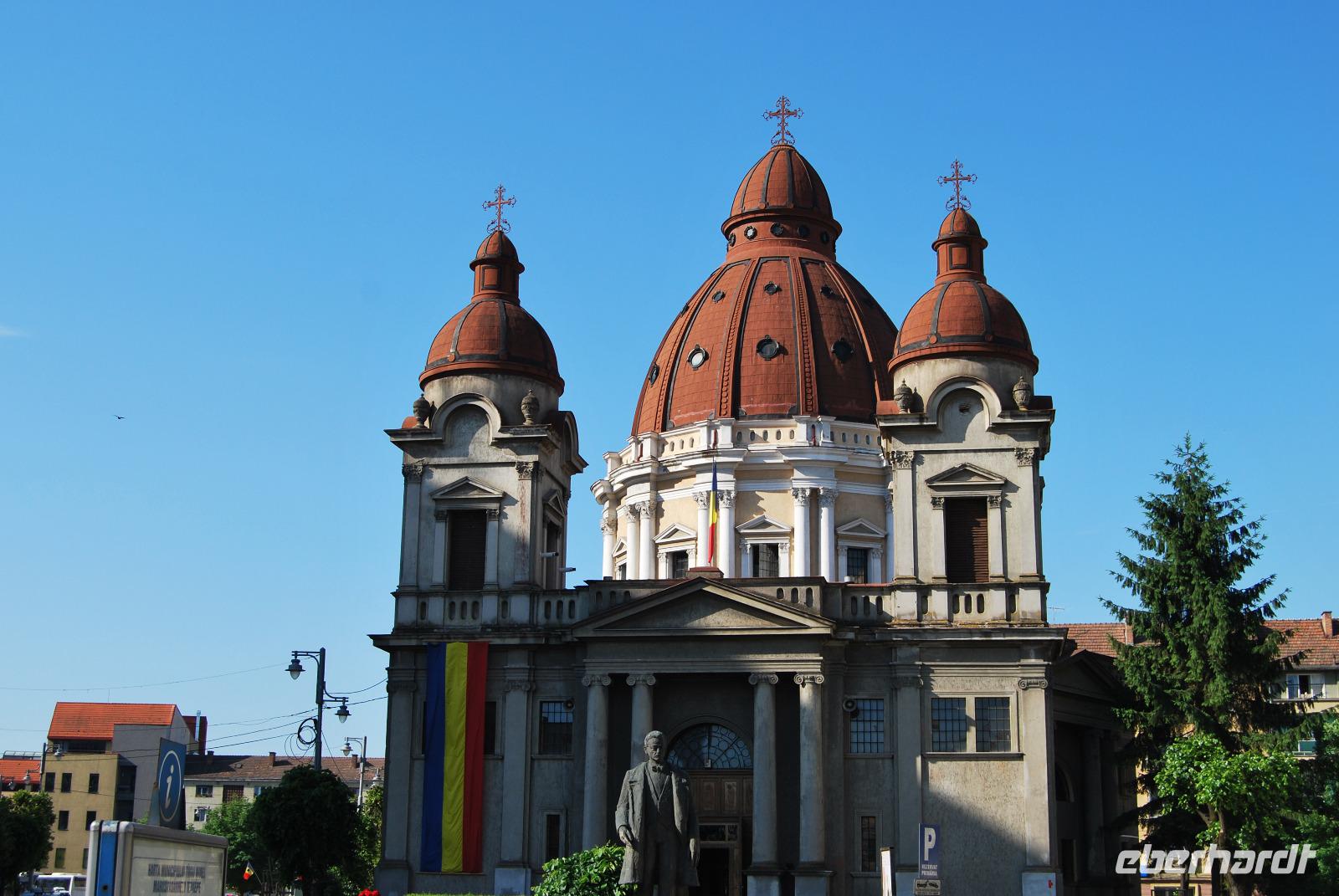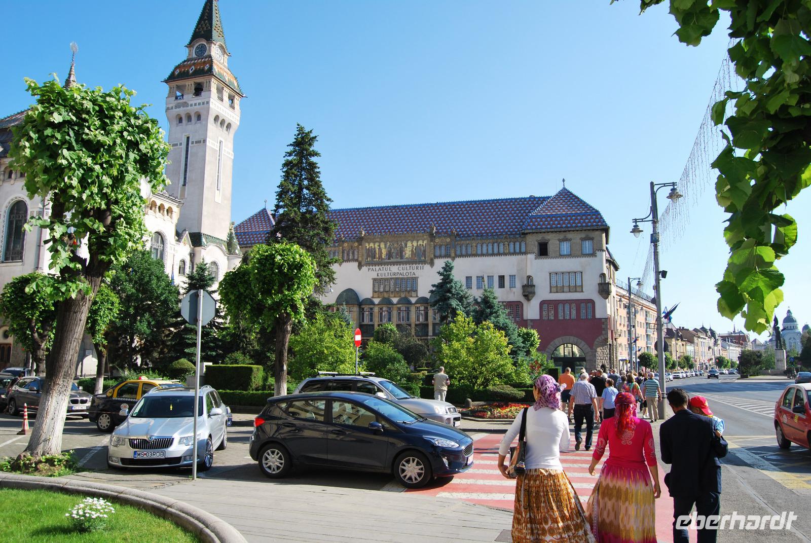 Am Morgen hieß es wieder Kofferladen. Jedoch mussten wir noch einen Moment auf unseren „neuen" Bus warten. Dann fuhren wir ins Zentrum von Targu Mures. Wir starteten unseren kleinen Rundgang von der Strada Tudor Vlad und spazierten zum Kulturpalast. Ein interessantes Gebäude, das Anfang des 20. Jahrhunderts im ungarischen Jugendstil erbaut wurde. Nahe eines Marktes auf der Piata Trandafirilor konnte man auch die Erfahrung machen, dass Baustellen nicht so aufwändig gesichert werden wie man das aus Deutschland kennt. So hatte man eine gute Gelegenheit sich mit seinem Schuhabdruck im Beton zu verewigen. Zum Abschluss gingen wir über den Piata Teatrului am National Theater und sahen auch eine Statue von Avram Iancu, dem rumänischen Rechtsanwalt und Revolutionär aus Siebenbürgen, der vor der Christi-Himmelfahrt-Kathedrale positioniert ist.