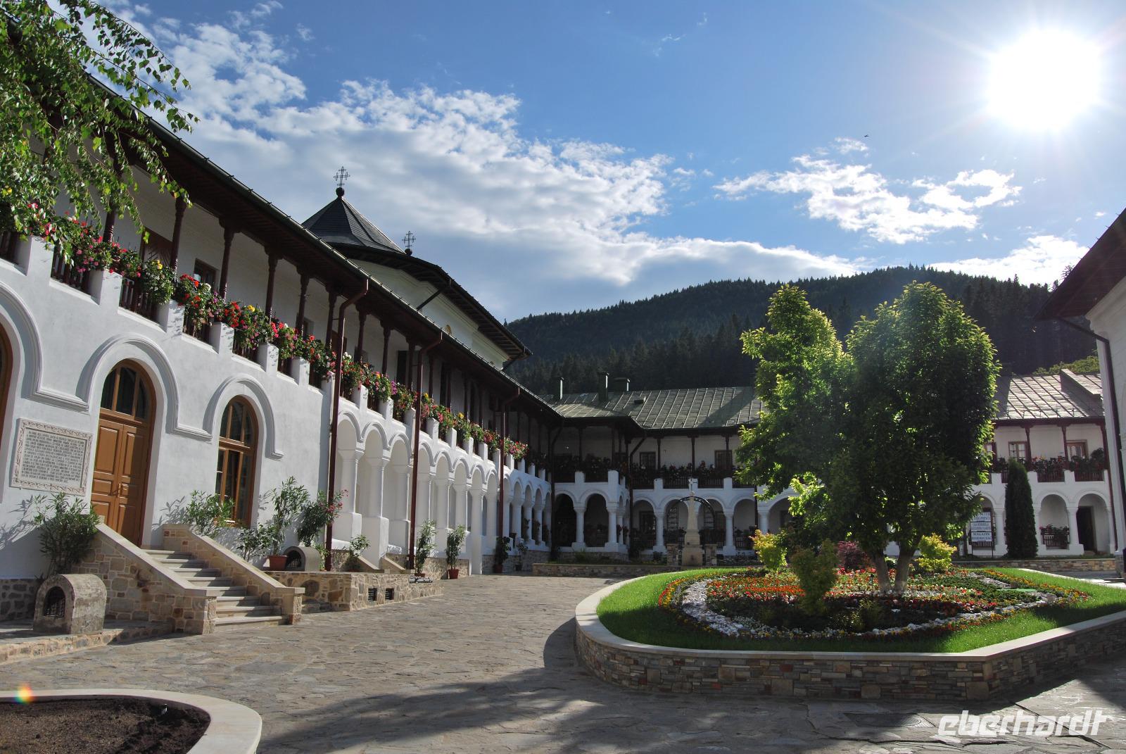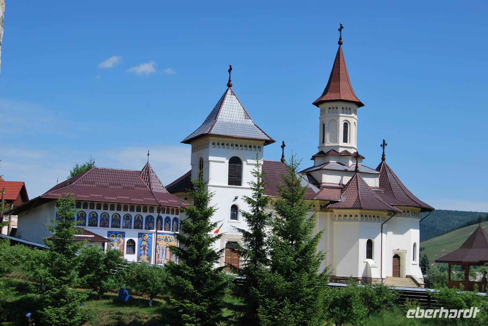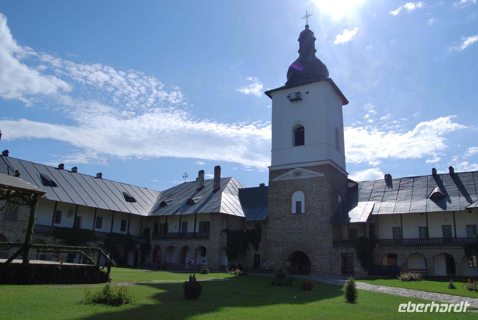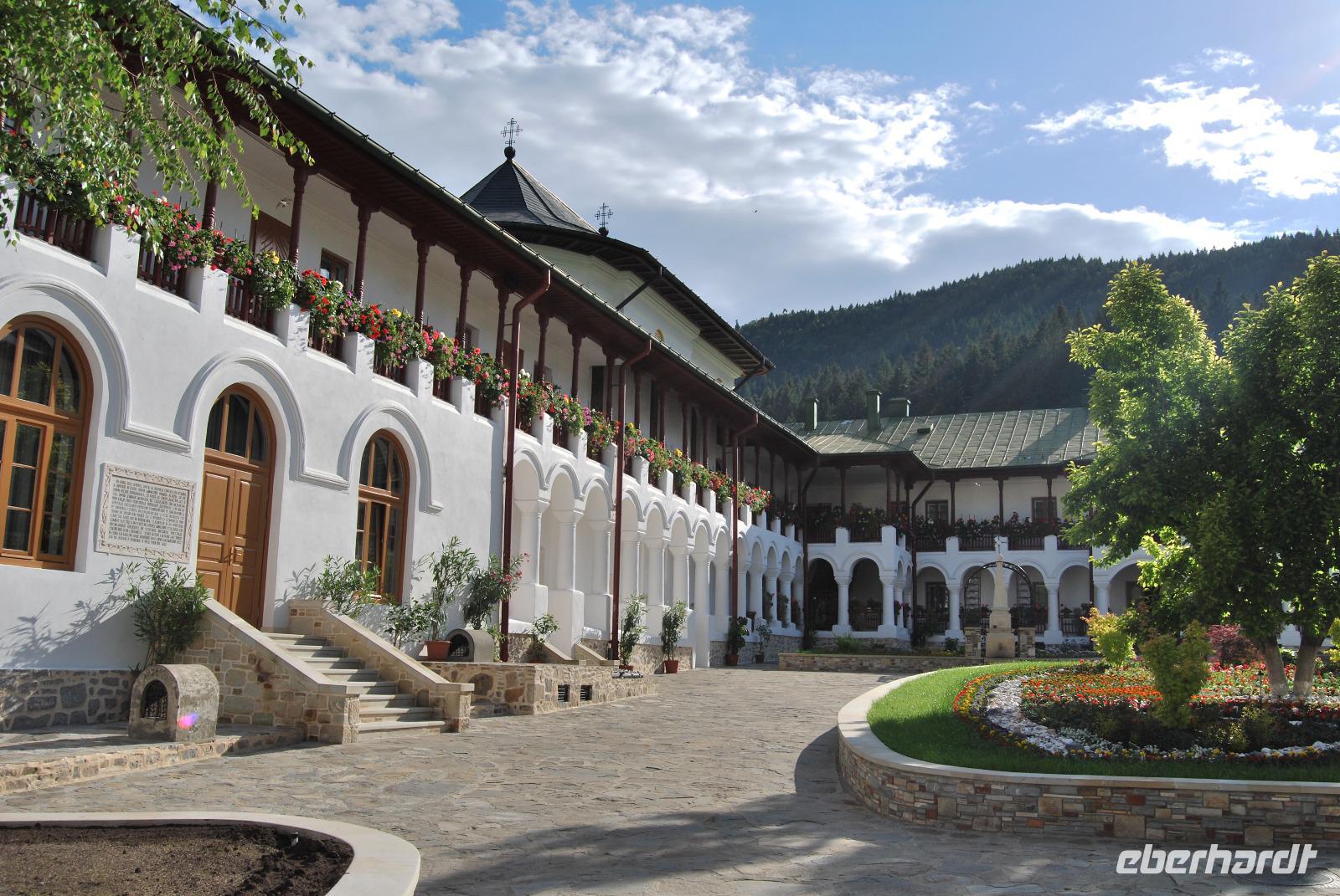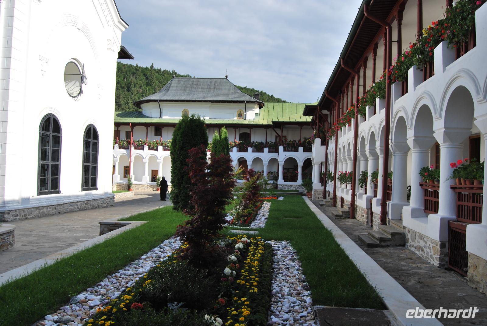 Der Tag war noch nicht vorüber. Wir durften noch das Kloster Agapia besichtigen. Das weiße Nonnenkloster vermittelte ebenfalls einen zauberhaften Eindruck. Im Innenhof und in den Museen erlangten wir einen Eindruck über die Arbeitsweise und das Leben der Bewohnerinnen. Große Begeisterung fanden auch die alten Maschinen der Stoffverarbeitung, die aus deutschen Werkstätten stammen und Aufschriften wie „Chemnitz" tragen.