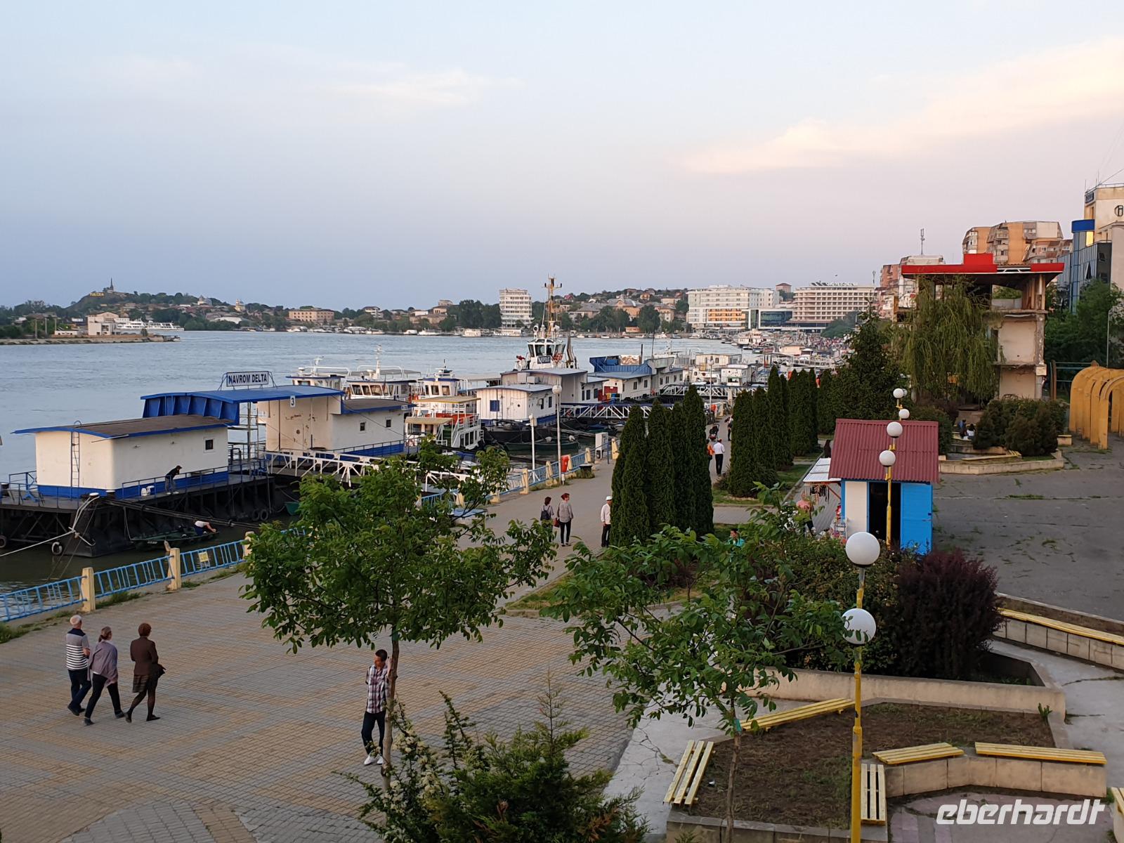 Nach einem leckerem Abendessen im sehr schönen Hotel "Esplanade" schlägt unser örtlicher Reiseleiter Teodor noch einen Spaziergang zum auf einem Hügel gelegenen Monumento Independencia, den Unabhängigkeitsdenkmal, vor. An der Uferpromenade entlang spazieren wir durch das pulsierende Leben und biegen dann in ein Wohnviertel ab. Kinder spielen, Hunde kläffen, Nachbarn unterhalten sich. Die Dämmerung bricht herein. Als wir auf dem Hügel beim Denkmal ankommen, liegt das in dunkler werdender Nacht beleuchtete Tulcea unter uns.