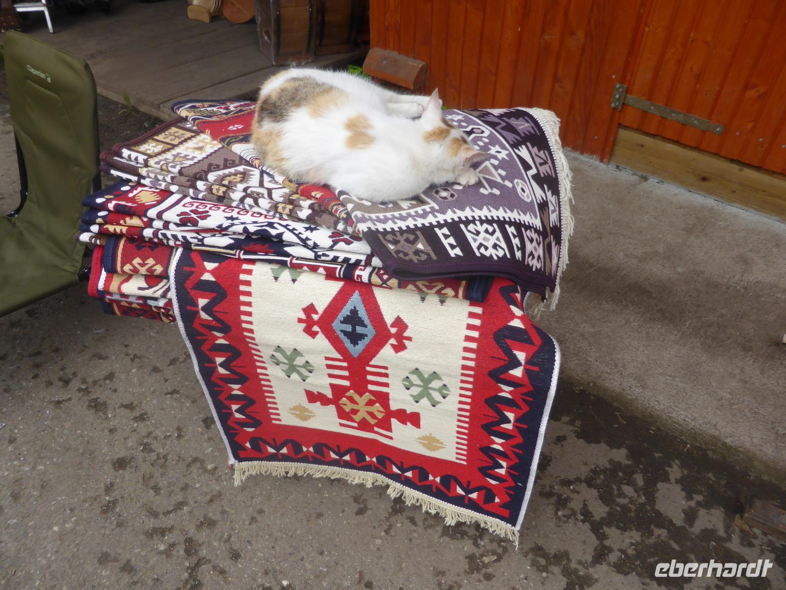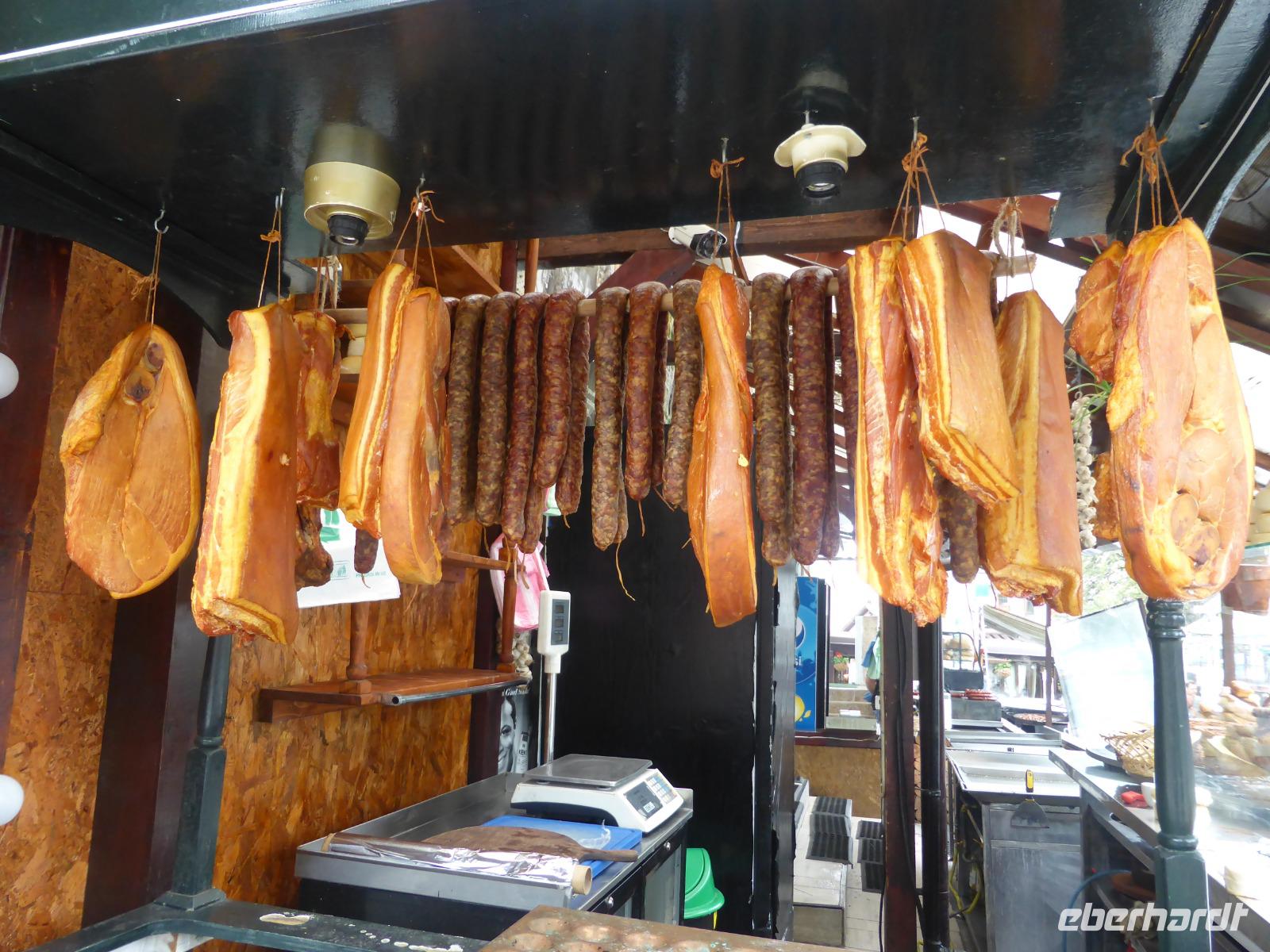 Auf dem Rückweg zum Bus lockt ein kleiner Souvenirmarkt, wo wir Mitbringsel und leckeren rumänischen Käse erwerben.
