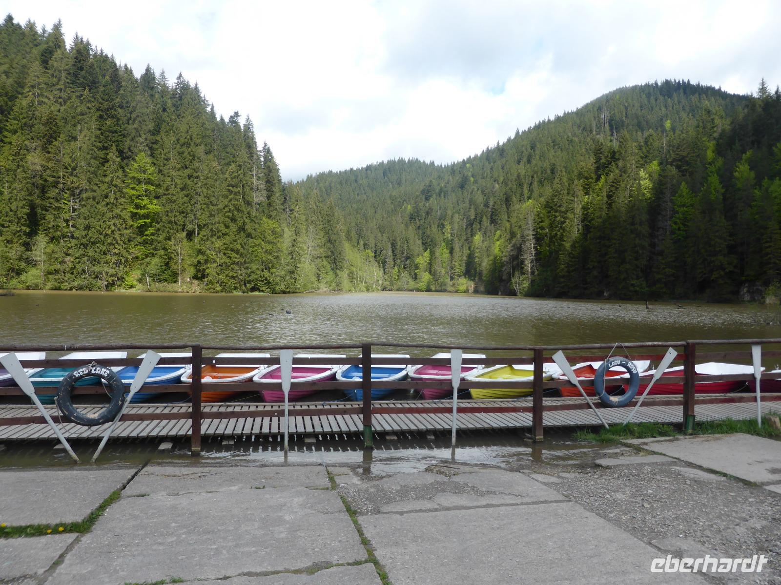 Um 8.30 Uhr verlassen wir die schnuckelige und quirlige Stadt und fahren in Richtung der Karpaten, die sich mit ihren endlosen Wäldern vor uns auftürmen. Schnell erreichen wir das Naturwunder der Bicaz-Klamm, in der sich der Fluss Bicaz zwischen steil auftürmenden Felsen hindurchschlängelt. Zu Fuß spazieren wir durch das spektakulärste Stück, wobei die Fotoapparate im Dauereinsatz sind. Nur kurze Zeit später erreichen wir den "Lacu Rosu", den Roten See, der doch eigentlich gar nicht rot ist. Seinen Namen soll er durch das tragische Schicksal ein paar Männer haben, die im See ertrunken sein sollen.