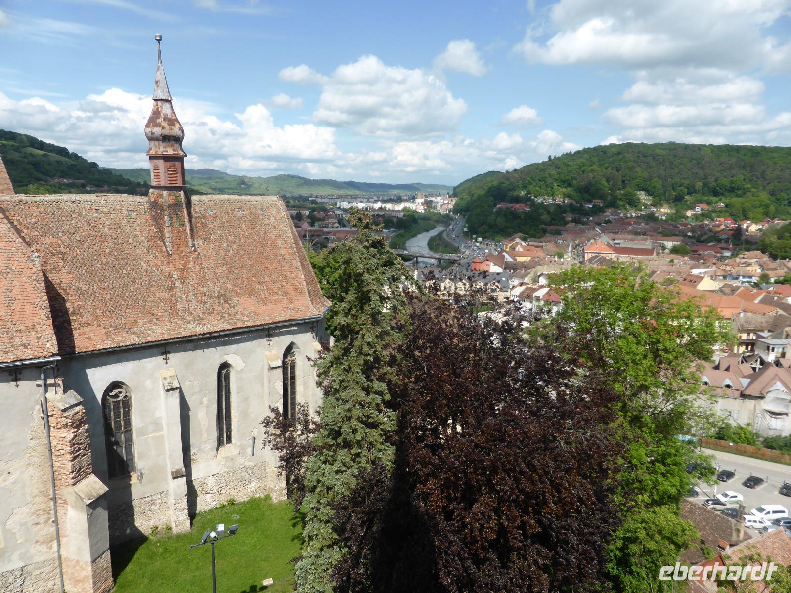 Am frühen Nachmittag erreichen wir Sighisoara, zu deutsch Schässburg. Wir sind jetzt in Siebenbürgen. Schässburg ist einer der Namensgeber Siebenbürgens und weitere dieser sieben Burgen warten im weiteren Verlauf der Reise noch auf uns. Wir tauschen den Naturschatz der Karpaten mit dem kulturhistorischen Schatz Schässburgs. Das kleine Städtchen, dessen historisches Zentrum zum Weltkulturerbe der UNESCO gehört, besticht mit seiner bunten architektonischen Vielfalt. Bei einem gemeinsamen Stadtbummel sehen wir die Ringmauer, die Klosterkirche und das Geburtshaus Draculas. Doch es sind vor allem die bunten Häuser dazwischen, an denen das Auge haften bleibt. Dann steigen wir auf den überdachten Stufen hinauf zur Bergkirche, wo wir bei einer Führung die Geschichte dieser evangelischen Kirche der Siebenbürger Sachsen erfahren. Zum Schluß heißt es nochmals aufsteigen: auf das Wahrzeichen der Stadt, den Stundturm, den alten Uhrturm. Wer sich dazu aufrafft, wird mit einem tollen 360-Grad-Panorama und einem Einblick in das alte Uhrwerk belohnt.