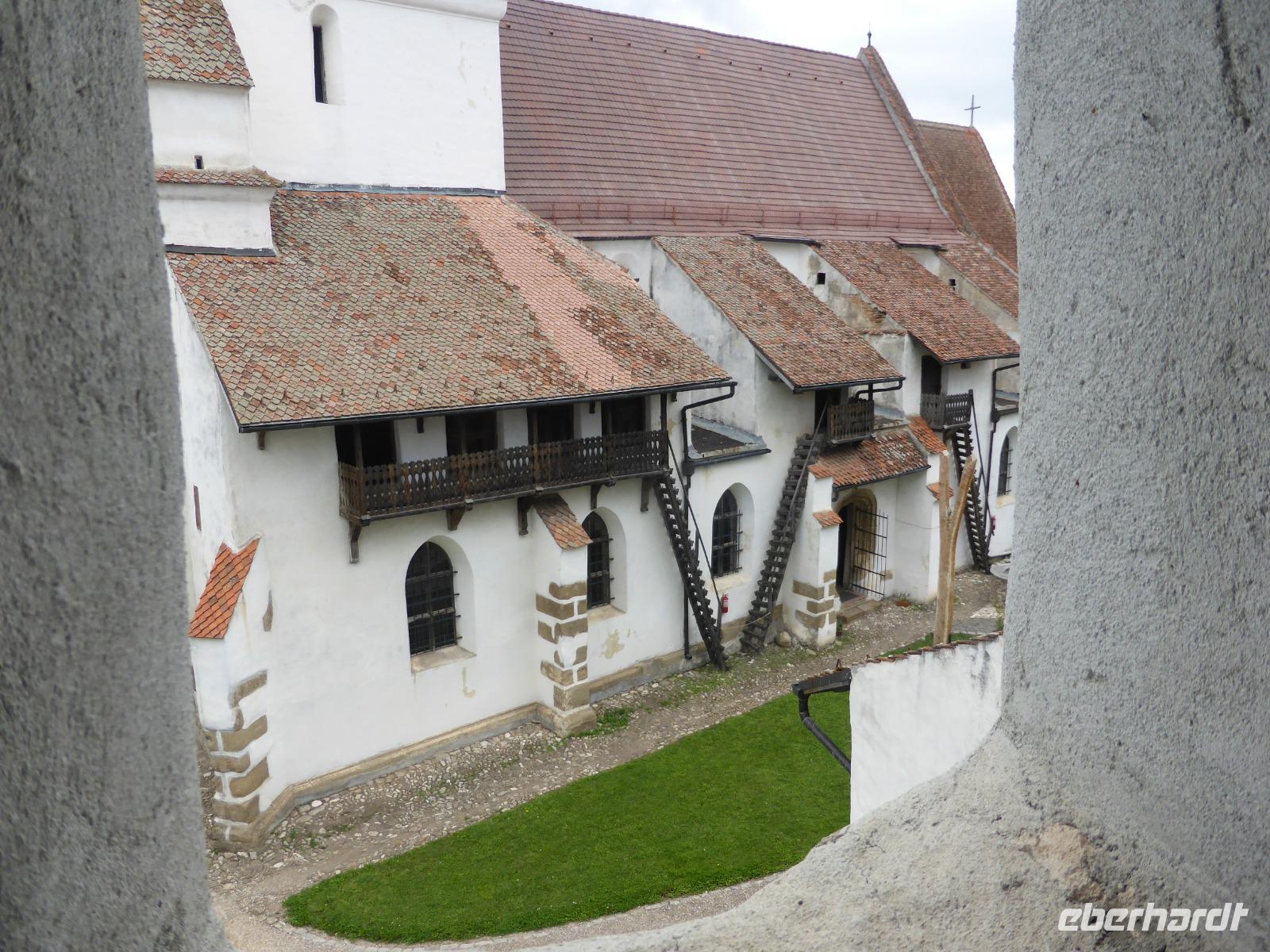 Nach kurzer Fahrt erreichen wir die Kirchenburg von Harman, die uns ebenfalls begeistert. Die Anlage ist sehr gut erhalten und beim Spaziergang durch die Wehrmauer haben wir wieder das "Geheimgang-Gefühl" vom Morgen. Der Anstieg auf den Kirchenturm befeuert unseren Abenteuergeist. Von TüV-Abnahme keine Spur.