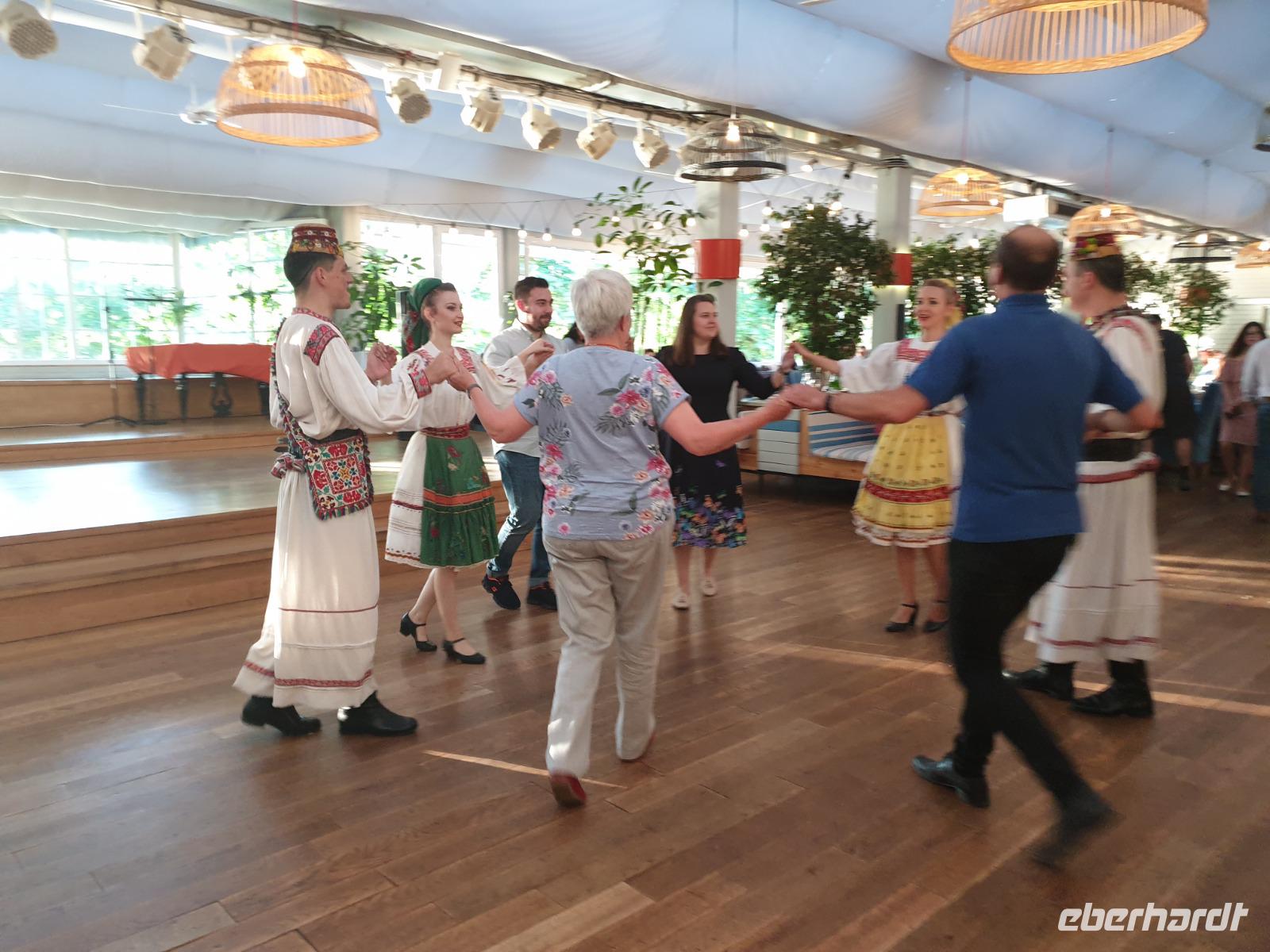 Als krönender Abschluß des Tages wartet ein Folklore-Abend, den wir bei sehr gutem Essen, Hauswein und einem Palinka (der kann ganz schön brennen!) in ausgelassener Stimmung begehen.