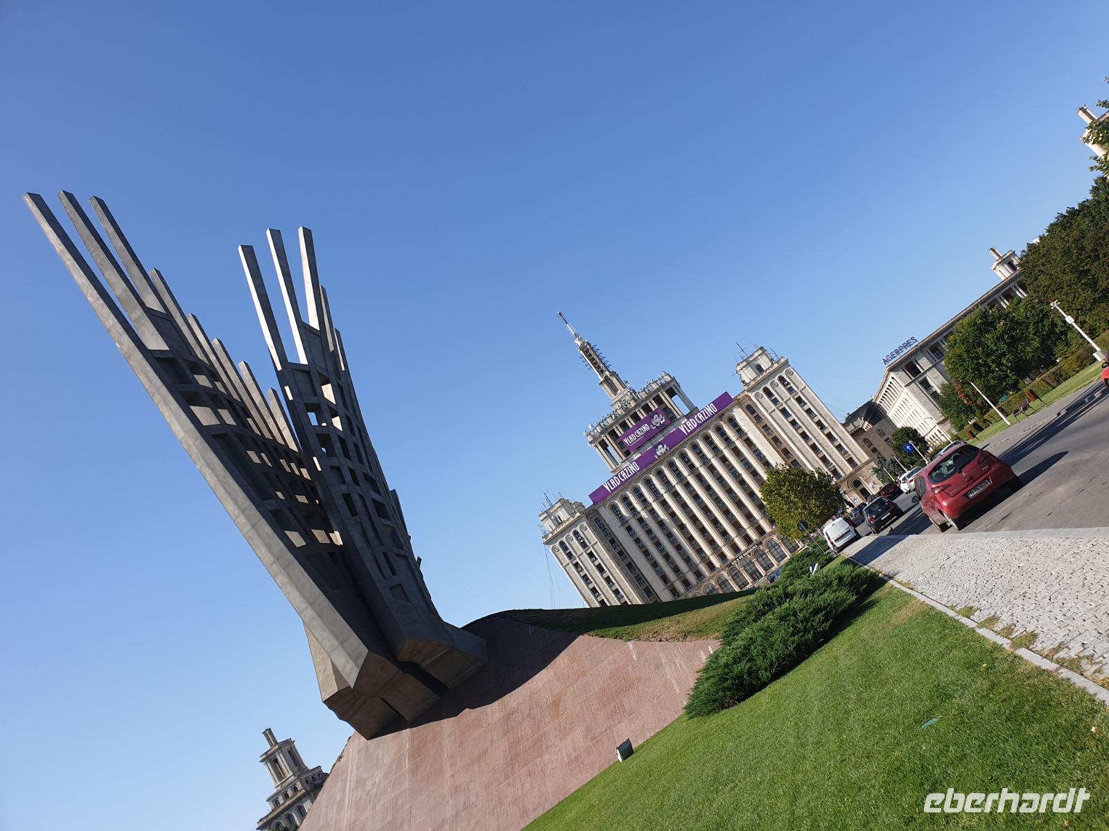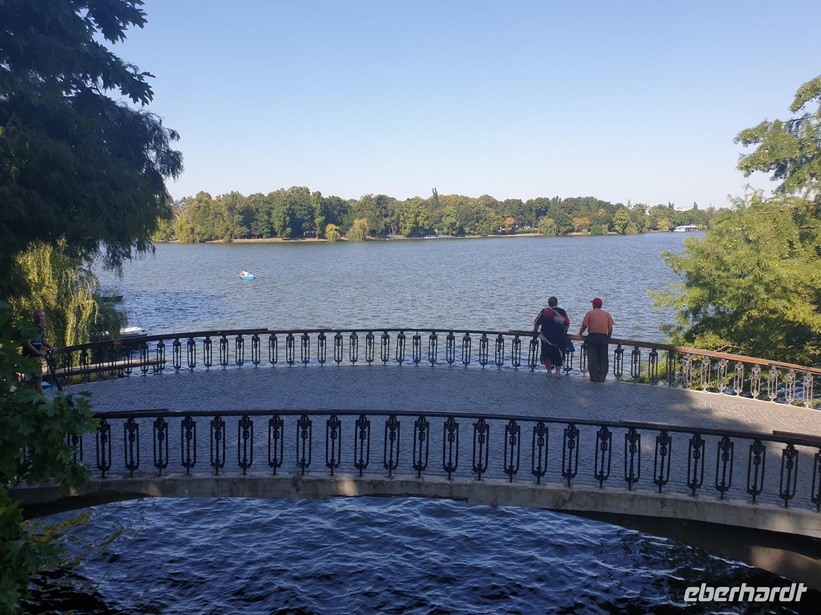 Am Nachmittag checken wir im Hotel ein. Die knapp drei Stunden bis zum Abendessen stehen zur freien Verfügung.Wir sind alle zwischen zwei und drei Uhr in der Nacht aufgestanden und eine gewisse Müdigkeit lässt sich nicht verleugnen. Manch einer ruht sich im Zimmer aus oder nimmt ein erfrischendes Bad im Pool des Hotels. Andere gehen sofort auf Erkundungstour und spazieren, vorbei am prächtigen Pressezentrum, das an die Lomonossow-Universität in Moskau erinnert, zum Heraustrau-Park, dem grössten Park in Rumäniens Hauptstadt. Der Park ist ein beliebtes Ausflugsziel für Einheimische und Gäste. Jeder findet hier, was er sucht. Ruhe am See, stille Bänke unter hohen schattigen Bäumen, gesellige Bars oder die Möglichkeit, mit dem Boot oder Schiff über den See zu tuckern. Auch heute steppt hier der Bär. Familien mit Kindern bevölkern den Park, Angler versuchen ihr Glück beim Fischen, Freunde treffen sich zum Picknick oder zum Quatschen, Hochzeitsfotos werden geschossen. Ausserdem findet gerade ein Sommerfest statt und Bukarests grösste Bierbar quillt vor allem am Abend vor Menschen über. Wer Live-Musik sucht, findet sie hier.