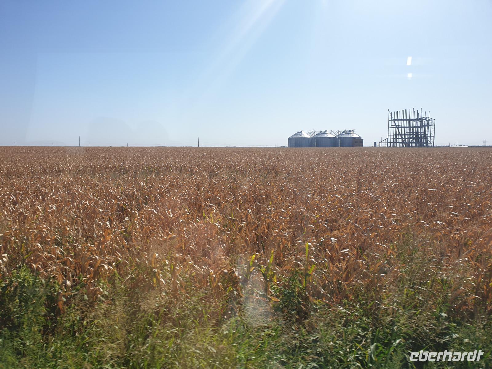 Wir durchqueren die Kornkammer Europas, die wiederum ein Teil der Grossen Rumänischen Tiefebene ist. Landwirtschaft und Ackerbau, wohin das Auge reicht. Doch auch hier ist unverkennbar, dass der Regen in letzter Zeit gefehlt hat. Riesige Sonnenblumenfelder sind stumme Zeugen dafür. Wie ein Soldatenchor sind ihre Köpfe einheitlich zur Sonne ausgerichtet, doch die Pflanzen sind welk. Überall entlang der Strecke entdecken wir grosse Getreidesilos, neue und ältere, als Lagerstätten für das viele Korn, was in dieser Region angebaut wird.