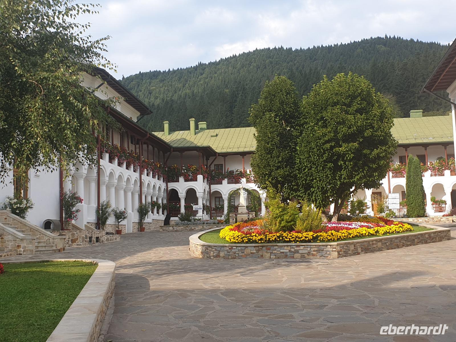 Unser Kloster-Hopping beginnt beim Nonnenkloster Agapia. Hier leben rund 500 Nonnen, die das Kloster zu einem der größten in Europa machen. Die liebevoll gepflegte Anlage des Klosters begeistert uns. Im Museum besichtigen wir eine Sammlung wertvoller Kunstobjekte aus dem 16. und 17. Jahrhundert. Die Nonnen arbeiten außerdem in der weithin bekannten Teppich- und Nähwerkstatt und schaffen auch Stickereien aller Art. Eine Gelegenheit für das besondere Mitbringsel! Es ist ausserdem noch Zeit, einen Blick in das Dorf Agapia zu werfen. Die alten Holzhäuser mit den bunten, üppigen und perfekt gepflegten Gärten sind eine Wonne.