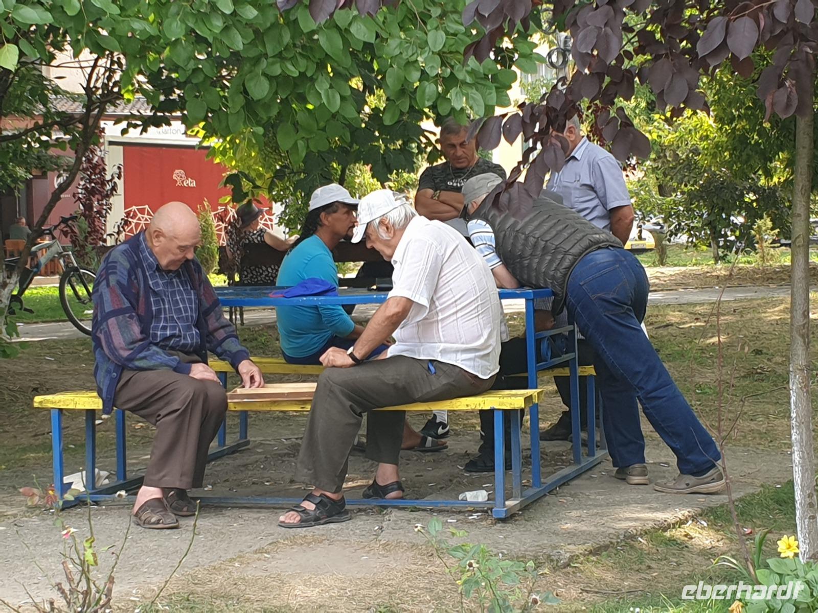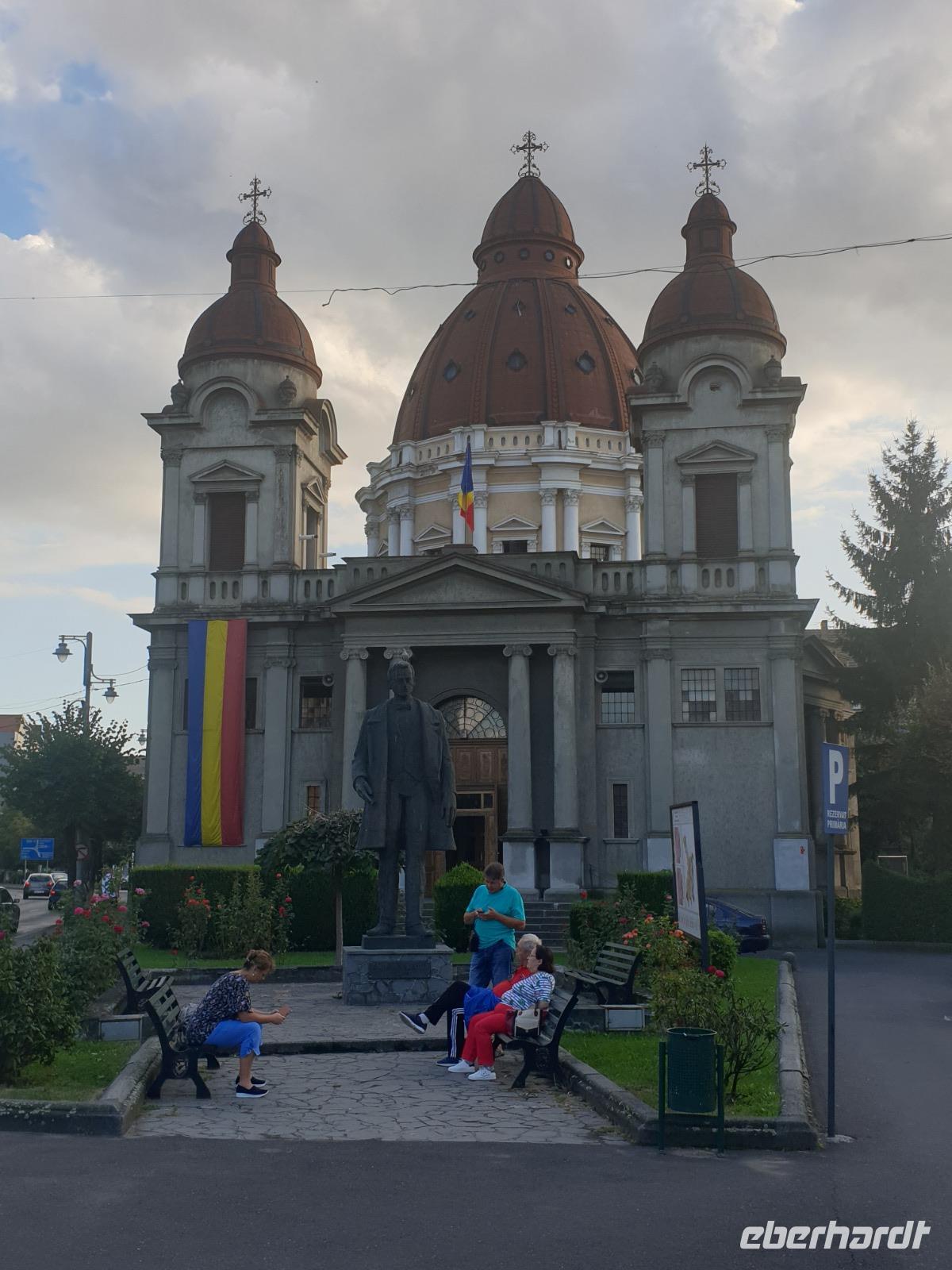 Vor dem Abendessen freuen sich unsere Beine endlich über etwas Bewegung. Wir spazieren in die kleine, aber sehr feine Altstadt. Leider hat die sehenswerte Kirche bereits geschlossen, doch das Treiben auf dem Platz davor, wo Jung und Alt den Sommer geniessen, entschädigt dafür. Auch der Theaterpark lockt mit einem Besuch, vor allem abends, wenn es bereits dunkel ist und die Liebe der Rumänen zu Farbspielen eine besondere Atmosphäre schafft.
