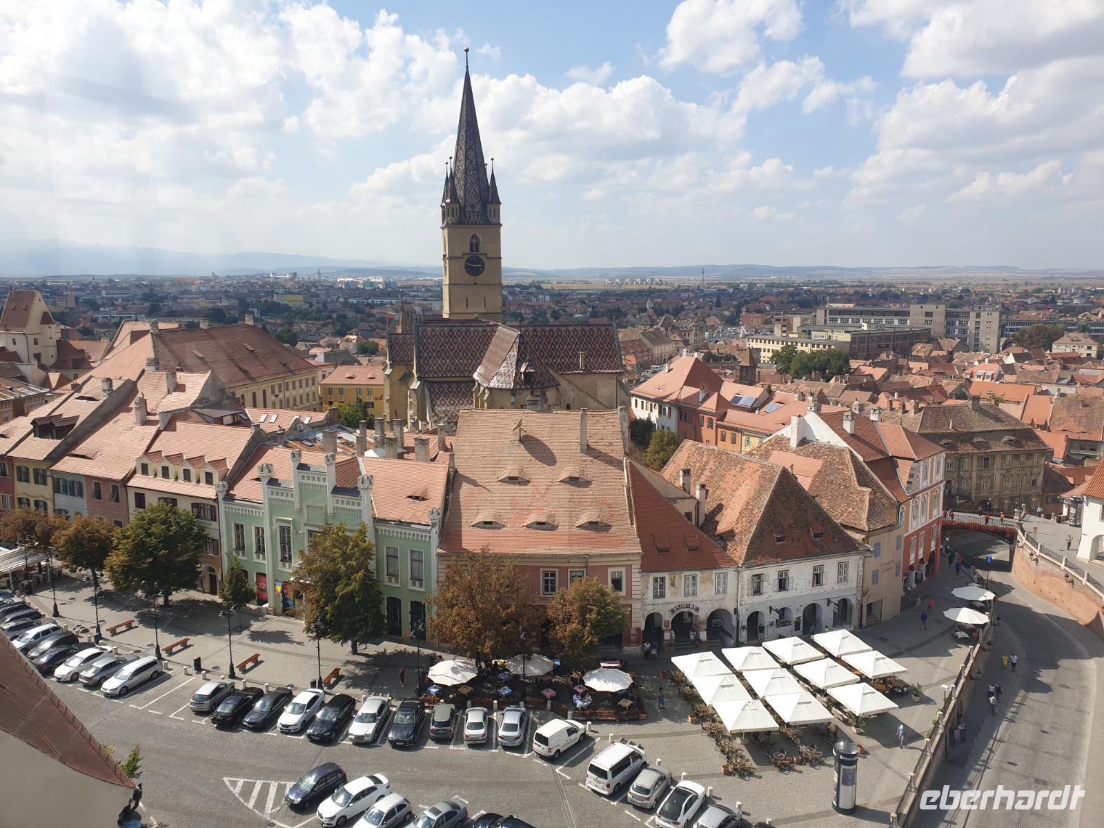Danach steht Zeit zur freien Verfügung. Es lohnt sich, durch die Gassen zu schlendern, in die kleinen Geschäfte zu schauen, verborgene Höfe zu entdecken oder auf dem großen Bauernmarkt lokale Produkte wie Käse, Obst oder Gemüse zu kaufen. Wer noch Kraft in den Beinen hat, steigt auf den Ratsturm mit einer schönen Fotoausstellung und überblickt die historische Altstadt in ihrer ganzen Schönheit. Direkt am zentralen Platz mit seinen vielen Cafés befindet sich auch eine deutschsprachige Buchhandlung - die Siebenbürger Sachsen lassen grüssen, auch wenn ihre Zahl immer geringer wird.