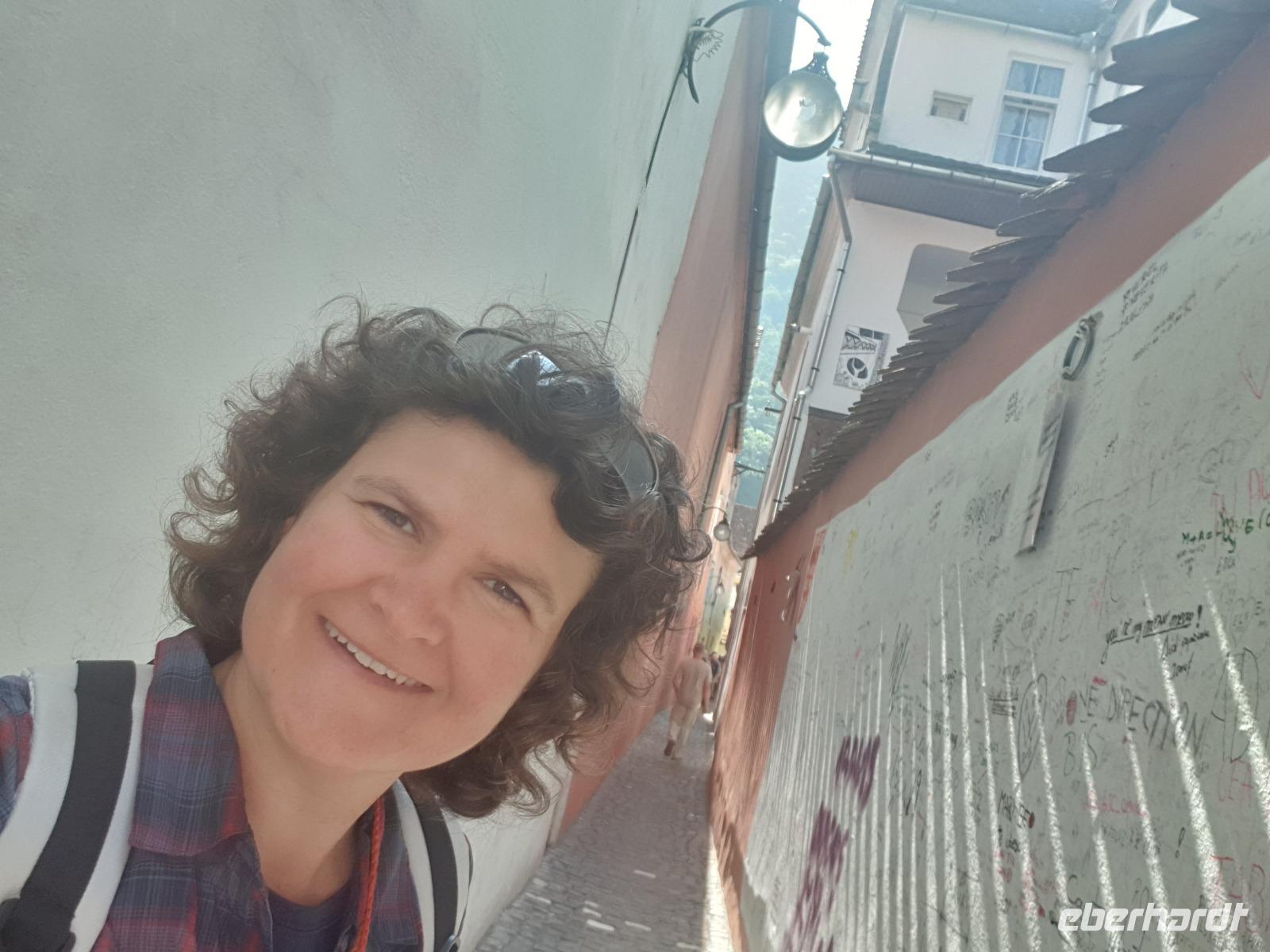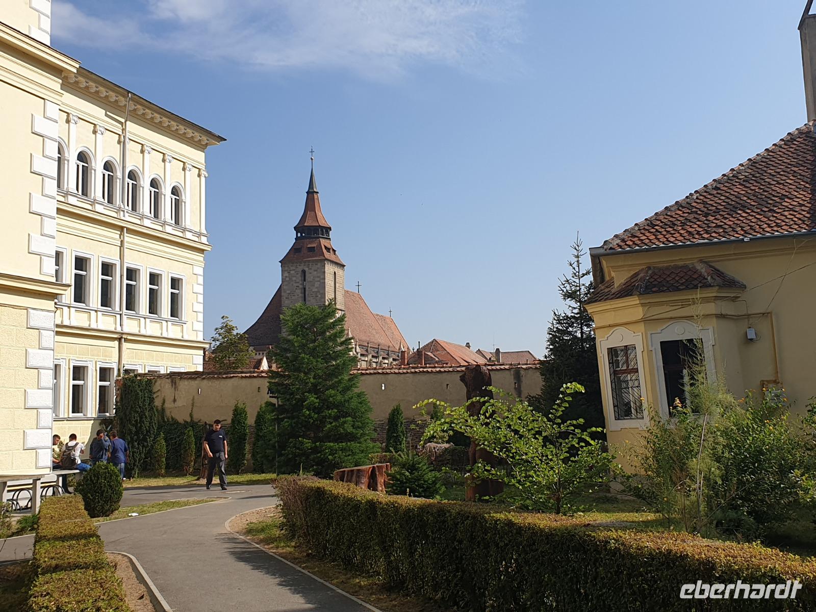 Kurz vor dem Mittag erreichen wir die schöne Stadt Brasov (Kronstadt). Wir beginnen mit einem geführten Stadtrundgang, bei dem uns Doru, wie immer äusserst wissensgewandt, die berühmte Schwarze Kirche, die gut versteckte Orthodoxe Kirche, die Schnurgasse im Sachsenviertel und auch die Synagoge zeigt. Danach steht Zeit zur freien Verfügung. Das erweist sich als Glücksfall, haben wir doch einen sonnigen Spätsommertag und die freundliche Stadt lädt zum Flanieren und Verweilen ein. Wer Lust hat, fährt mit der Seilbahn hinauf auf den Hausberg, erkundet die Seilerbastei oder spaziert am anderen Stadthang entlang des Graftkanals. Es fällt auf, wie Grün Brasov ist. Wer dem Müssiggang fröhnen möchte, beobachtet das Treiben in den Gassen von einem der vielen Strassencafés aus.