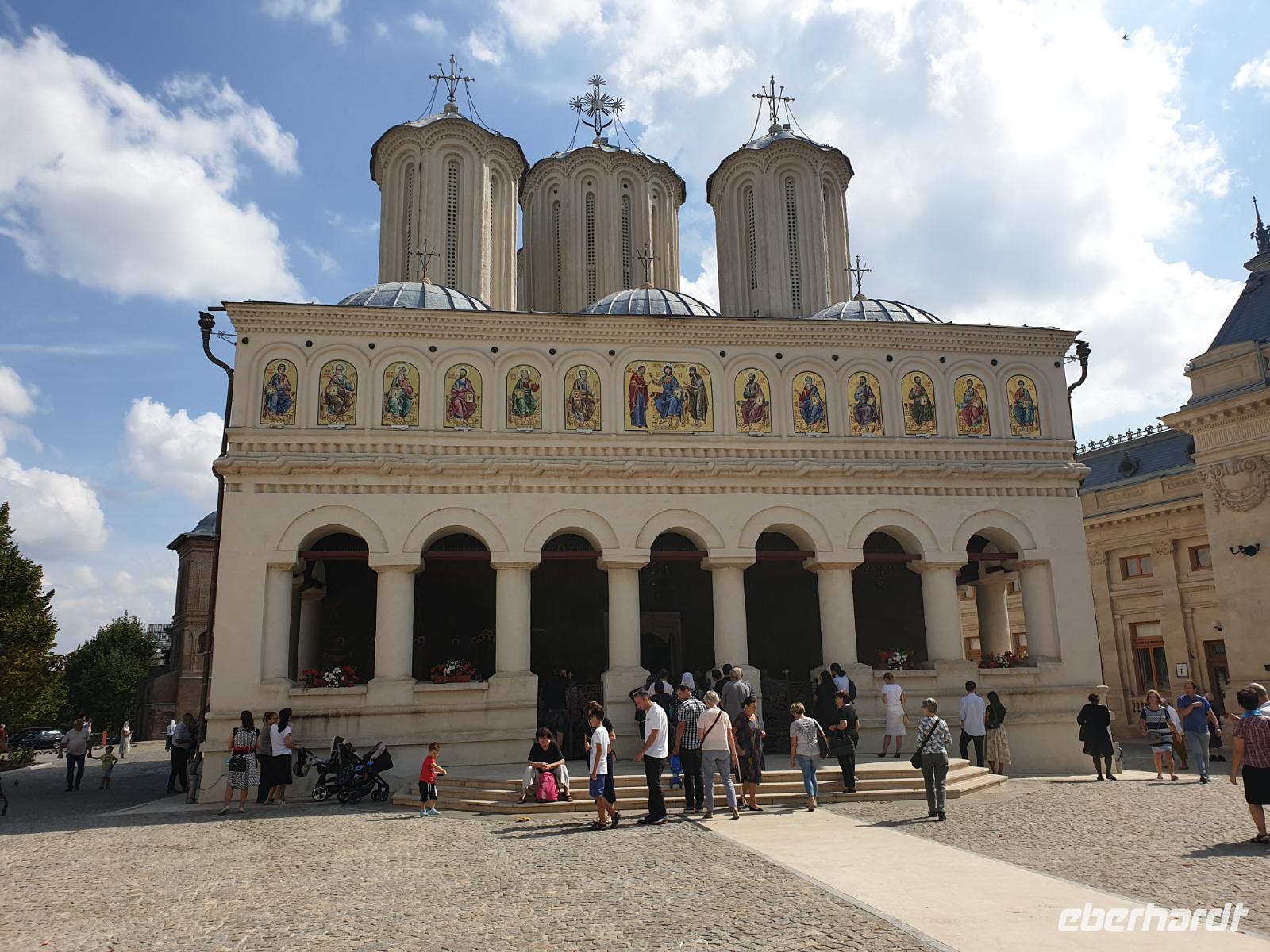 Um 10 Uhr sammelt Bebe uns und unser Gepäck ein. Und los geht die Stadtrundfahrt durch Rumäniens Hauptstadt. Vorbei am Triumphbogen, eine bewusste Ähnlichkeit zu Paris ist gewollt, fahren wir vorbei am Platz des Sieges, am Platz der Revolution (der Balkon mit Ceaucescus letzter Rede ist hier zu finden), durch die Innenstadt, zum Parlamentspalast (Ceaucescus Palast), der Kathedrale des Volkes sowie zum Patriarchenhügel - Fotostopps inklusive. Da wir Zeit haben, machen wir spontan aus unserer Stadtrundfahrt einen Stadtspaziergang und stromern durch die Altstadt, die so langsam zum Leben erwacht, bis zum Nationaltheater. Überall gibt es versteckte Details zu entdecken, die uns Doru gerne zeigt. Wir stellen fest, wie nah doch "schön" und "nicht so schön" liegen können. Auch das ist charakteristisch für Rumänien, das wissen wir jetzt. Es ist ein Land im Aufbruch.