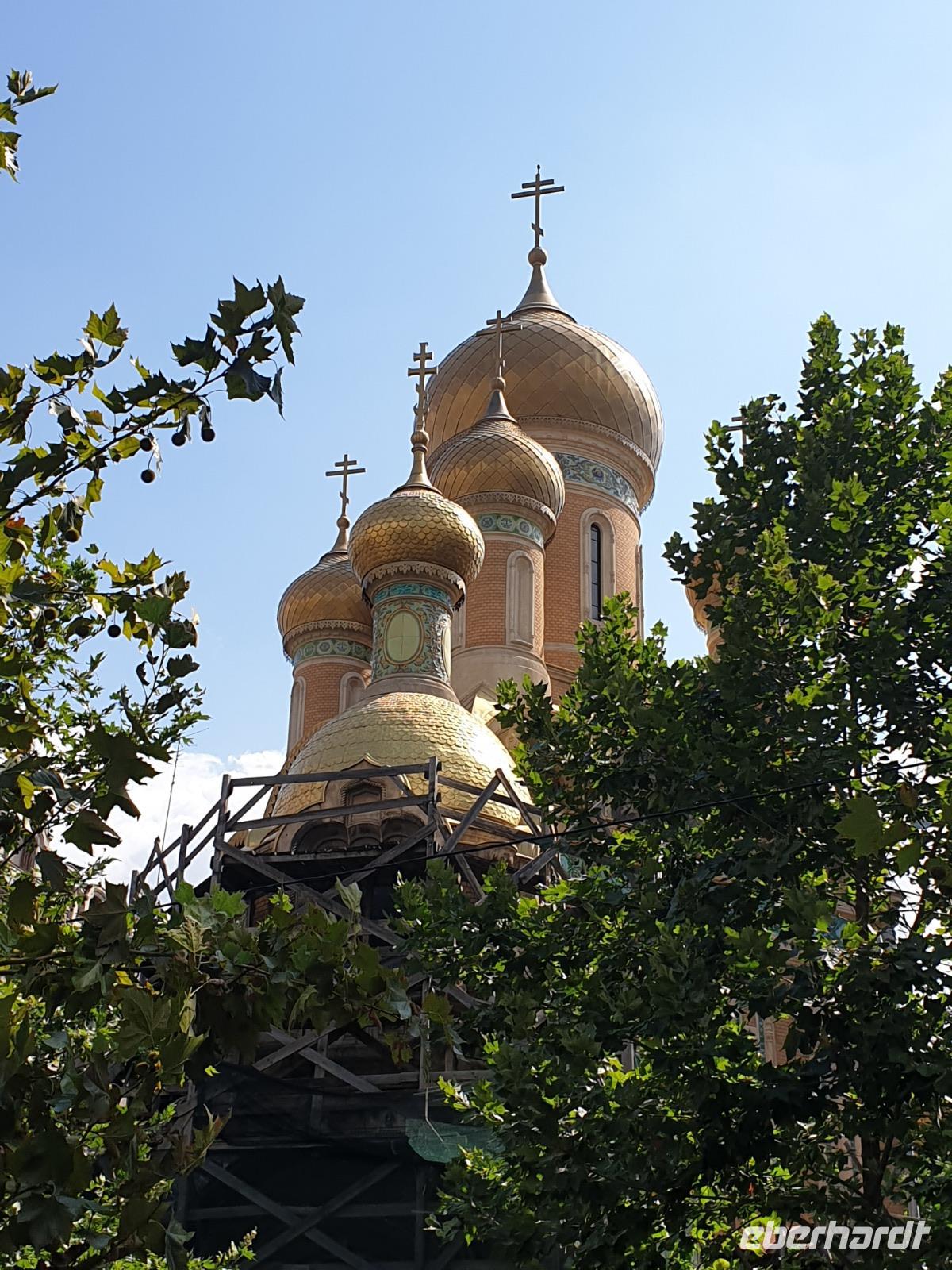 Nach einem gemeinsamen Mittagessen, bei dem wir das bekannte rumänische Dessert Papanasi probieren können - und schon wieder begeistert sind - spazieren wir vorbei am Schloss Peles und bekommen das gewaltige Gebäude in seiner gesamten Pracht zu sehen. Nur ein paar Spazierminuten später erreichen wir das Kloster Sinaia mit seiner bekannten "Alten Kirche".
