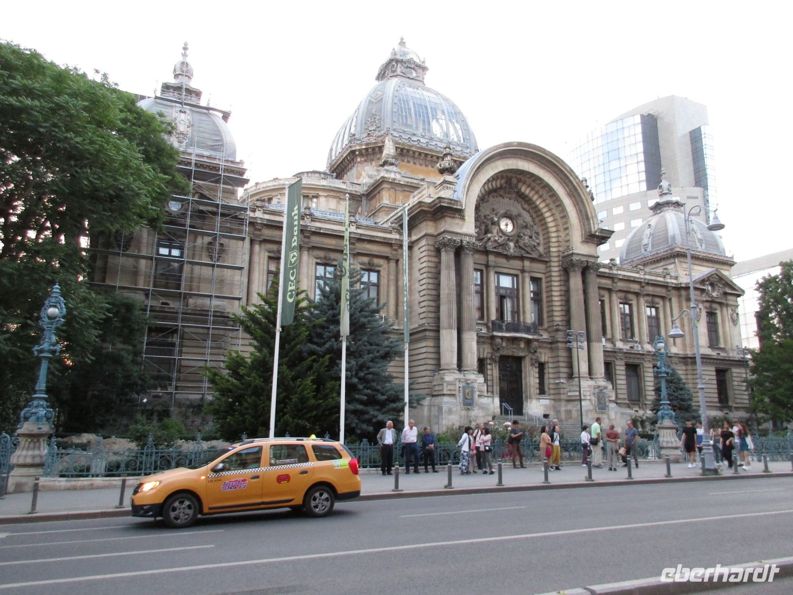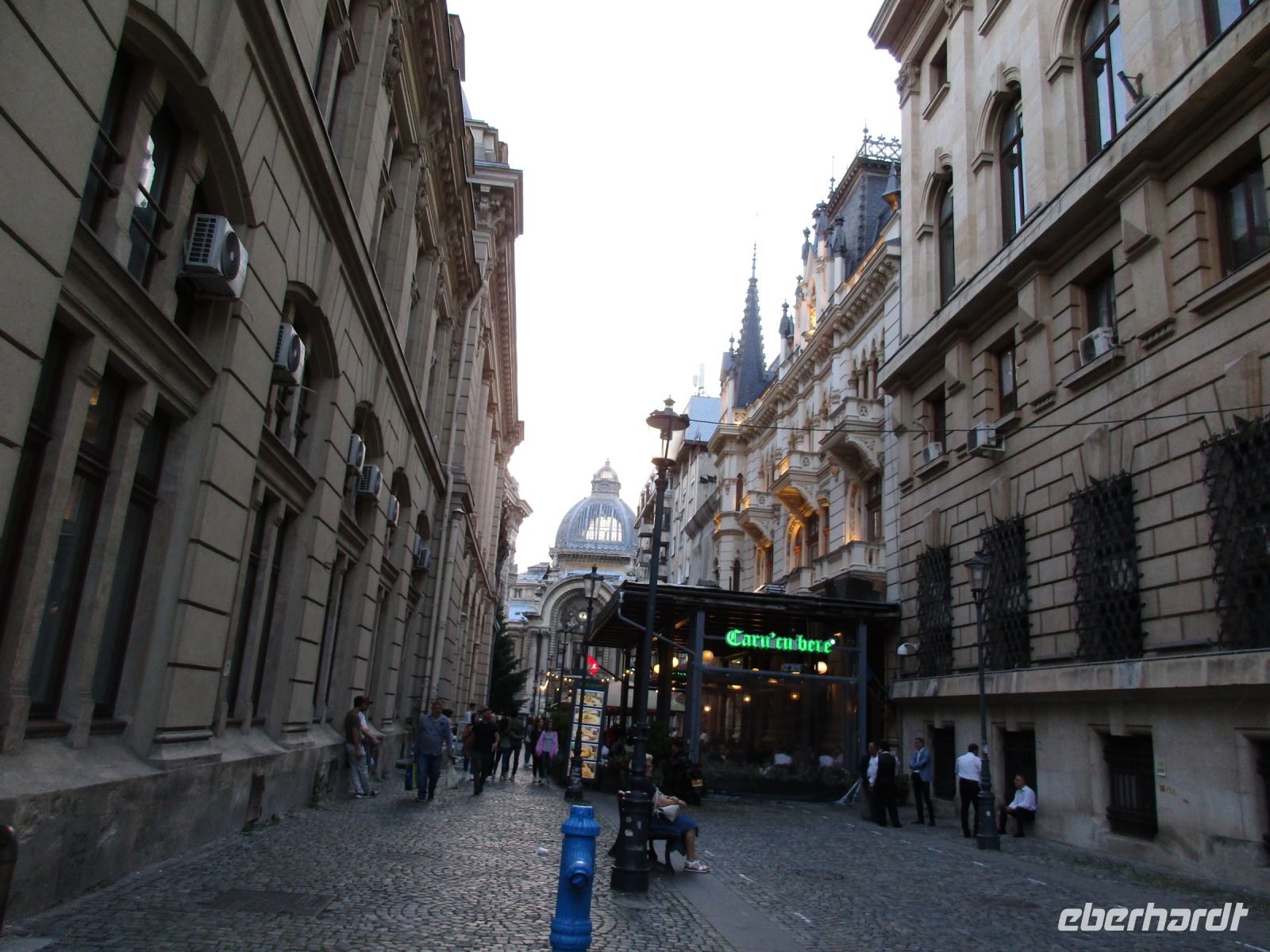 Alle Gäste steuern heute Morgen den Flughafen in Frankfurt am Main an, wo wir uns alle wie geplant treffen, denn die Maschinen aus Berlin, Hamburg, Dresden und Leipzig sind pünktlich, ebenso wie die Gäste, die aus Frankfurt anreisen. 17 Gäste und die Reisebegleitung Barbara erwarten nun den Anschlussflug nach Bukarest, der sich aufgrund eines Flugzeugwechsels verspätet und unsere sorgfältig gebuchten Sitzplätze durcheinanderwirbelt. Jeder von uns sitzt nun irgendwo zwischen fremden Leuten. Danke, Lufthansa! Wir nehmen es trotzdem gelassen und erreichen die Hauptstadt Rumäniens mit einer halben Stunde Verspätung. Reiseleiter Cosmin erwartet uns bereits mit dem Bus, der uns in unser schickes 4-Sterne-Hotel „Ramada Bucharest Parc“ bringt. Wir haben die Planung optimiert und checken sofort ein und machen uns etwas frisch, damit wir entspannt und voller Erwartung unsere kleine Stadtrundfahrt auf dem Weg zum Folklorerestaurant „Hanul lui Manuc“ beginnen können. Der erste Eindruck von Bukarest ist imposant. Nicht umsonst nannte man Bukarest früher das Paris des Ostens. Die Architektur der Stadt bedient sich aus einem Schmelztopf türkisches Sultanat, Paris und Wien. Paläste im französischen elektrisch-akademischen Stil, Villen im neurumänischen Brancoveanu-Stil mit orientalischen und italienischen Bauelementen und der Bauhausstil der 30er Jahre treffen hier aufeinander und präsentieren die Baukunst des 19. und 20. Jahrhunderts bis zu den typischen sozialistischen Platten- und Stalinbauten, für die viele kleine Kirchen, Villen und ländliche Wohnhäuser plattgemacht wurden. Unser Ziel ist heute Abend die mittelalterliche Schänke „Hanul lui Manuc“, auch Karawanserei genannt, die vom armenischen Kaufmann und Politiker Manuc Bei errichtet wurde. 1812 wurde hier der „Vertrag von Bukarest“ zwischen Russland und der Türkei geschlossen. Heute ist es ein beliebtes Folklorerestaurant, in dem auch wir unser zünftiges Abendessen einnehmen.